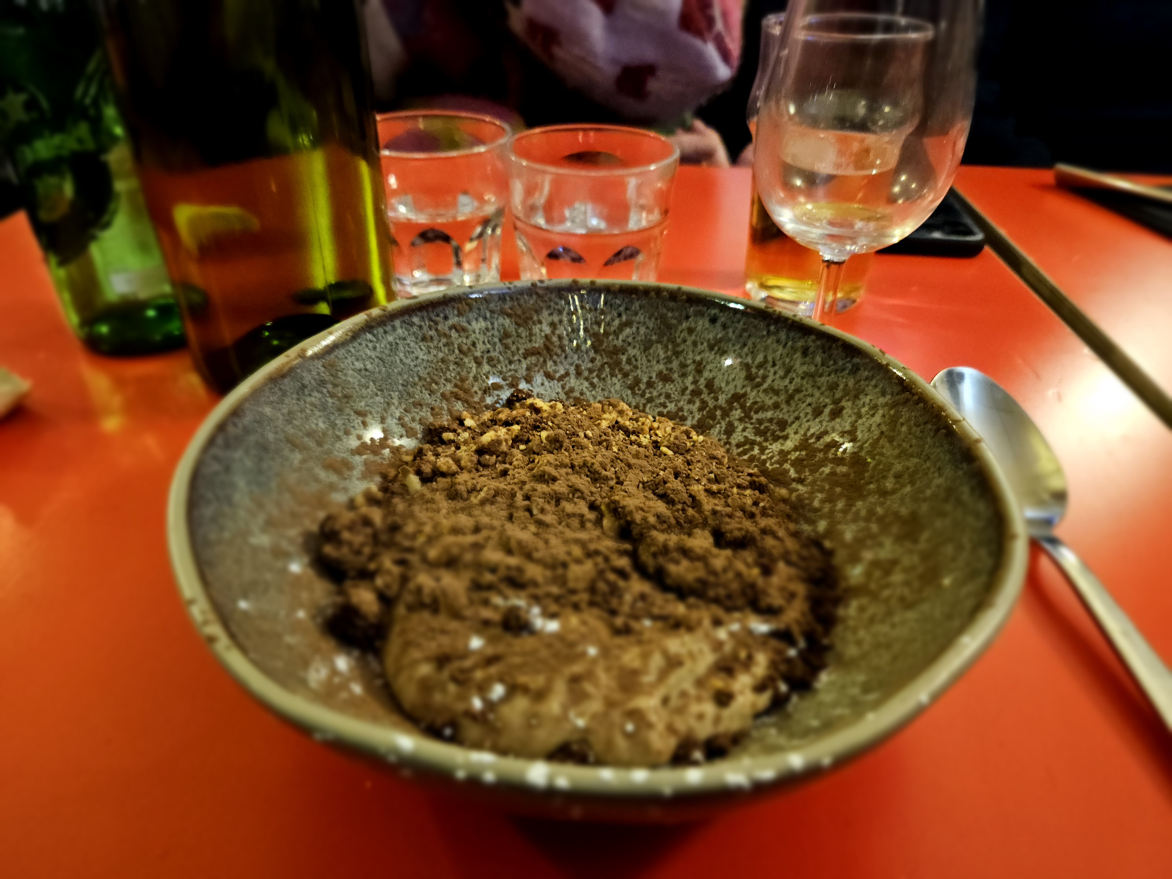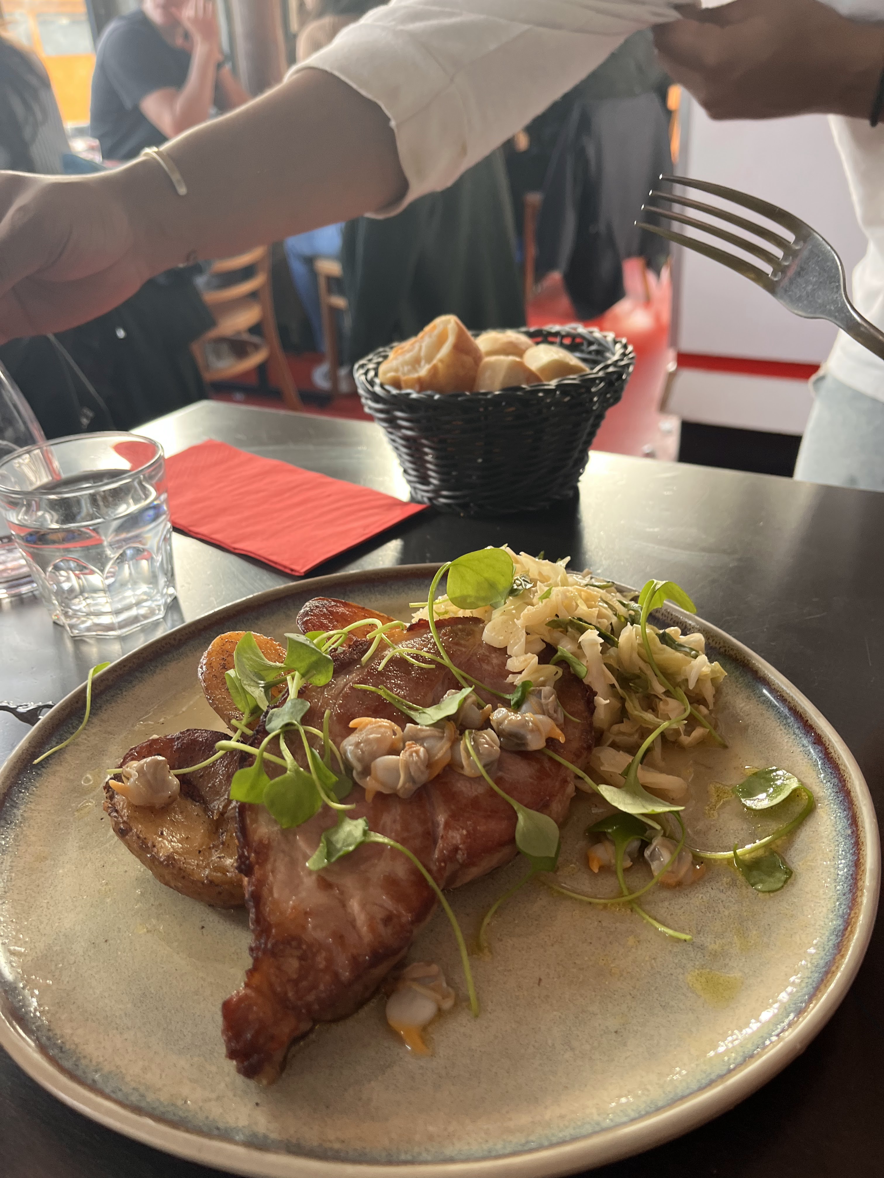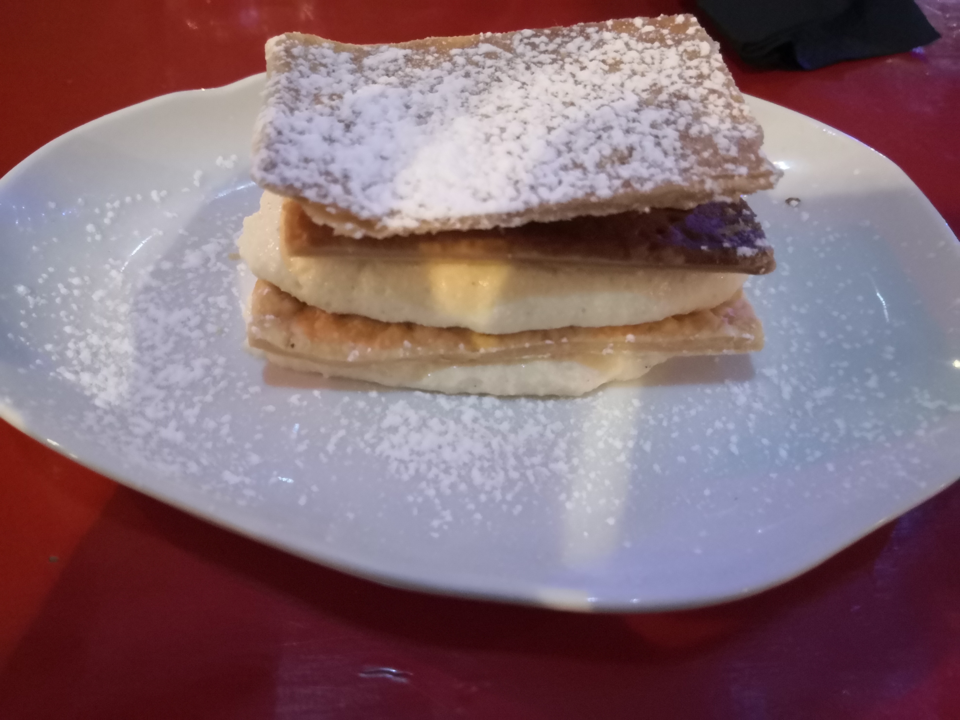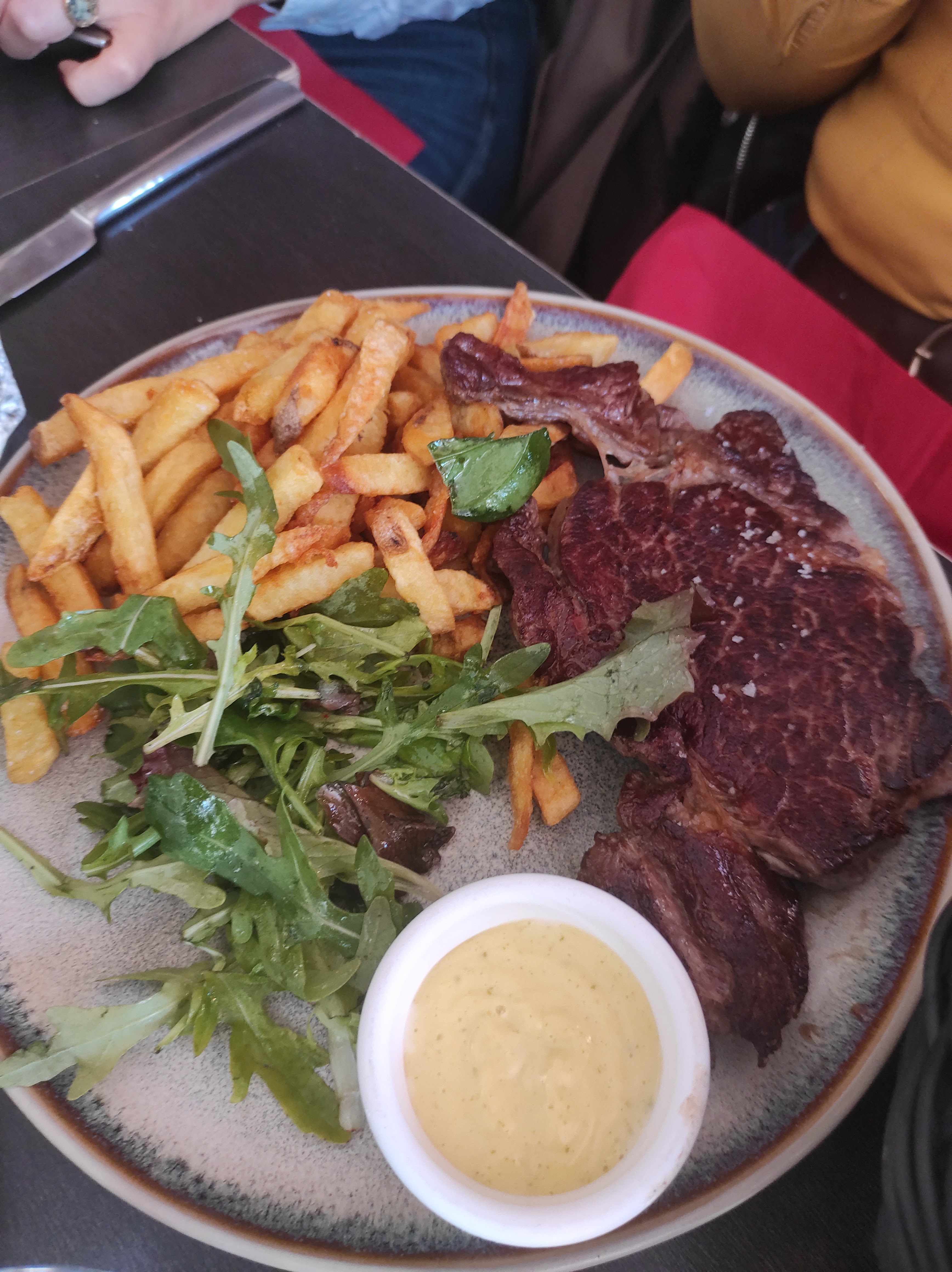 J’ai mangé une très bonne entrecôte frite, et merci au serveur pour le petit effet waouh lorsqu’il a amené spontanément et gracieusement à la fille de 7 ans de l’ami qui m’accompagnait une tranche de pâté avec des cornichons en dessert car il nous faisait une petite crise ! Accueil, nourriture… Au top !!