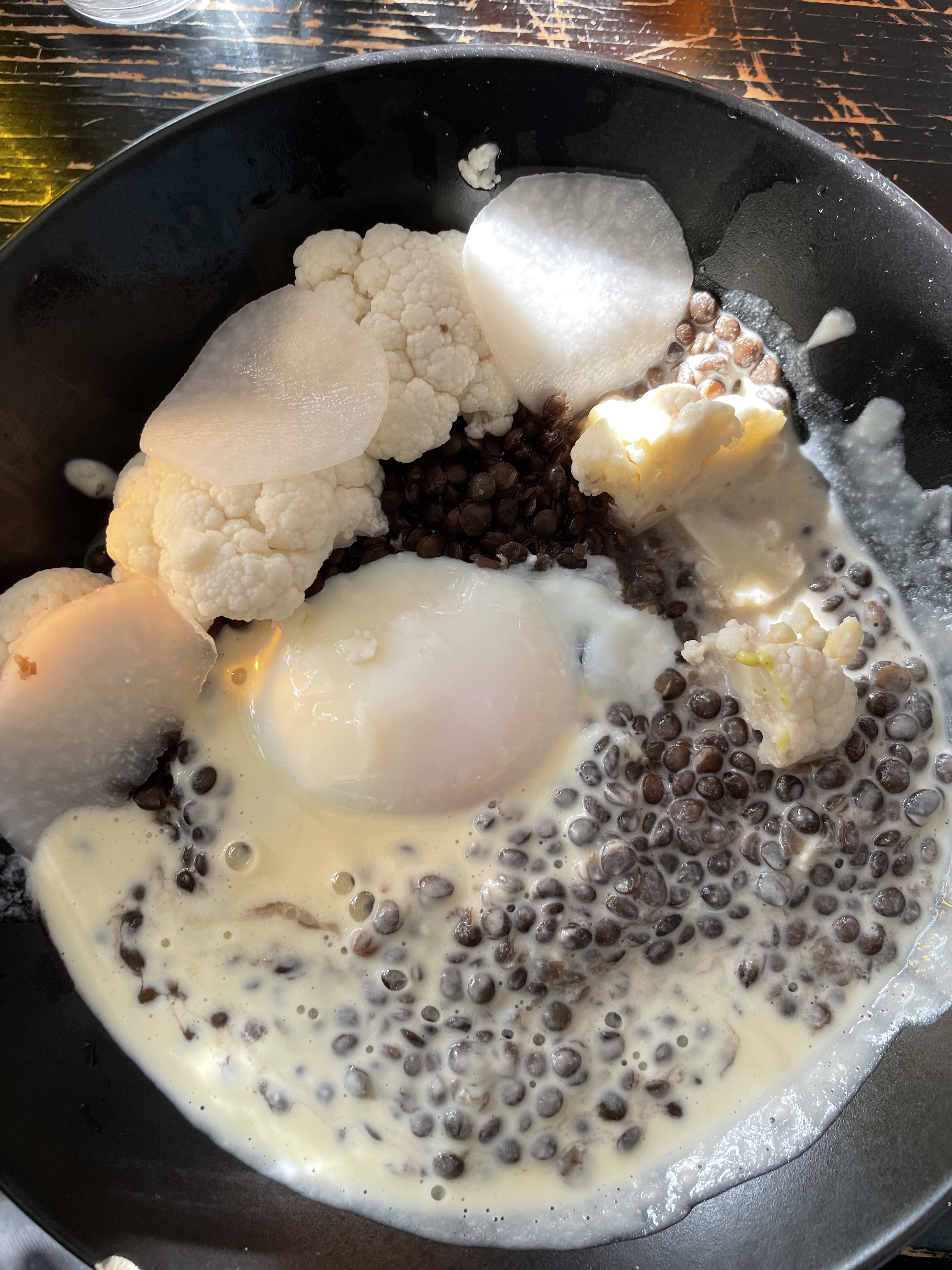Super découverte, bon rapport qualité prix cuisine recherchée, oeuf parfait parfait ! Truite gravlax avec crème de brocolis super bon ! C'est top !
