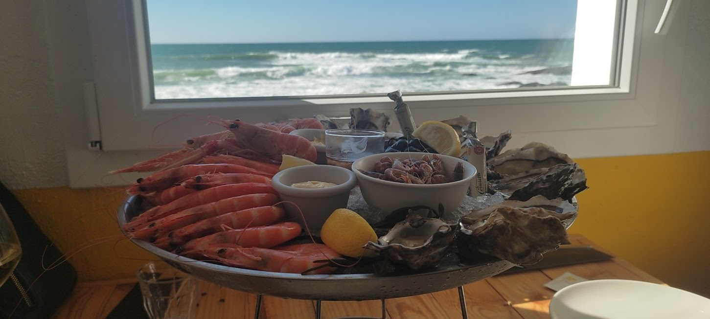 Restaurant atypique avec une vue magnifique sur l'océan. En entrant vous découvrez les produits de la mer, vous êtes dans le bain. La qualité, fraîcheur est comme la vue, parfaite. Nous avons partagé une petite planche assortiments de la mer en entrée, très bien préparée et originale. Les plateaux de fruits mer servis aux tables d'à côté nous donne envie d'y retourner. Le vin blanc que nous avons pris était de qualité Tables espacées, service et accueil professionnel. Malheureusement, j'ai mangé un peu vite et pas pris de photo des plats, désolé. Bonne saison et bonne continuation à votre équipe. Pensez à prendre une petite veste, vous êtes en bord se mer.
