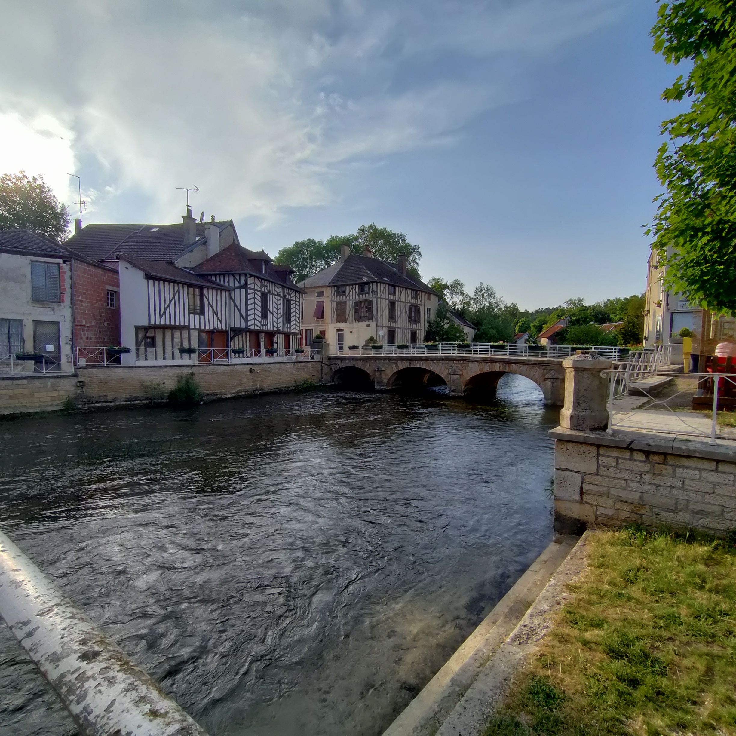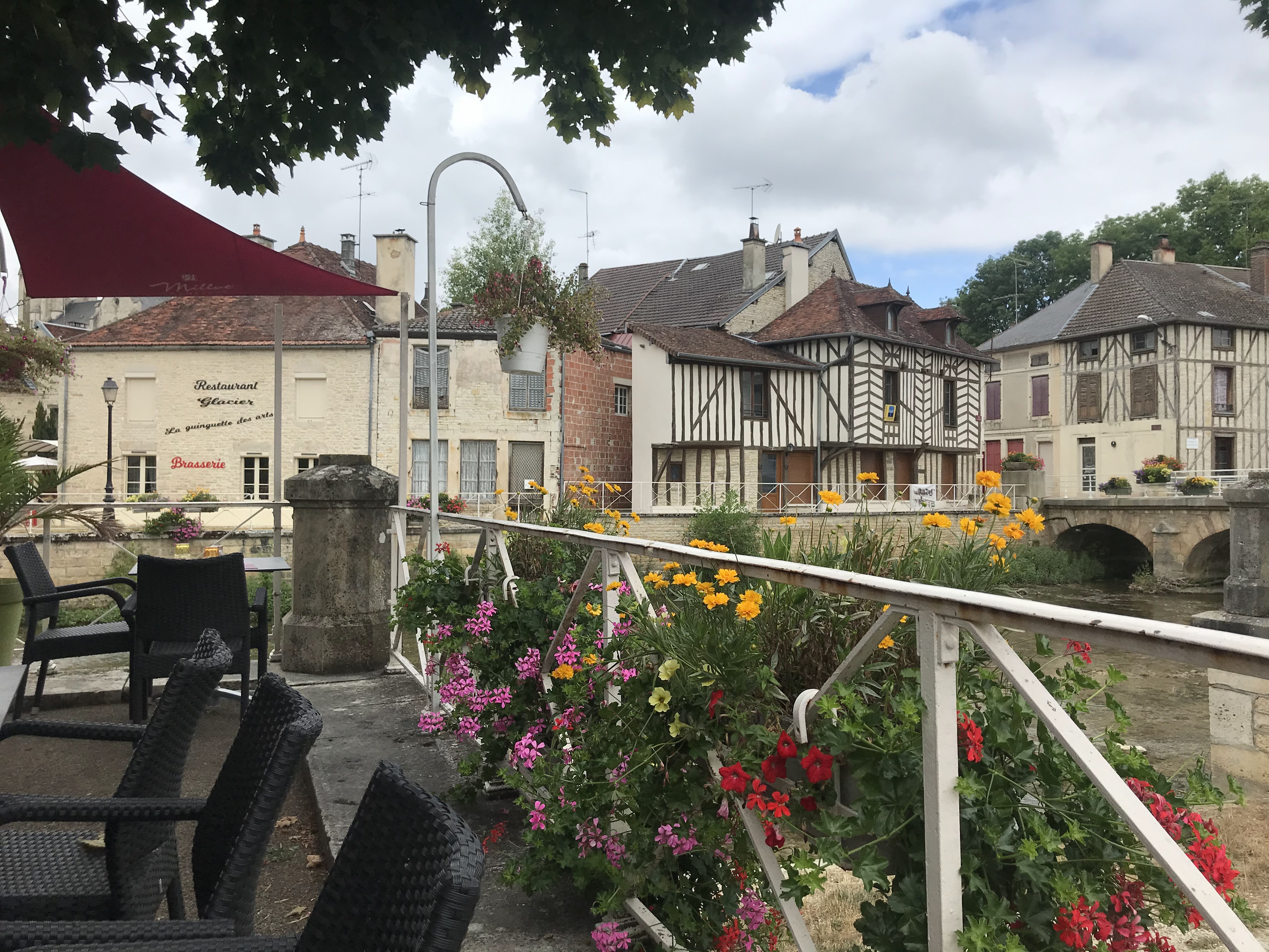 Prenez un verre sur une jolie terrasse dans la campagne française ensoleillée. Sur la commune d'Essoyes au bord de l'Ource. Promenez-vous dans la ville et parcourez la pittoresque route Renoir.
