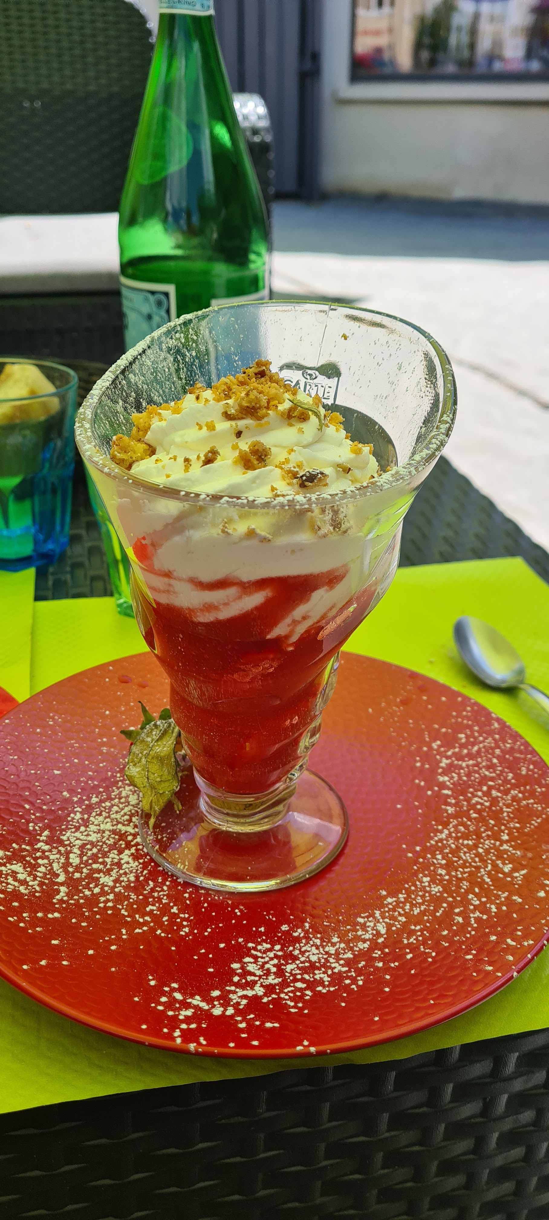 Un café et des glaces en fin de service... 14h.. service interminable, et coupes plutôt chères.... Pas beaucoup d'ombre à cette terrasse.