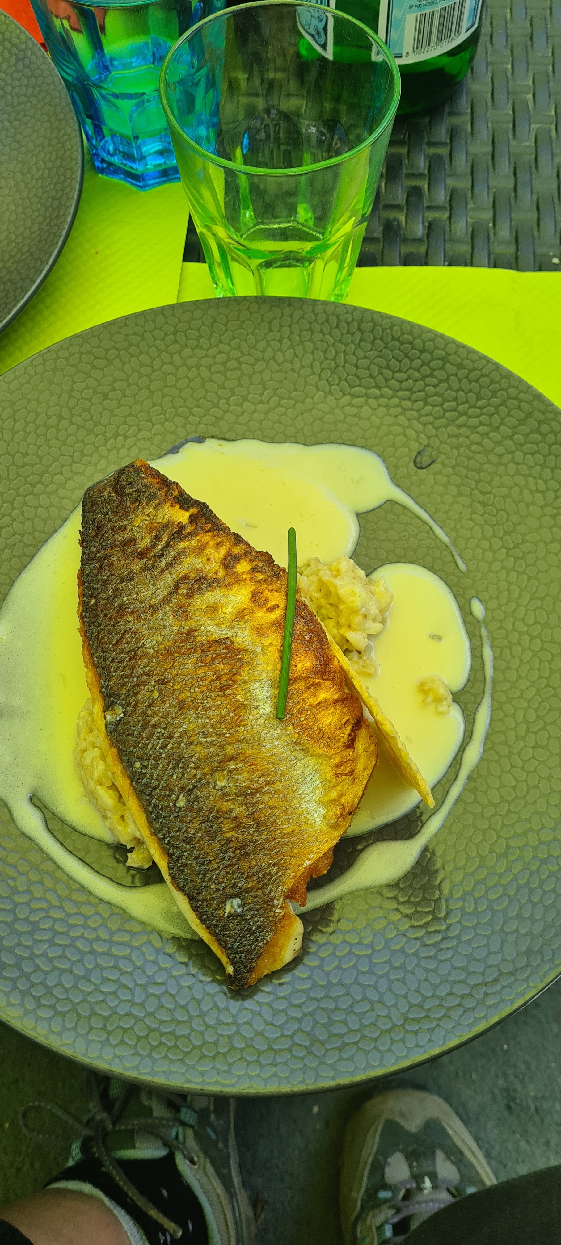 Réservation avec un chien, pour 3 personnes. Ce jour là, un groupe de Gentlemen drivers avec des vrais et beaux bolides. Une belle terrasse, place au bord de la rivière avec des vaches 🐮, Service un peu long, plats corrects sans plus. Et c’est quoi de proposer un steak tartare avec des légumes et des pommes de terre poêlées ???? J’ai choisi autre chose. 170€ à 3, avec apéro et vin, peut mieux faire 🤨