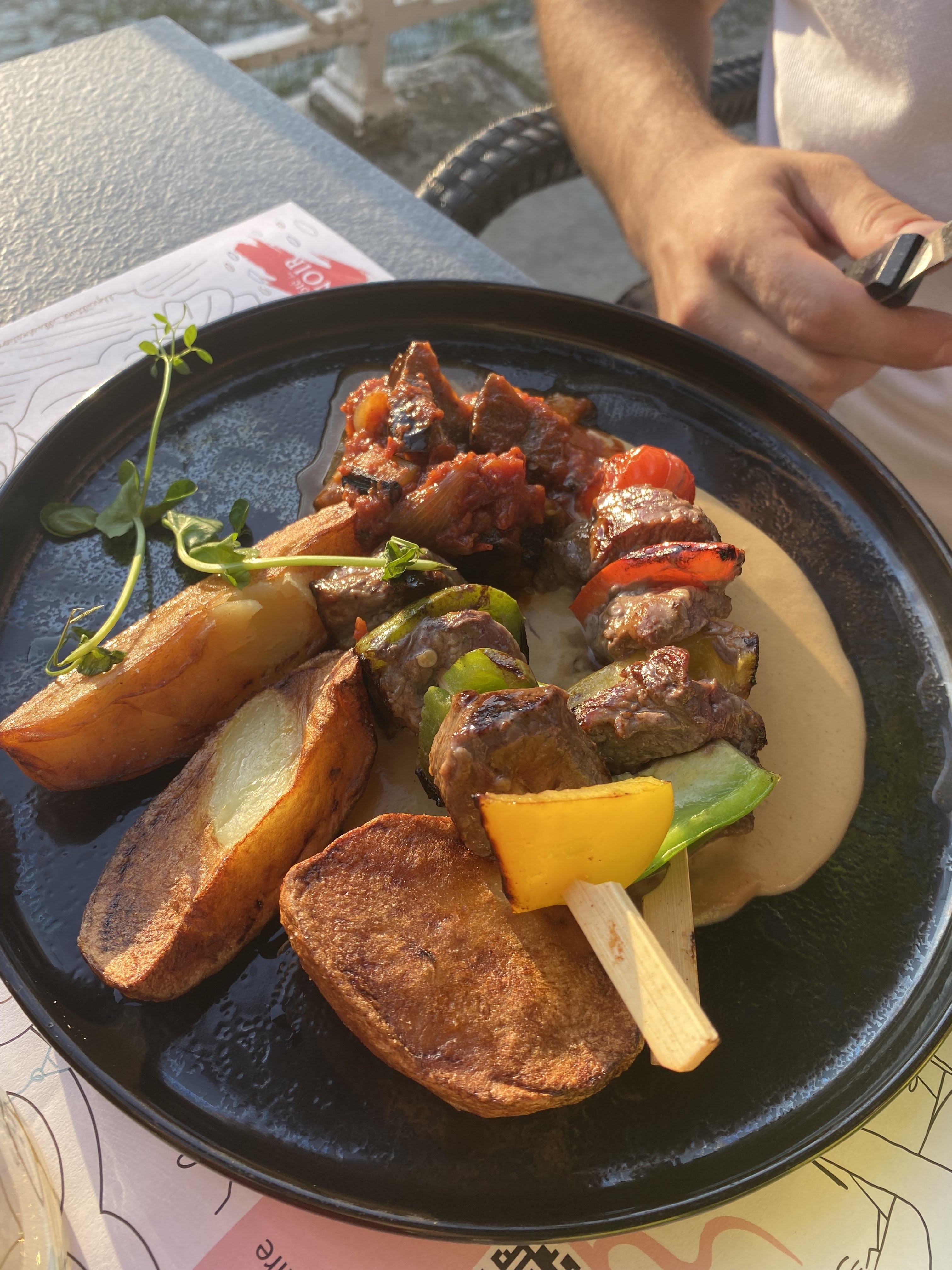 La nourriture ici est délicieuse et surprenante. De bons plats pour un prix raisonnable, fortement recommandé. La vue depuis la terrasse était très agréable. Cependant, je n'ai pas rencontré une hôtesse aussi antipathique depuis longtemps.