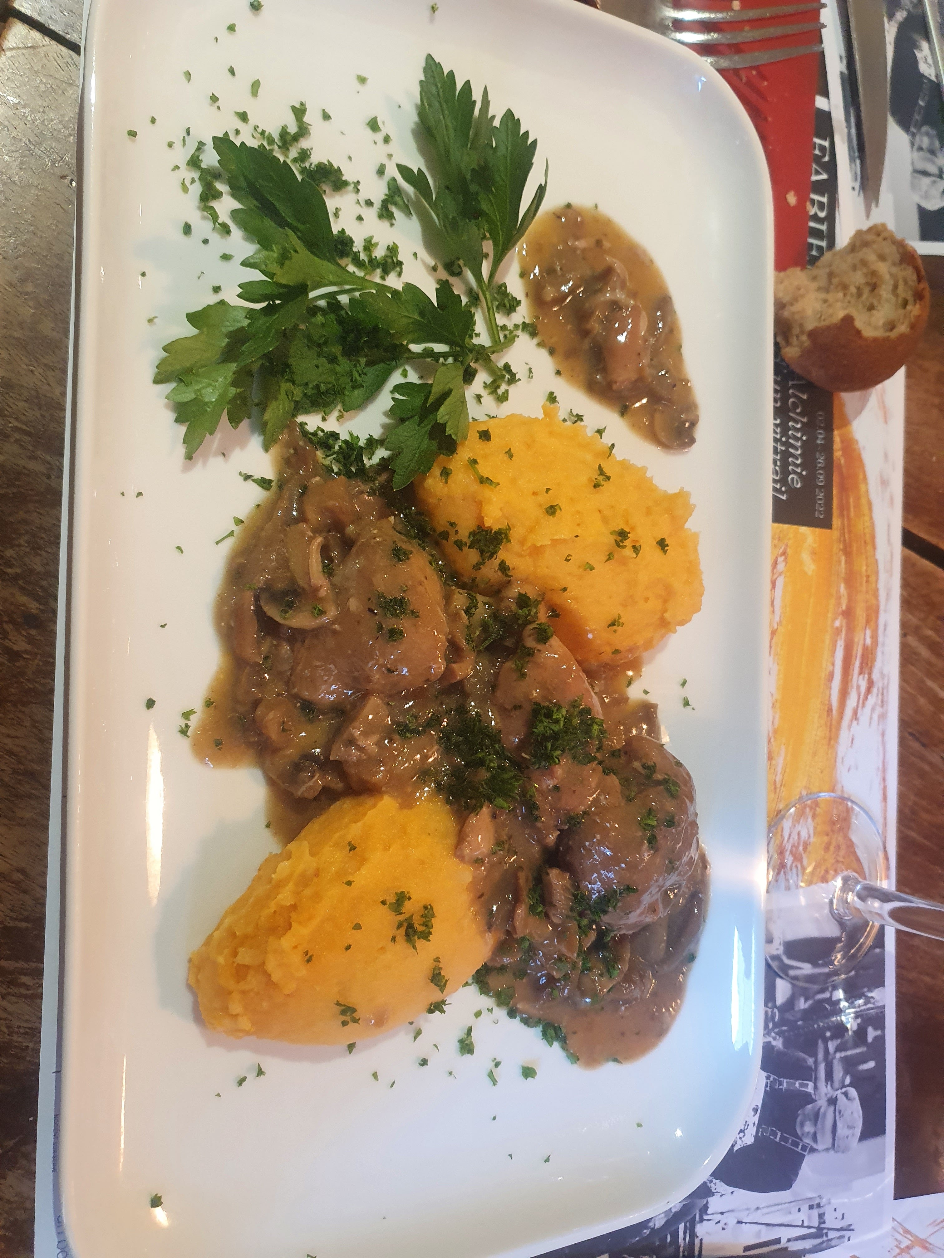 J'ai un avis assez mitigé sur ce restaurant. L'exécution et la qualité des plats sont très inégales. J'ai apprécié mon entrée, une salade aux aiguillettes de canard et gésier, très généreux en quantité et bien assaisonnée. Mon mari a beaucoup moins aimé sa salade d'avocat et de crevettes, écoeurante tant il y avait une quantité débordante de sauce cocktail. En plat nous avons commandé du poulet avec une sauce aux cèpes accompagné de purée de patate douce. La purée était bonne, le poulet également, on sent que la viande se tient bien comme du poulet fermier. En revanche la sauce aux cèpes n'était pas à la hauteur de mes attentes. Les cèpes ont une texture et un arrière goût de champignons en boîte. Je comprends qu'à ce prix là, 15€50 pour une formule entrée + plat, je n'aurais pas pu avoir de cèpes fraîches, mais j'aurais limite préféré que vous intituliez ce plat poulet sauce aux champignons et que vous mettiez des champignons moins chers mais frais (champignons de Paris). L'abondance de persil était également inutile. J'aurais pu m'arrêter là et mettre 3 étoiles, mais je dois en enlever une pour l'absence de recueil des données clients comme imposé par le nouveau protocole sanitaire en vigueur le jour de ma visite, le 27 octobre 2020. Bon courage néanmoins par ces temps difficiles.