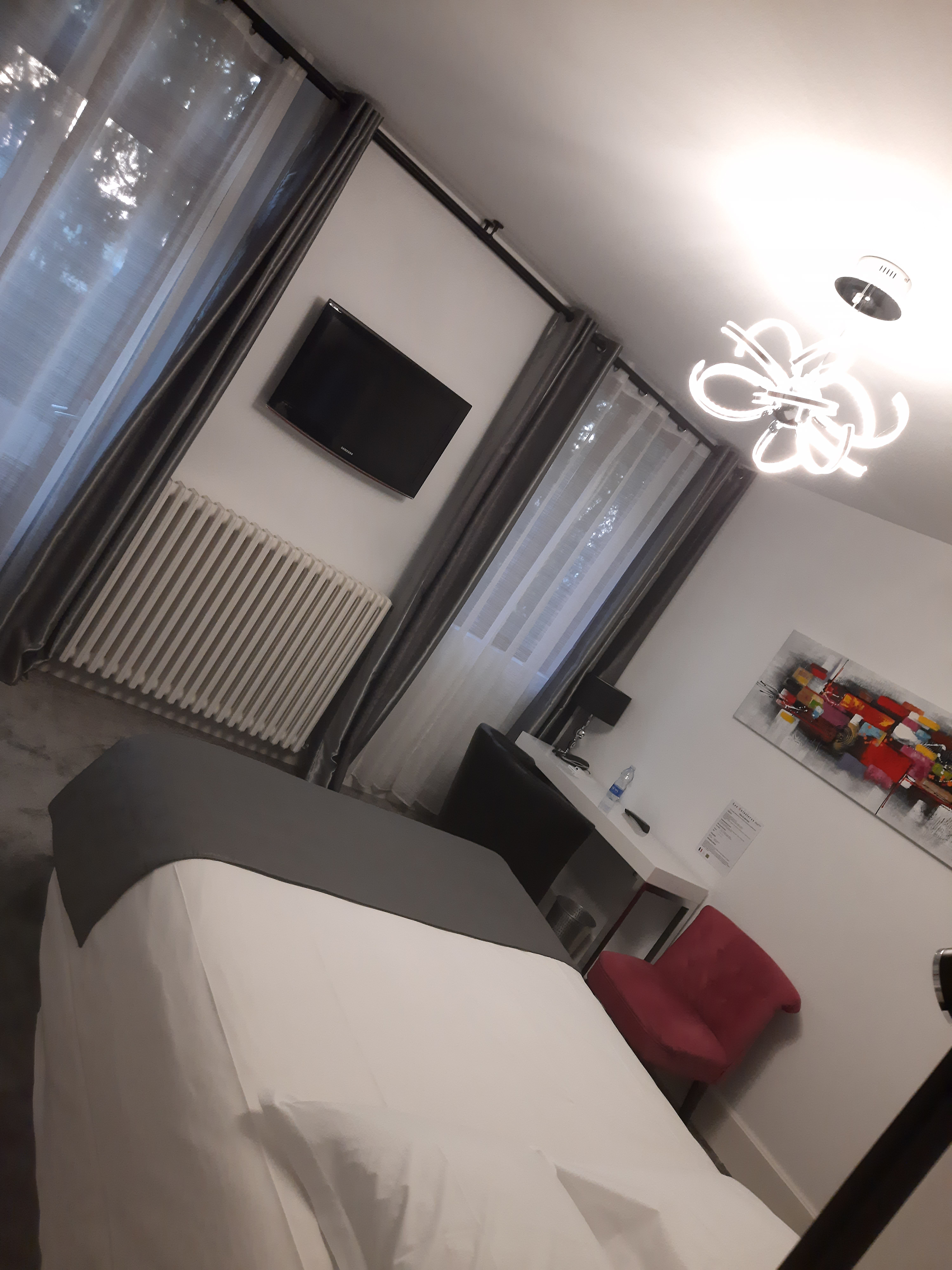 Hôtel très agréable, avec une très grande chambre jolie et accueillante,très grande sale de bain avec baignoire, côté repas , gestes barrières obligatoire, ca sera repas en chambre 👌 et surtout repas très joli et délicieux, le petit déjeuner vous sera aussi servi en chambre, pas de problème pour garer ca voiture, il y à un grand parking juste devant . Bref hôtel très charmant avec un très beau jardin et pas très loin pour les amoureux de la pêche se trouve une jolie rivière. Je vous recommande se lieu calme et reposant 👍😉.