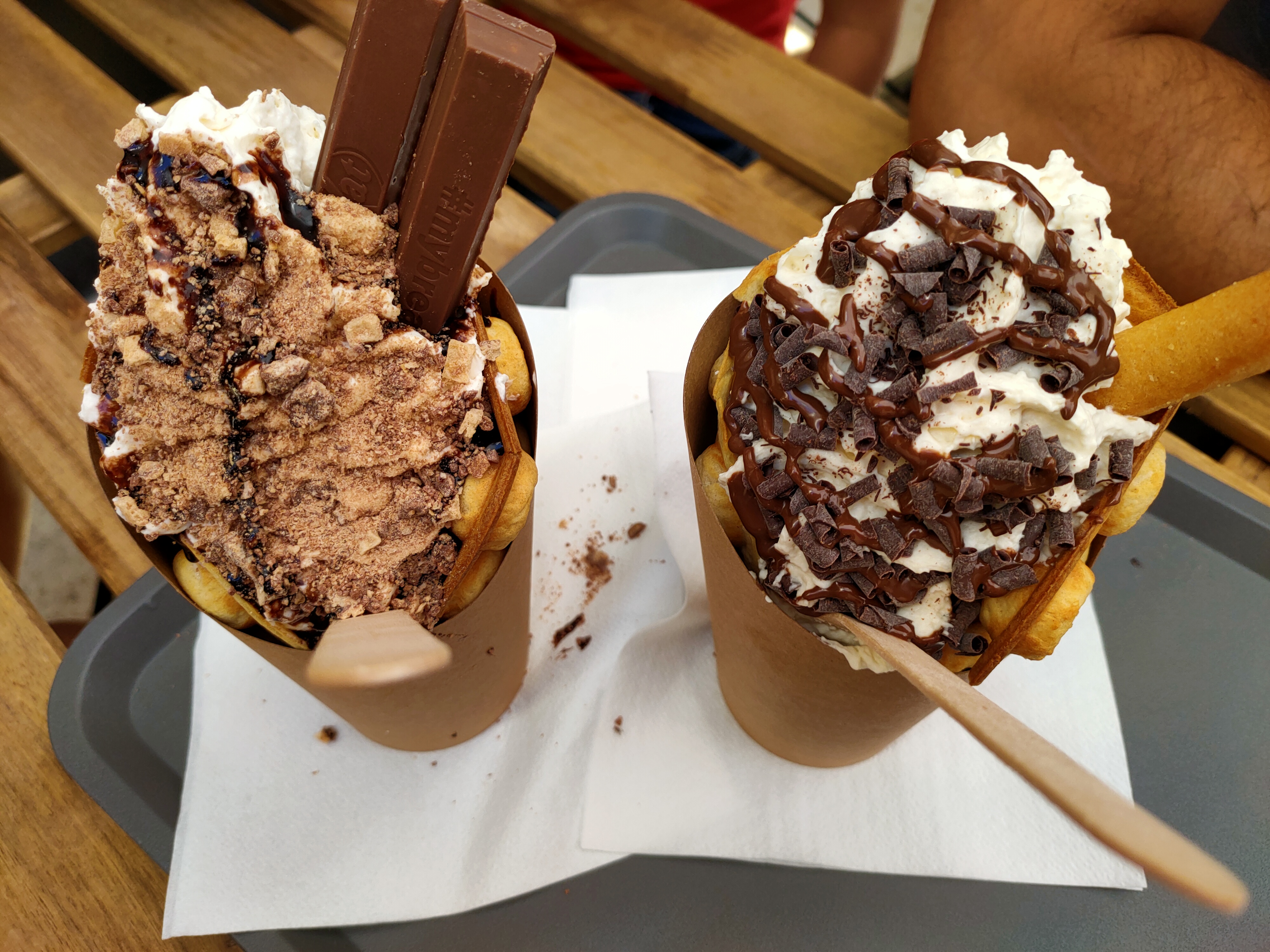 Ce qui nous a fait arrêter ce sont les bubble waffle (a partir de 6€50) ! Grand choix de glace, fruit, topping... Terrasse et salle.