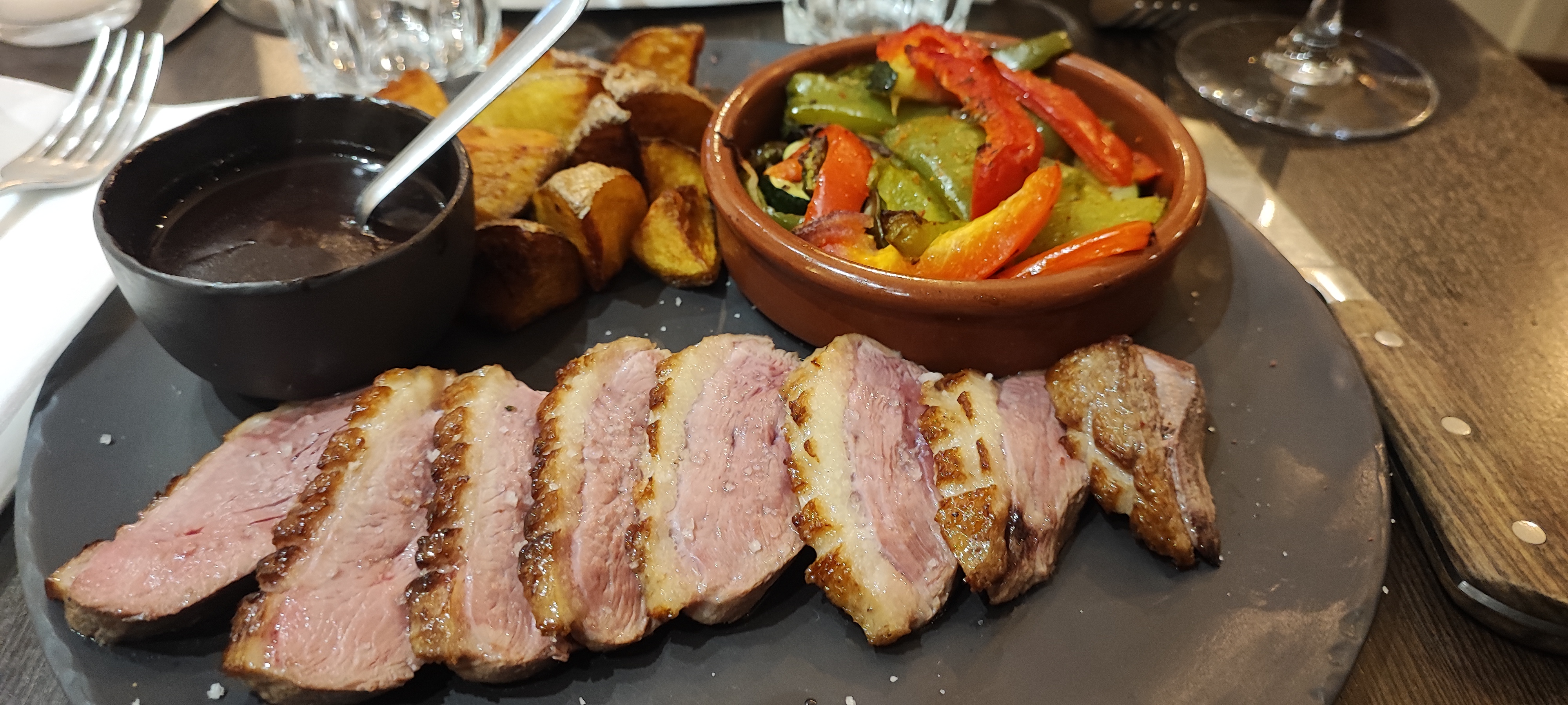 Bonne viande bien dorée avec sauce à côté, accueil simple et agréable. Juste un bémol, j'ai pas apprécié le goût piquant/fermenté de la poire en dessert.