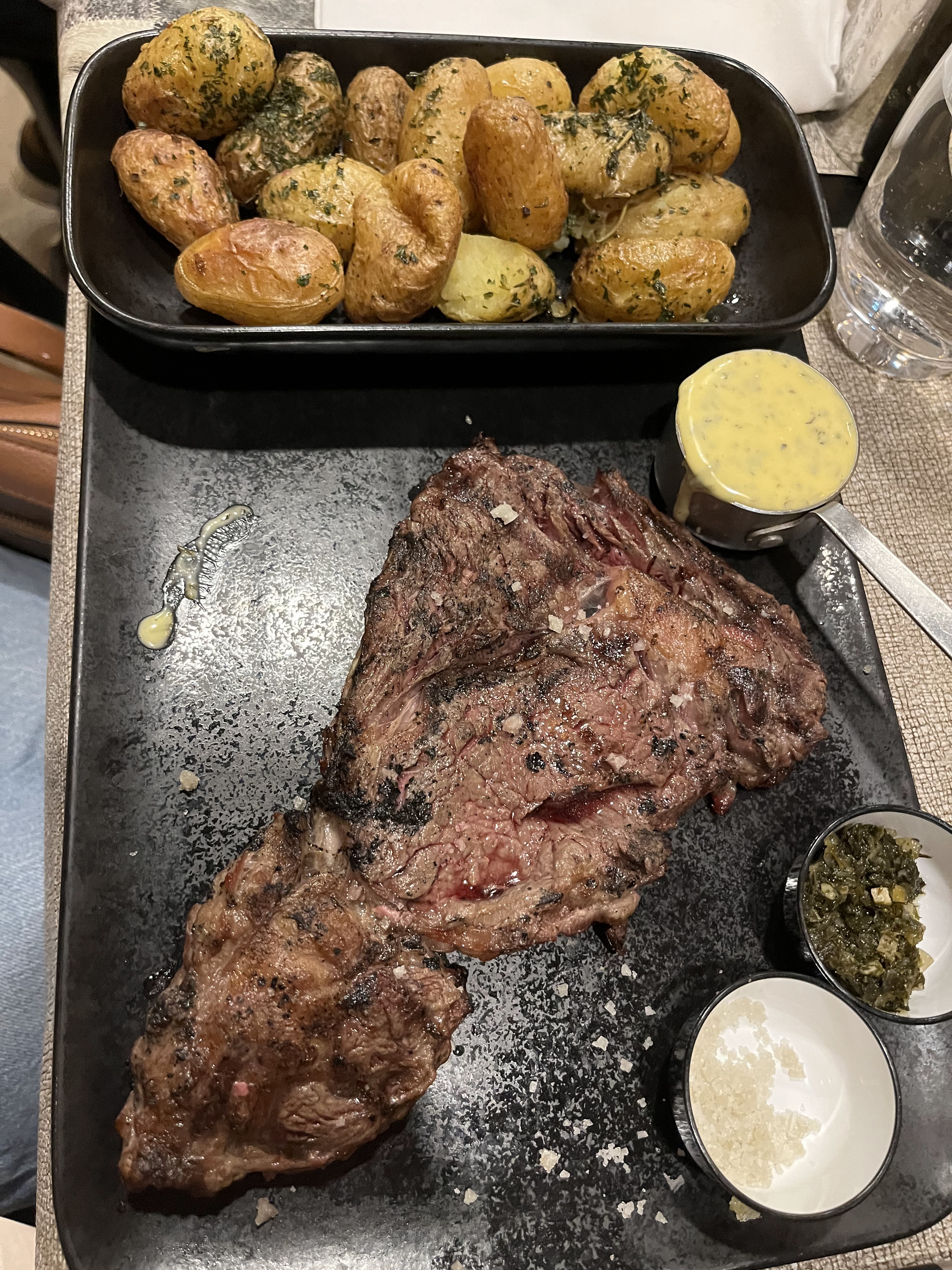 Très belle expérience dans ce restaurant, je recommande l’endroit très chic et classe. Les serveurs également pour le plat, La dégustation est bonne la cuisson est parfaite et la viande est tendre ! L’accompagnement est travailler mais à revoir, pour les pommes de terres grenailles je trouve que ca manquait de sauce et de gourmandise .. pour le dessert excellent !