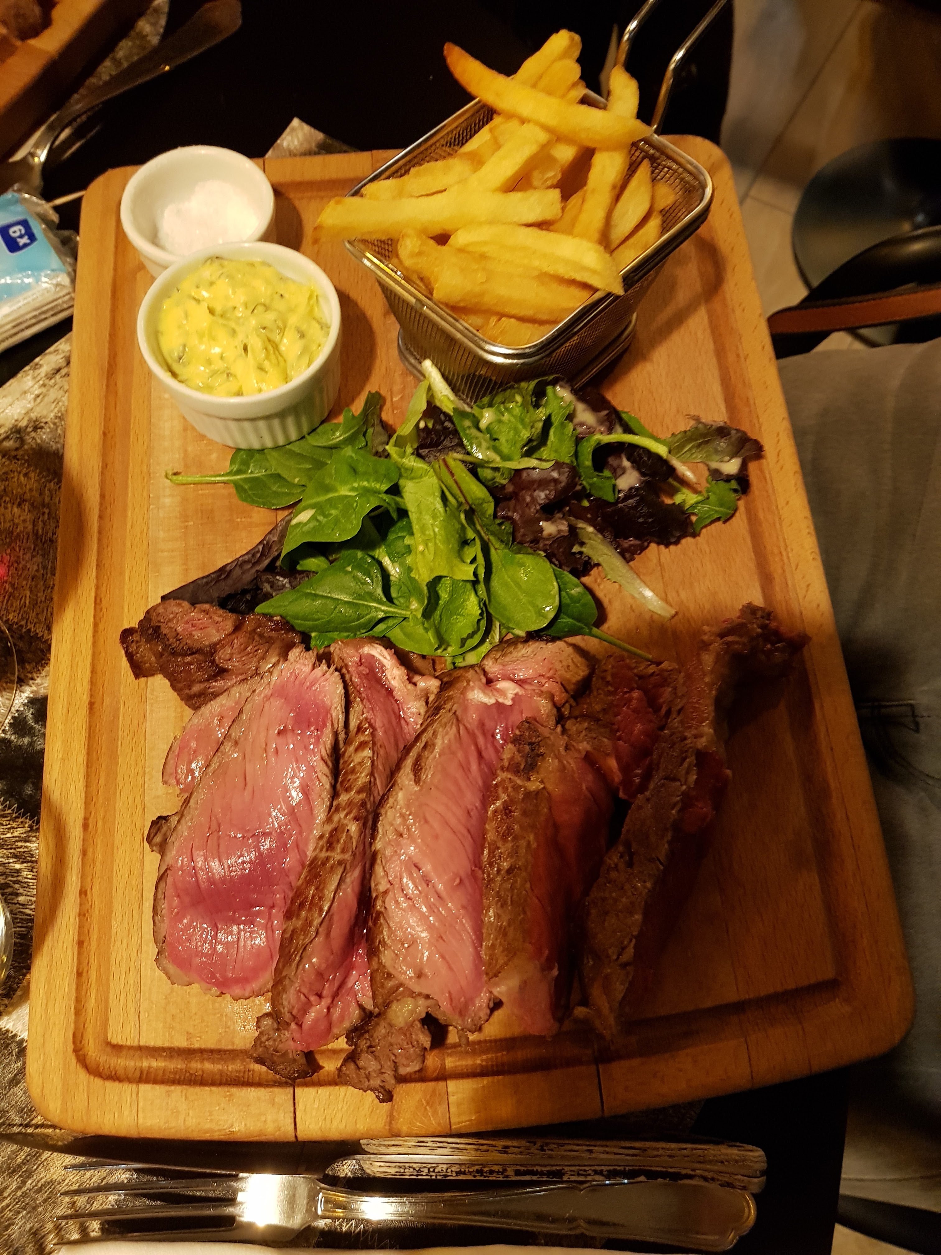 Restaurant spécialisé en viande, service impeccable, frites maison et un baba au rhum a tombé !
