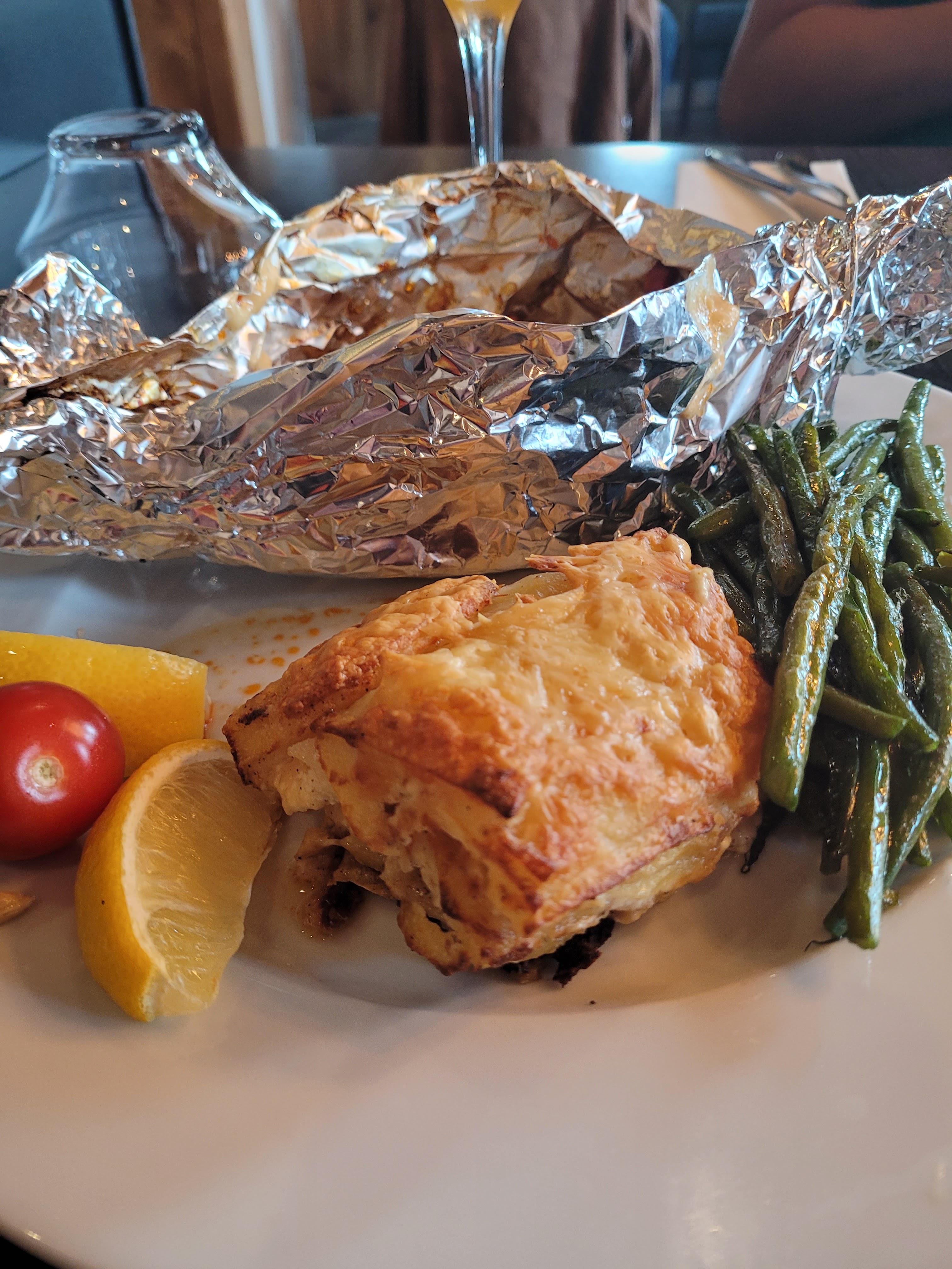 Servi copieusement mais nourriture très salée set de table pas changé à tous les services un peu cher à mon goût