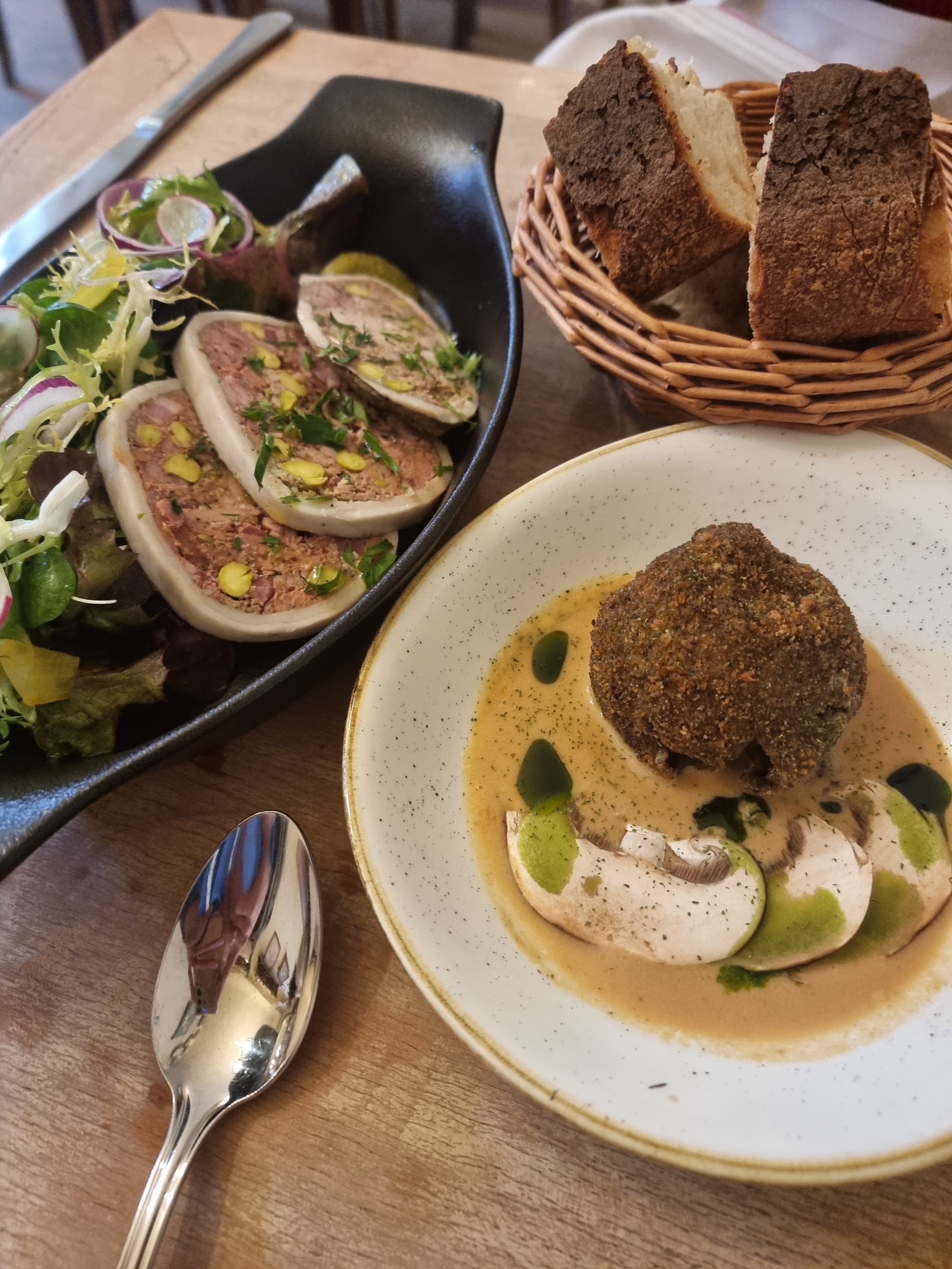 Entrées bien travaillé et bon, plat décevant, portion petite et un manque de goût (ballotine) dessert vraiment super, le point fort du repas, accueil chaleureux