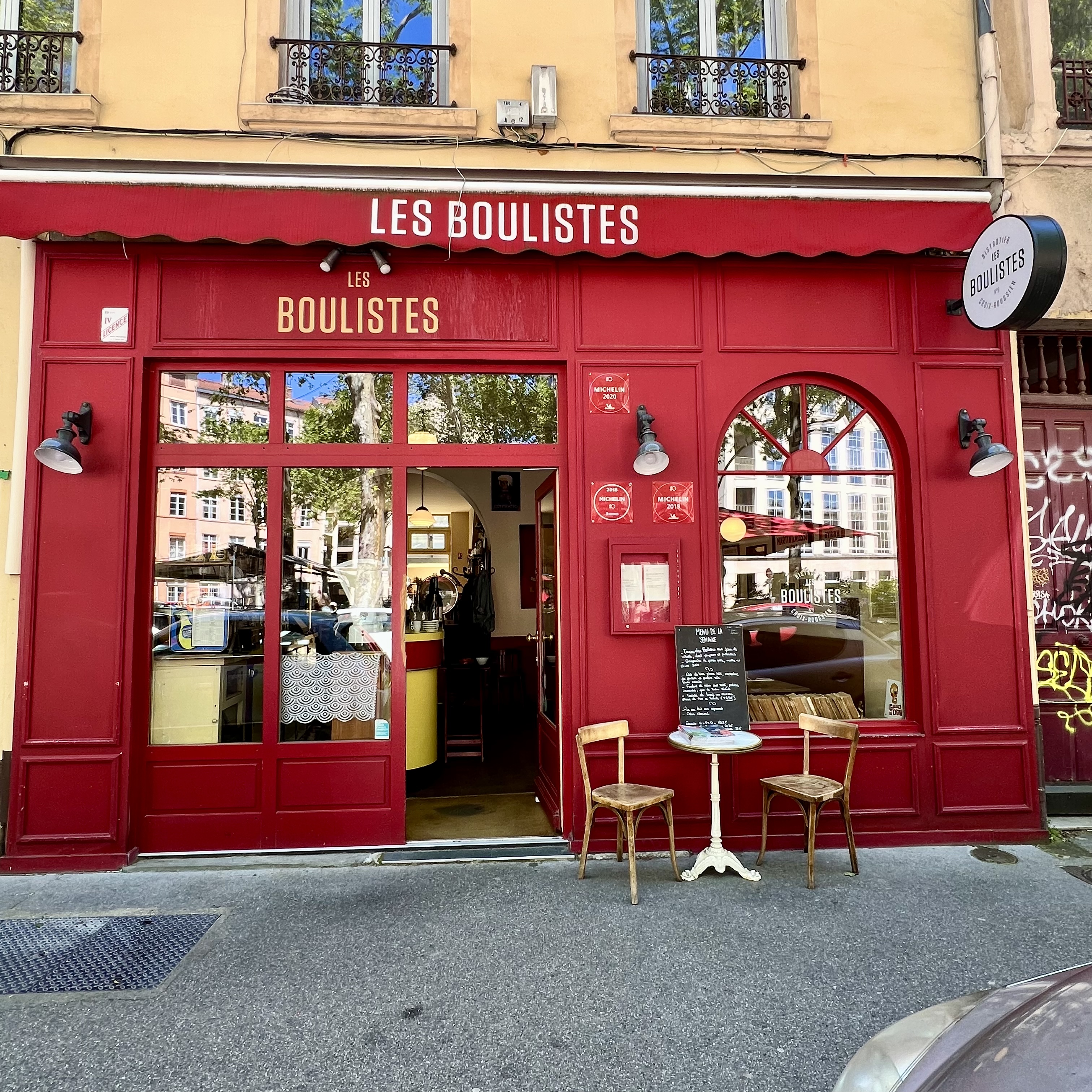 Bien calé sur la terrasse de la place Tabareau à l’ombre des platanes, les boulistes est un bistrotier croix-roussien comme on les aime. Passé les portes des Boulistes, on se retrouve dans un cadre authentique des années 50 avec son bar en Formica, les vieilles réclames et sa vaisselle dépareillée… Côté cuisine, on n’est pas en reste avec de belles associations, un dressage moderne et des saveurs maîtrisées. Le personnel nous a régalé visuellement et gustativement. Les accords mets et vins étaient parfaits. Quel spectacle !!! Merci pour l’accueil, on a bien vécu…