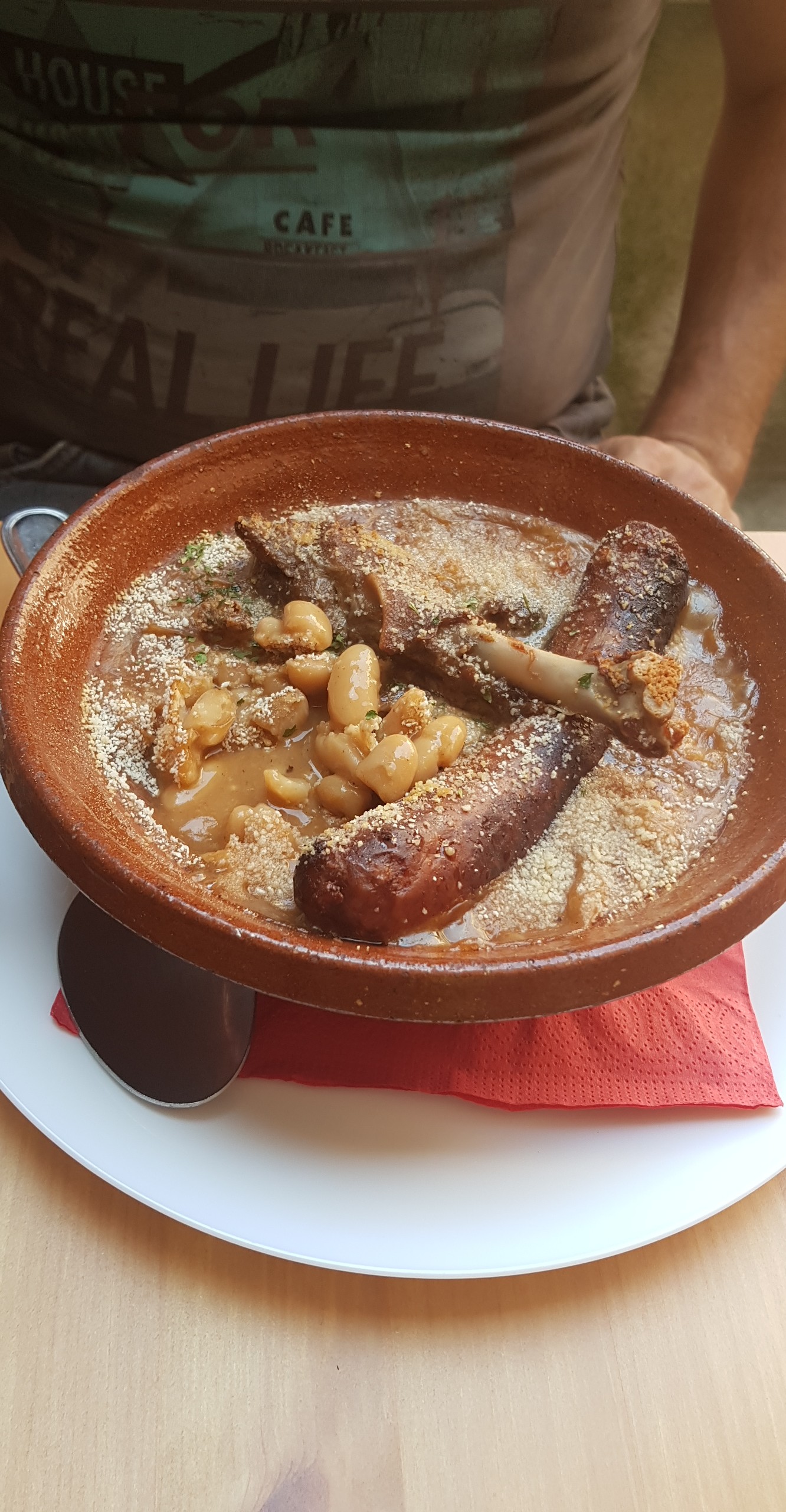 Nourriture très délicieuse dans un très joli patio. L'impressionnant Cassoulet. Bon prix, 46 euros pour 3 personnes avec boissons et sans desserts. Le traitement du personnel a été très bon, ils ont fait un effort pour se faire comprendre en espagnol et ont été très attentifs aux besoins d'un diabétique.