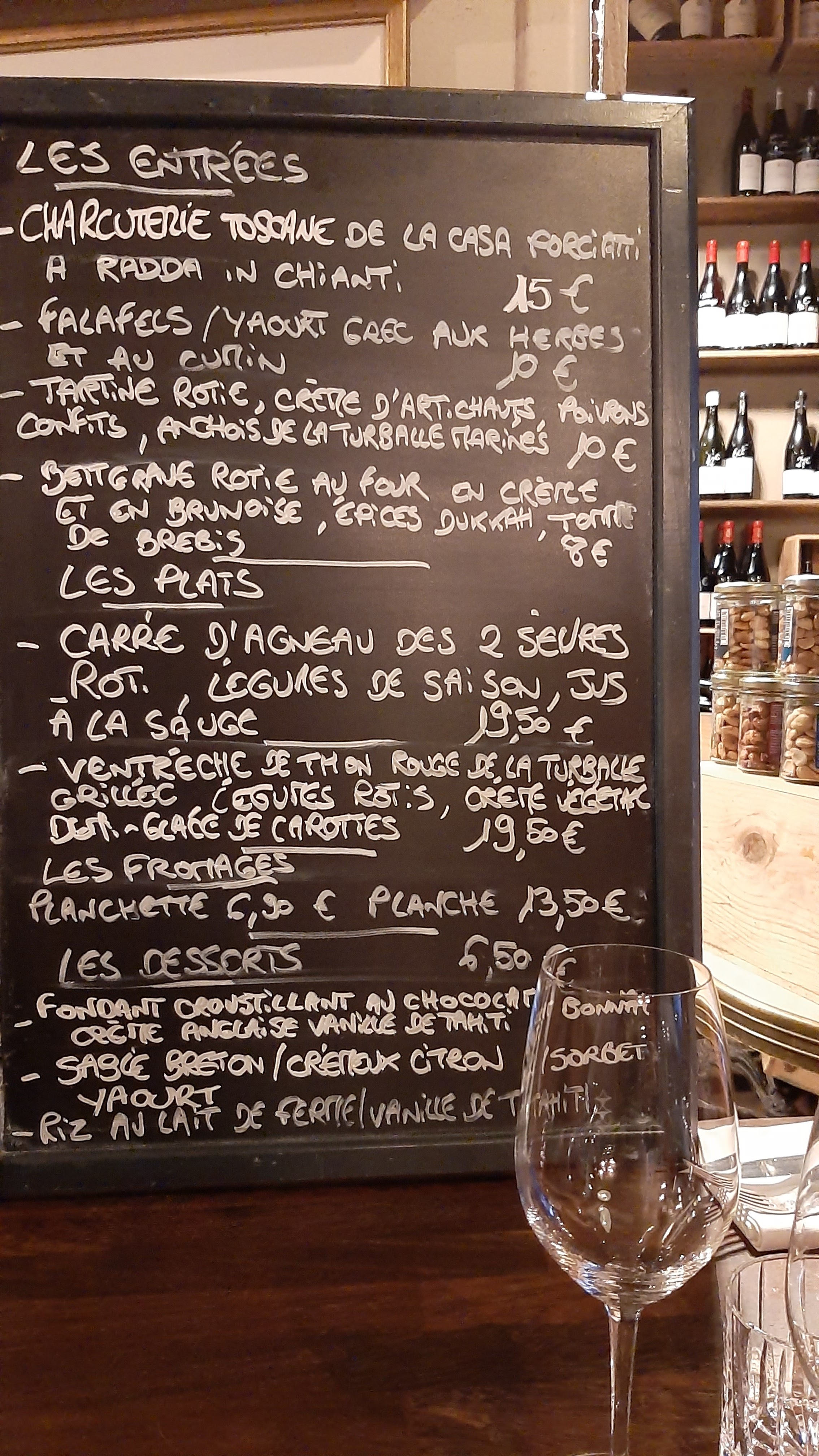 Ce fut un dîner charmant. Les gérants sont agréables, la carte est de saison et propose différents plats alléchants. Concernant les vins, encore amateurs, nous avons suivi les conseils et propositions qui nous ont été faites, et c'était très bon. Un petit chenin angevin avec l'entrée, un vin rouge de Crète pour accompagner l'agneau rôti et la lotte. Nous reviendrons !