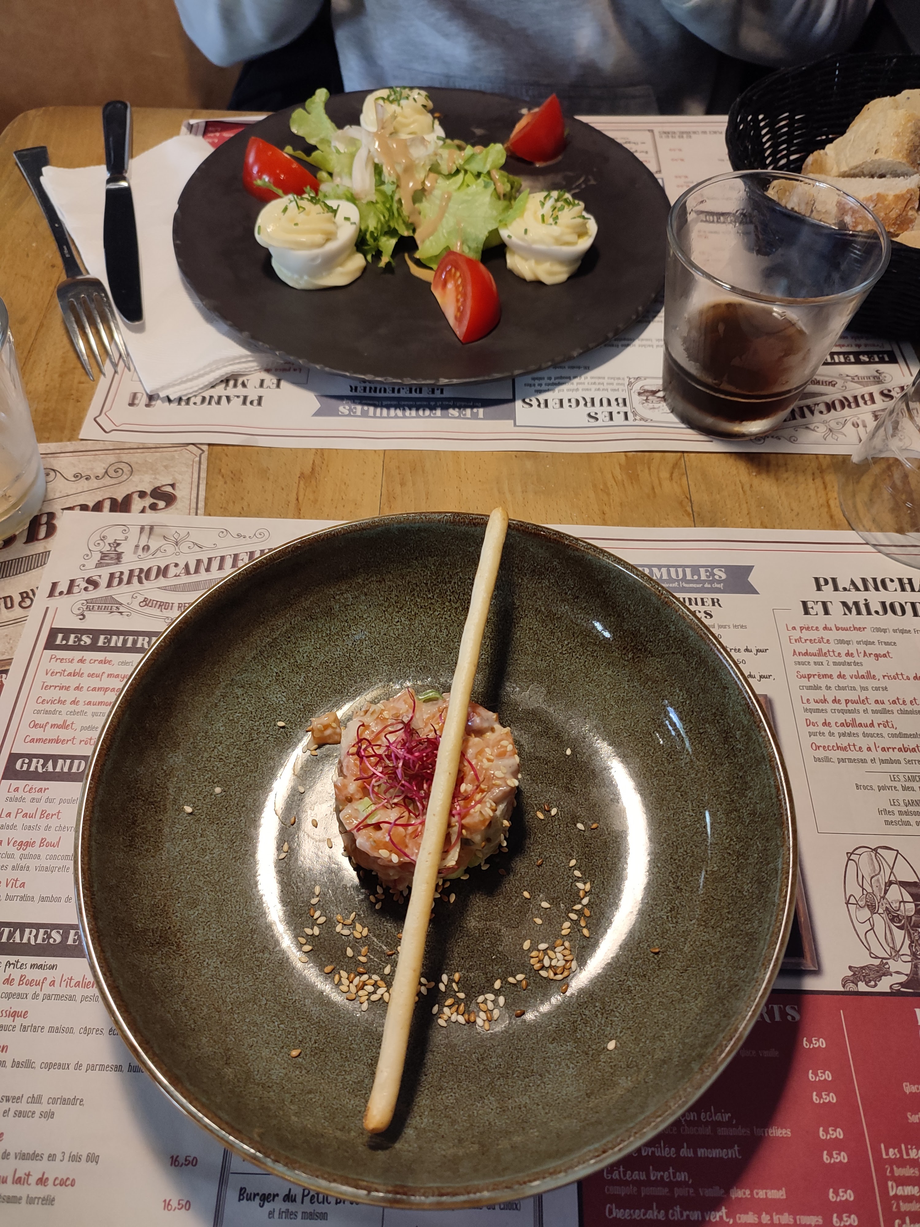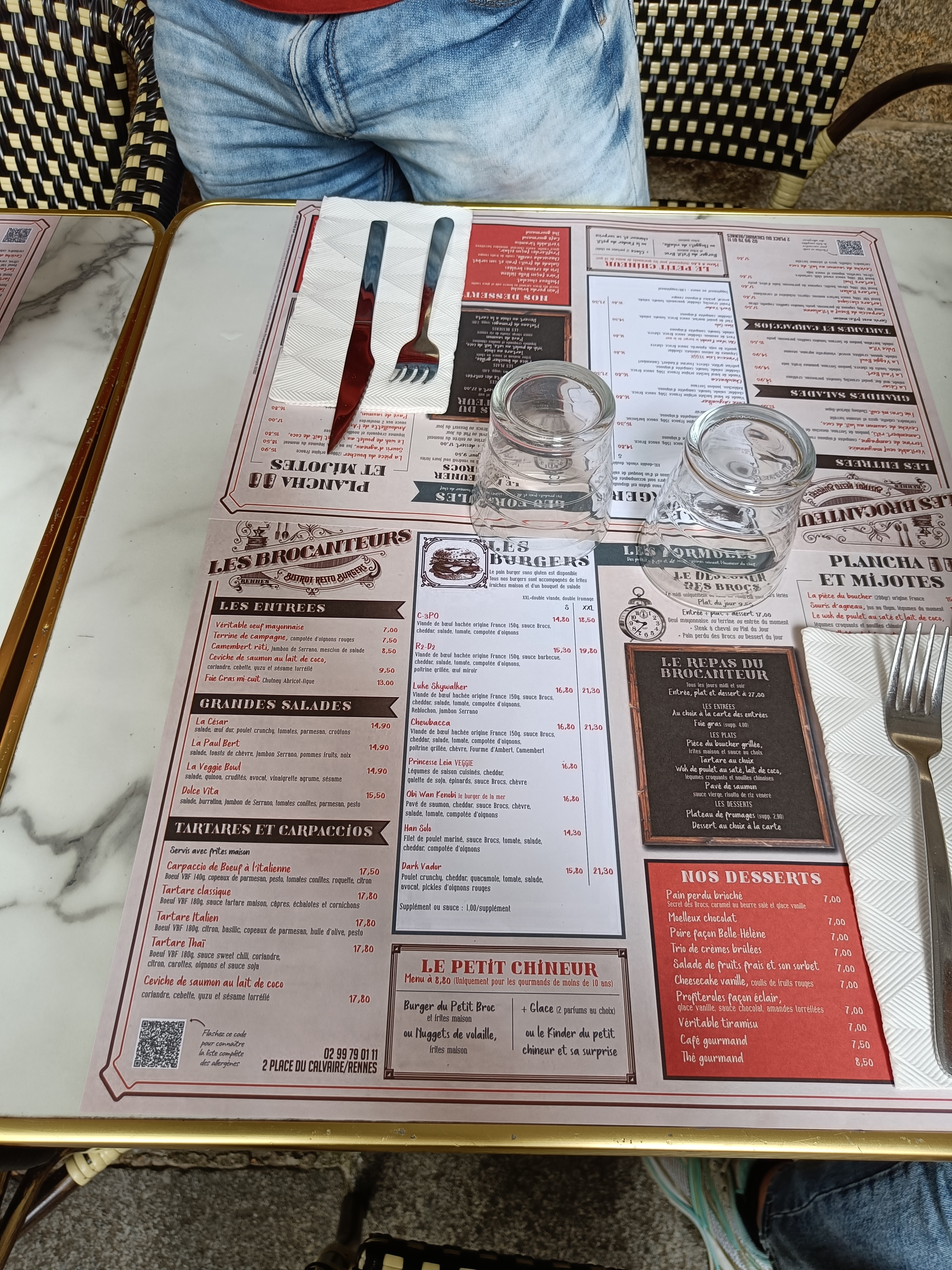Mes parents étaient de passage à rennes et j’ai voulu tester les brocanteurs avec eux, j’ai été plus que ravie !! Nous avons très bien été accueillis par le serveur et la serveuse qui ont été souriants, agréables et qui nous ont très bien conseillé ! Le cocktail d’Halloween était super bon, je le recommande ! Le plat délicieux, un moment parfait, rien a dire. Je recommande et je reviendrais pour sur ! Merci pour ce moment agréable !