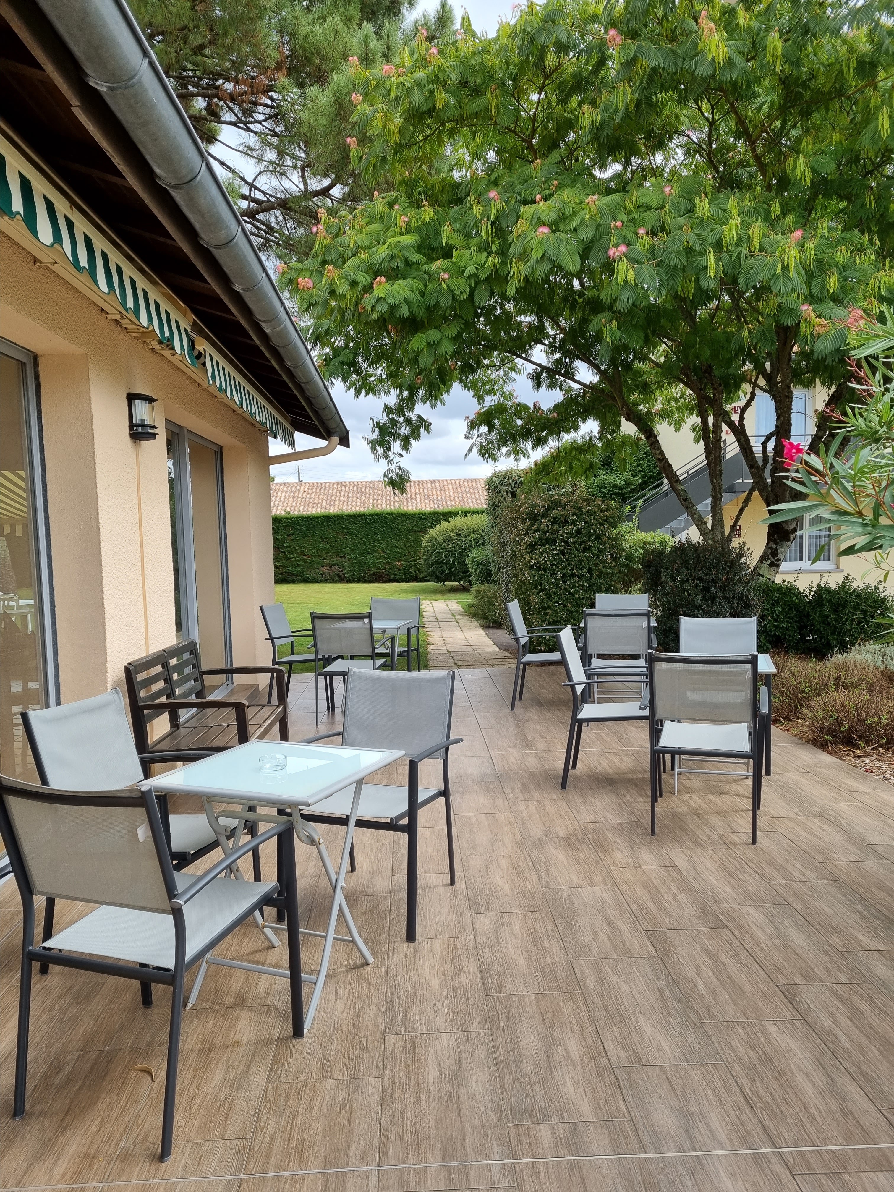 Jolie terrasse dans le jardin, plats faits maison, tarif maîtrisé, Prestation simple mais attentionnée
