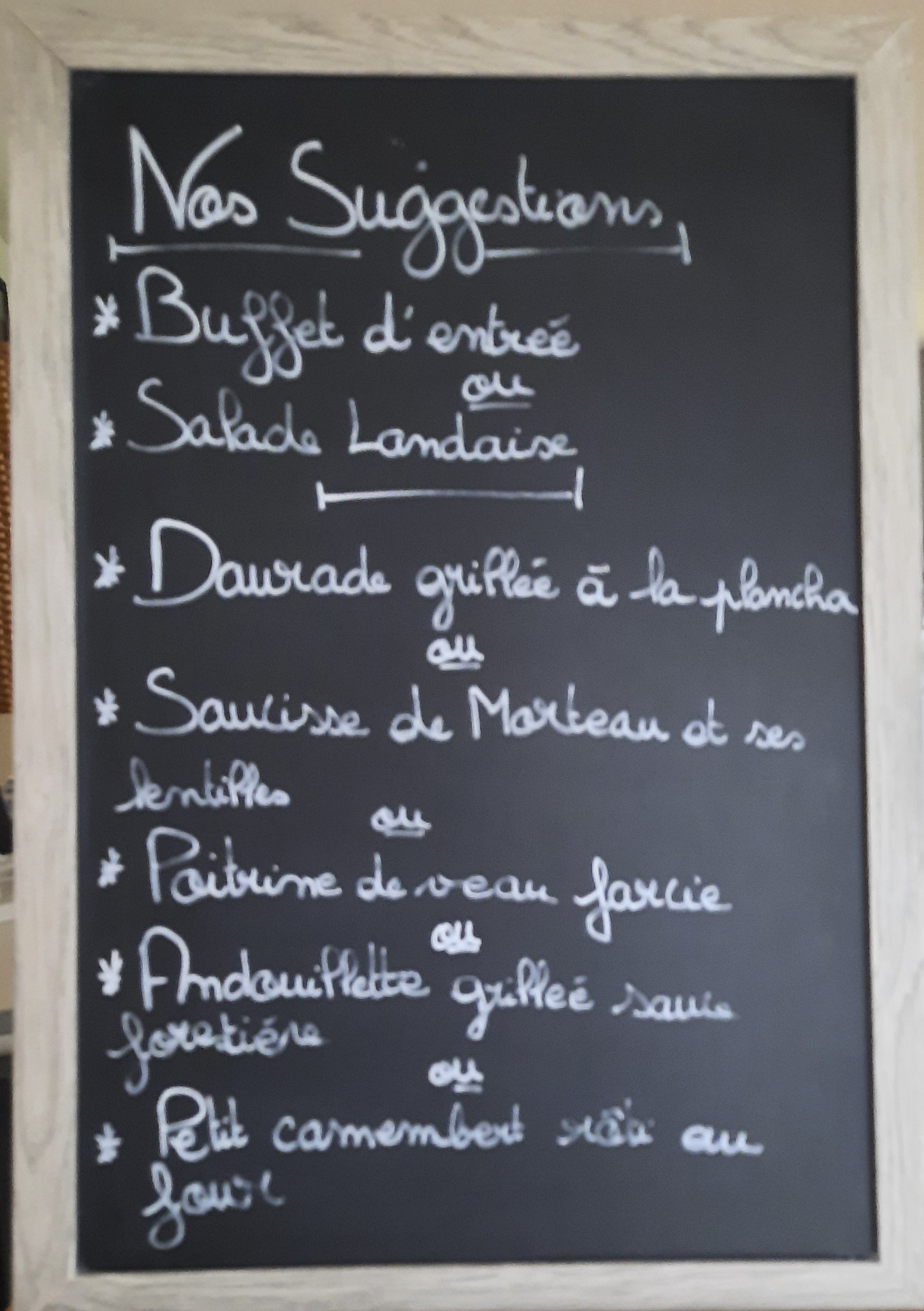 Super restaurant dans hôtel 2 étoiles. Service le midi avec buffet entrée à volonté et 5 menus au choix différents tous les jours, mais souvent les mêmes si vous restez plus d'une semaine