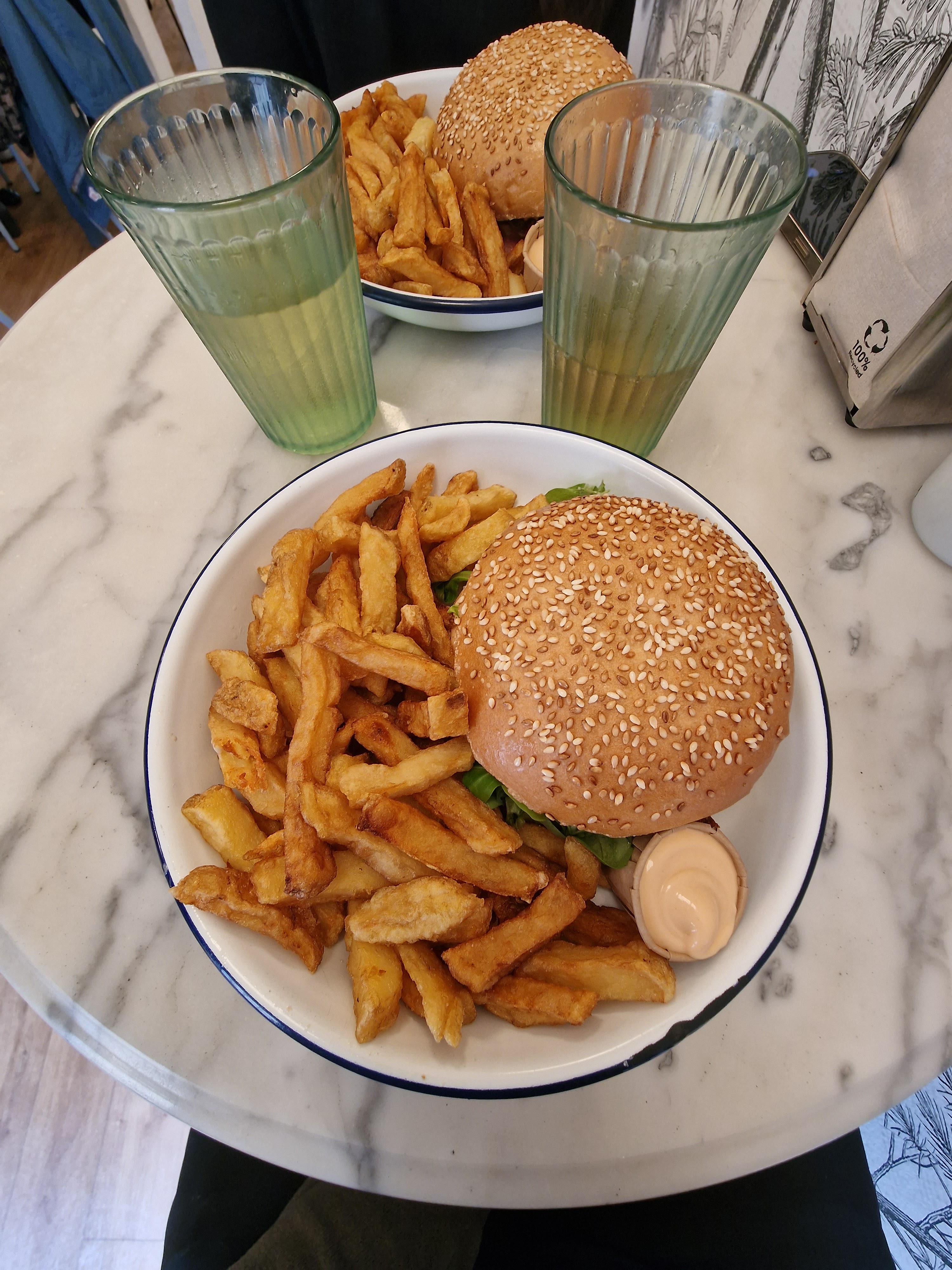 Bon burger, mériterait peut-être un pain plus remarquable. Frite très bonne ! Beaucoup de monde toute la journée, obligé de manger en terrasse, ça pique un peu en novembre...