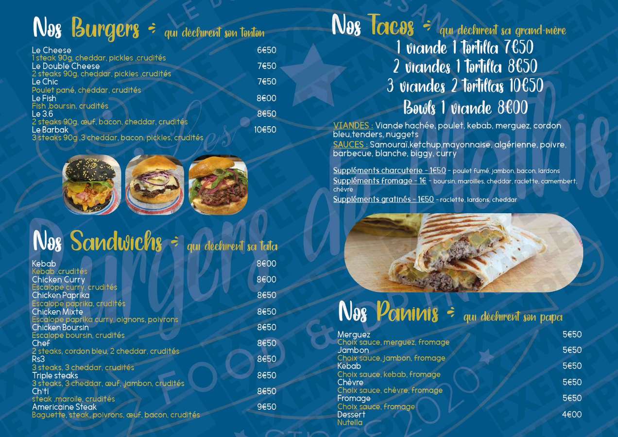 J’ai passer commande de 2 tacos, 2 burgers et des milkshakes vraiment super bon rien à redire le pain bien moelleux frite très bonne et cuisson parfaite je recommande