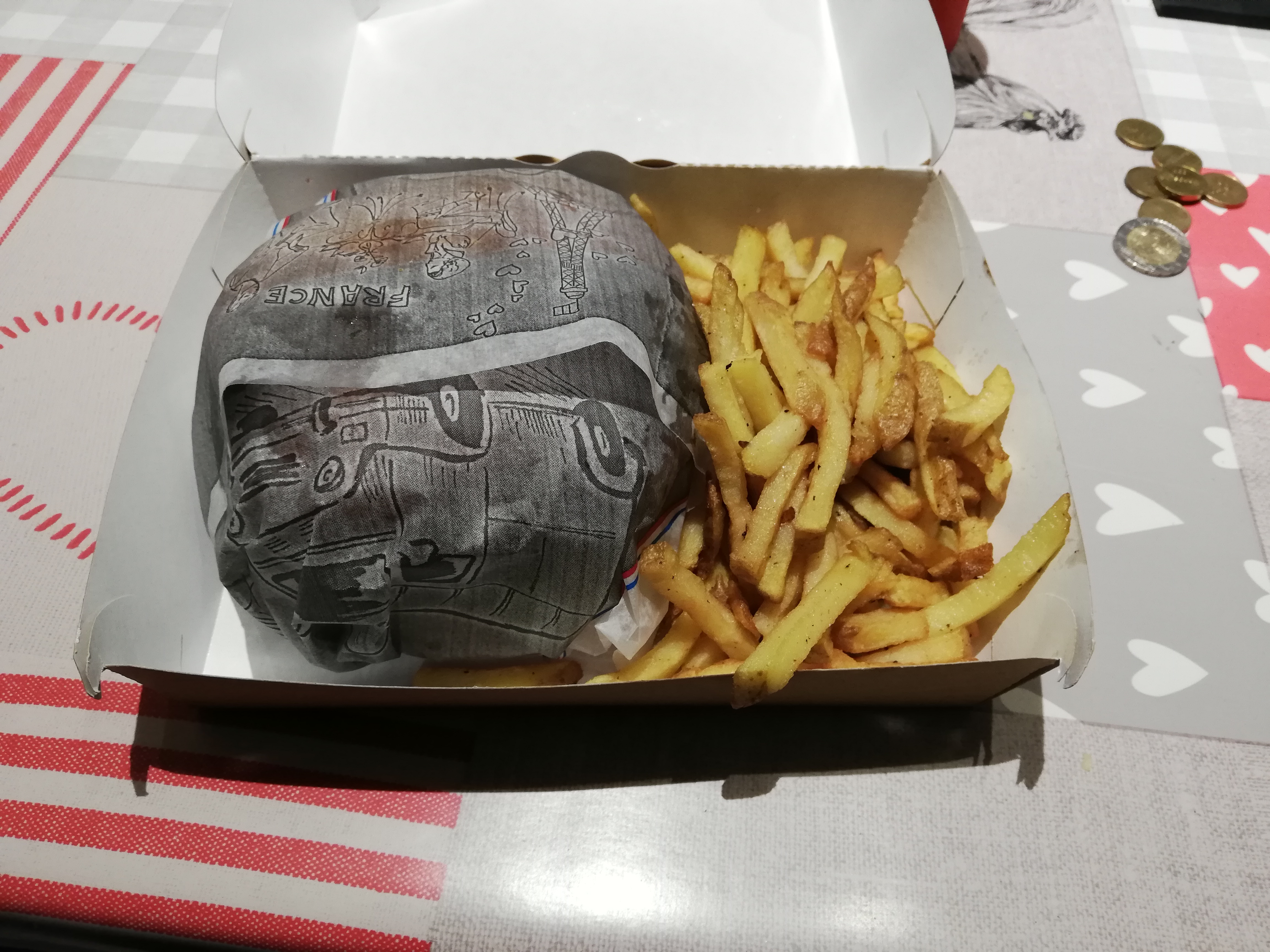Frites très bonne, cependant prise de commande au téléphone moyenne ( pas de nom pour le retrait de commande, ne demande même pas la cuisson des viande). même en précisant la cuisson des viandes je me retrouve avec une viande très très cuite alors que j’ai demandé saignante, sauce fade malheureusement. sinon très bon accueil et décoration très jolie. burger qui donnent très envie mis à part tout ça j’y retournerai quand même pour avoir un second avis car il y avait quand même du bon.