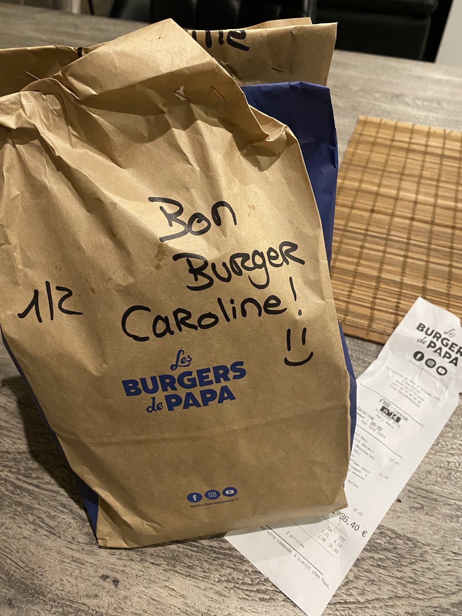 Commandé un soir pour deux ! Tout était parfait, comme d'habitude et de très bons produits ! Petit plus qui ne me laisse pas indifférente, un petit mot sur le sachet à emporter !! Merci et courage :)