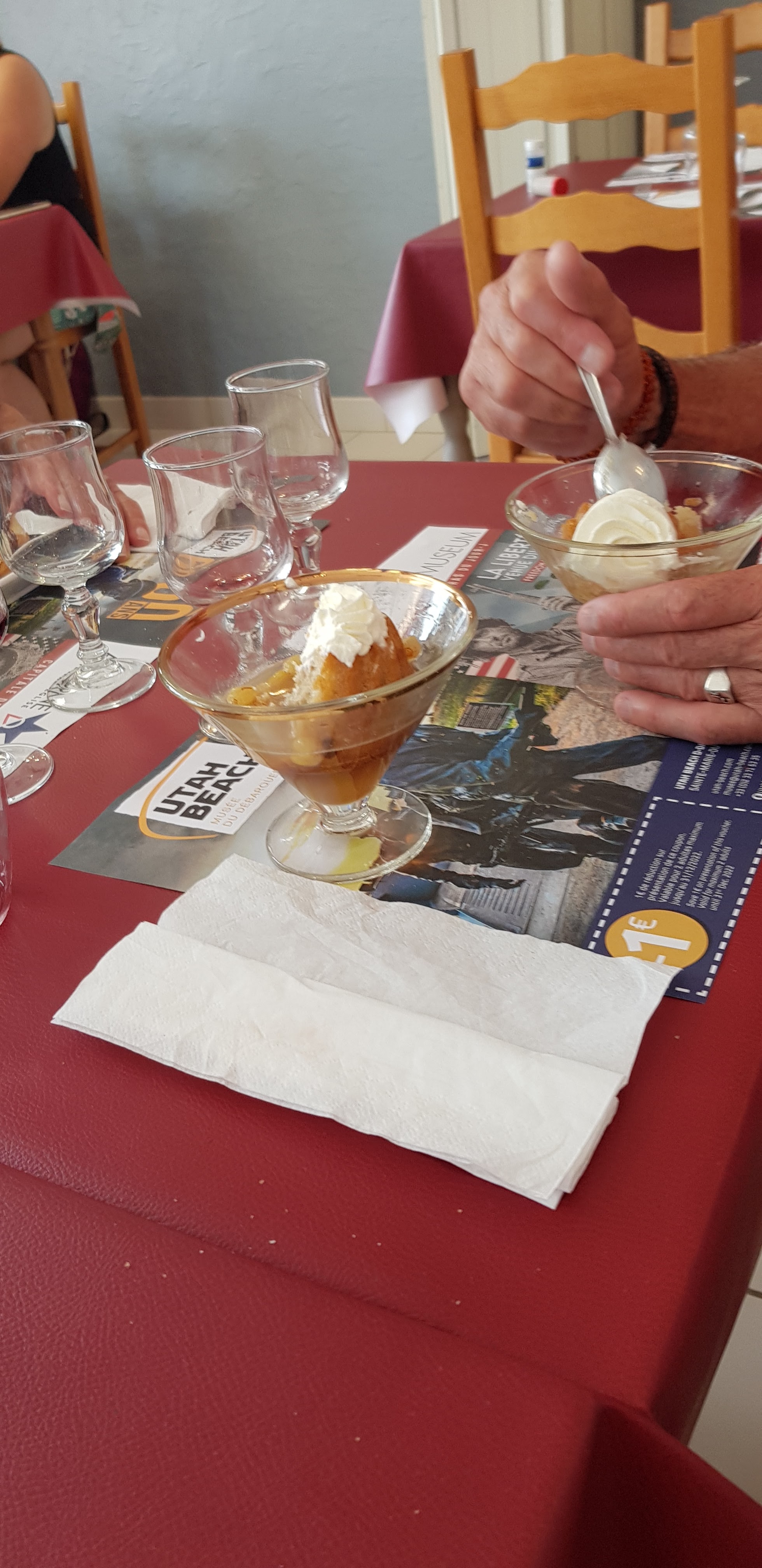 Un de ces superbes petits cafés-restaurants privés que l'on trouve dans les quartiers calmes de la côte normande. J'y ai passé quelques heures formidables avec d'autres membres de l'équipage du vol commémoratif Dakota le jour J. Merveilleux moment et la glace au Calvados vaut bien le détour.
