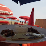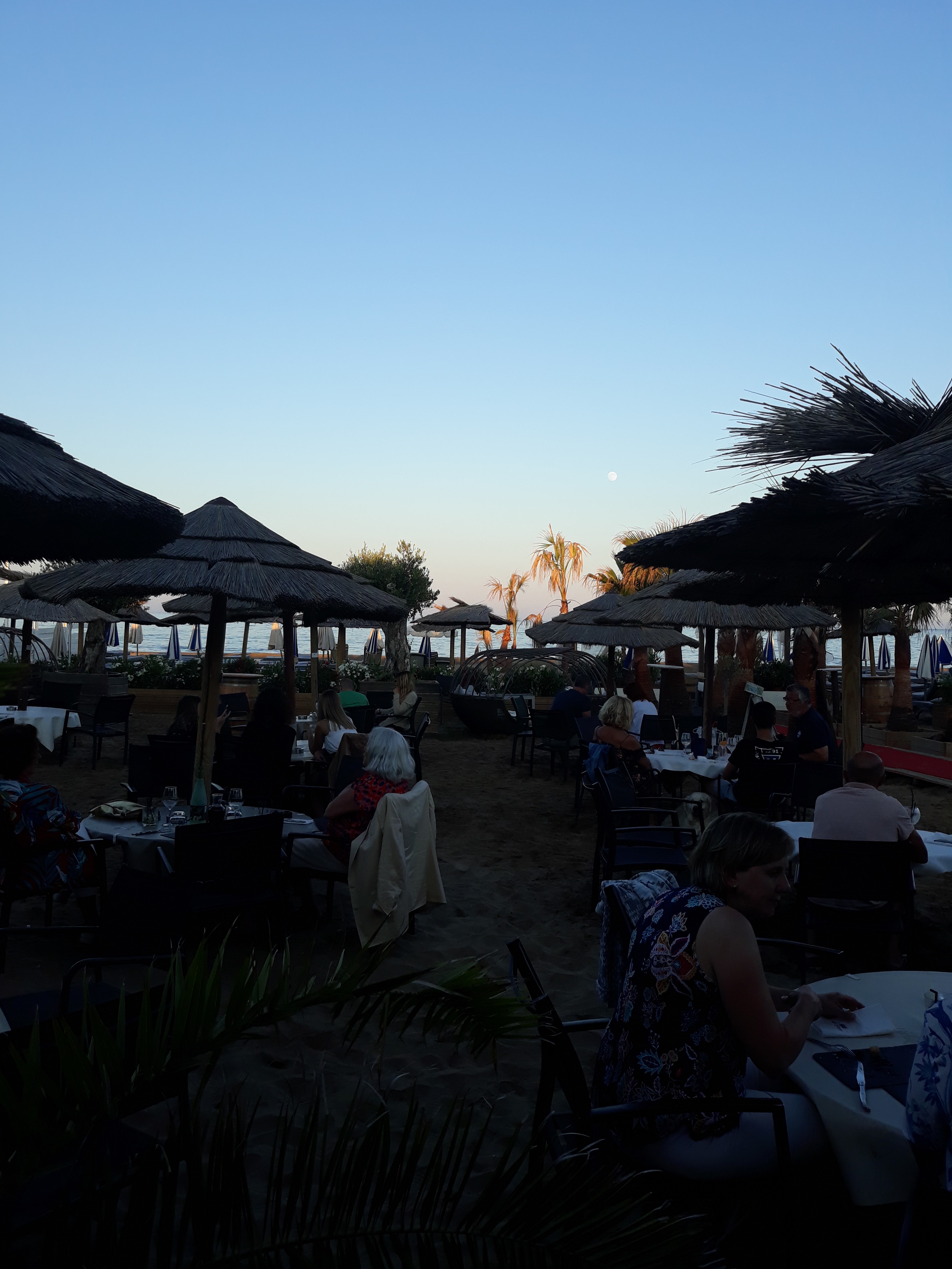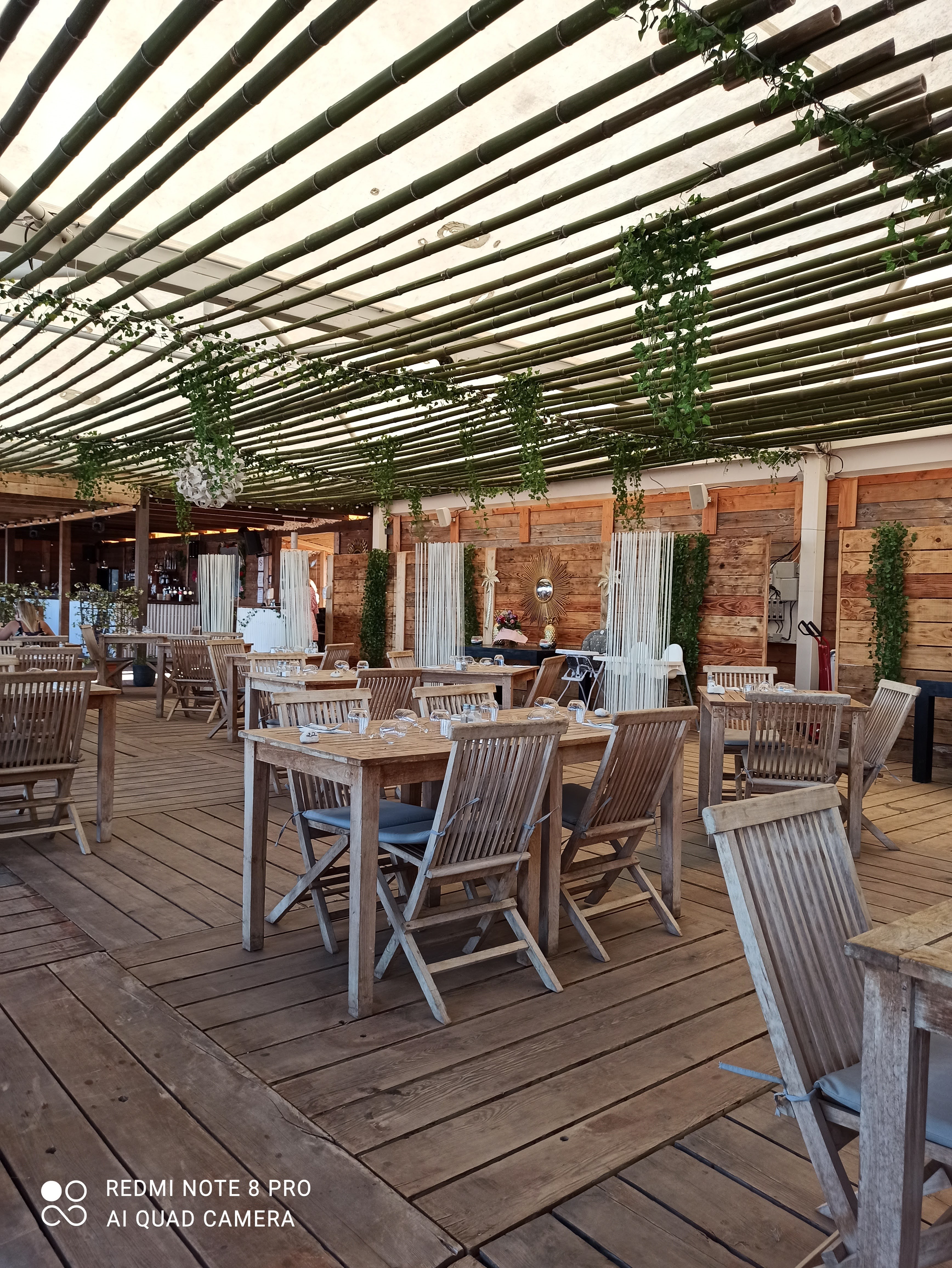 Manger les pieds dans le sable un pur bonheur... tres bonne ambiance Et une jeune serveuse adorable par sa gentillesse et qui nous a confié (où pouvoir acheter) les memes chaussures qu elle.... des baskets Guess merci à elle 😉