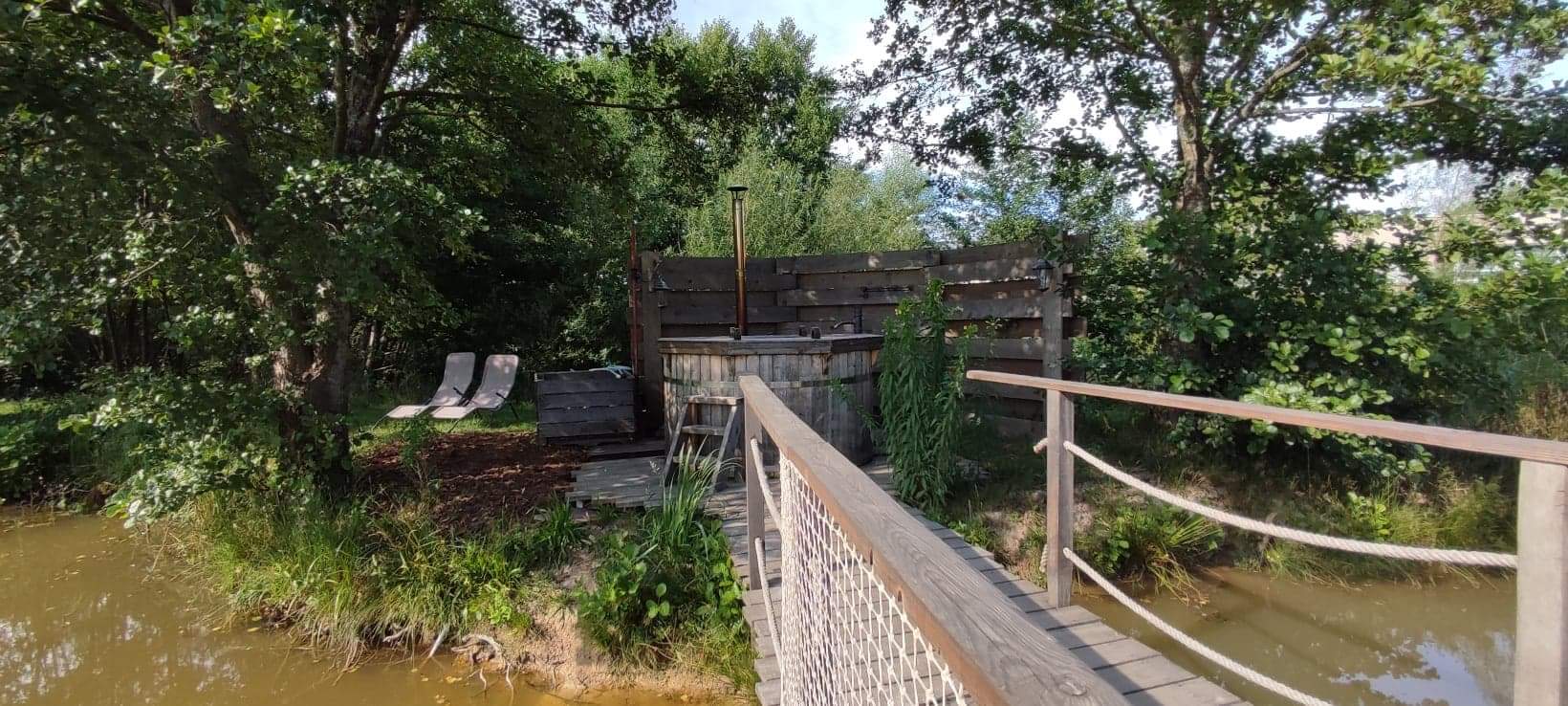 Un lieu à l image des propriétaires, unique. Un havre de paix, avec un lieu de couchage au calme, avec son bain nordique privé. Un terrain de pétanque, des chevaux, des pédalos pour naviguer sur l étang… un dîner digne d un resto haut de gamme dans la petit kota grill, un petit dej déposé devant notre kota de nuit… juste dépaysant et ressourçant!