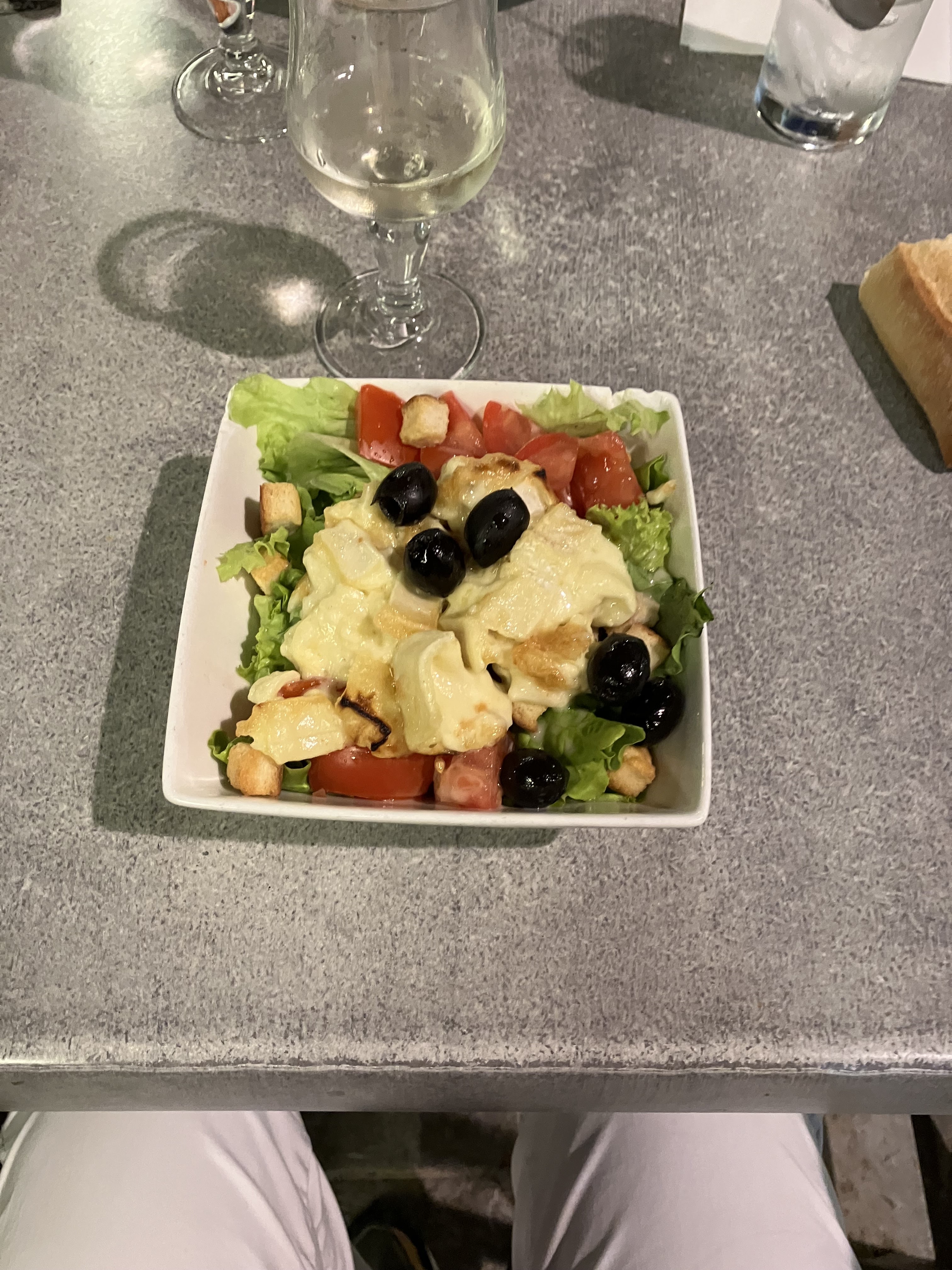 Fuyeeeez !!! J'aurai du regarder les avis avant de manger la bas !!! J'ai commandé une salade de chèvre chaud à 13e80, la serveuse me dit qu'elle est copieuse, voilà la composition : - salade - 4 olives - du fromage (j'avais bien l'impression que c'était du brie et non du chevre) - croûtons - et une sauce vinaigrette qui m'empêche de savoir si c'était vraiment du brie ou du chèvre ! J'ai commandé des frites elles étaient pas bonne, limite trop cuite. Et le pain avait l'air d'être de la veille !!!! Photo à l'appuie