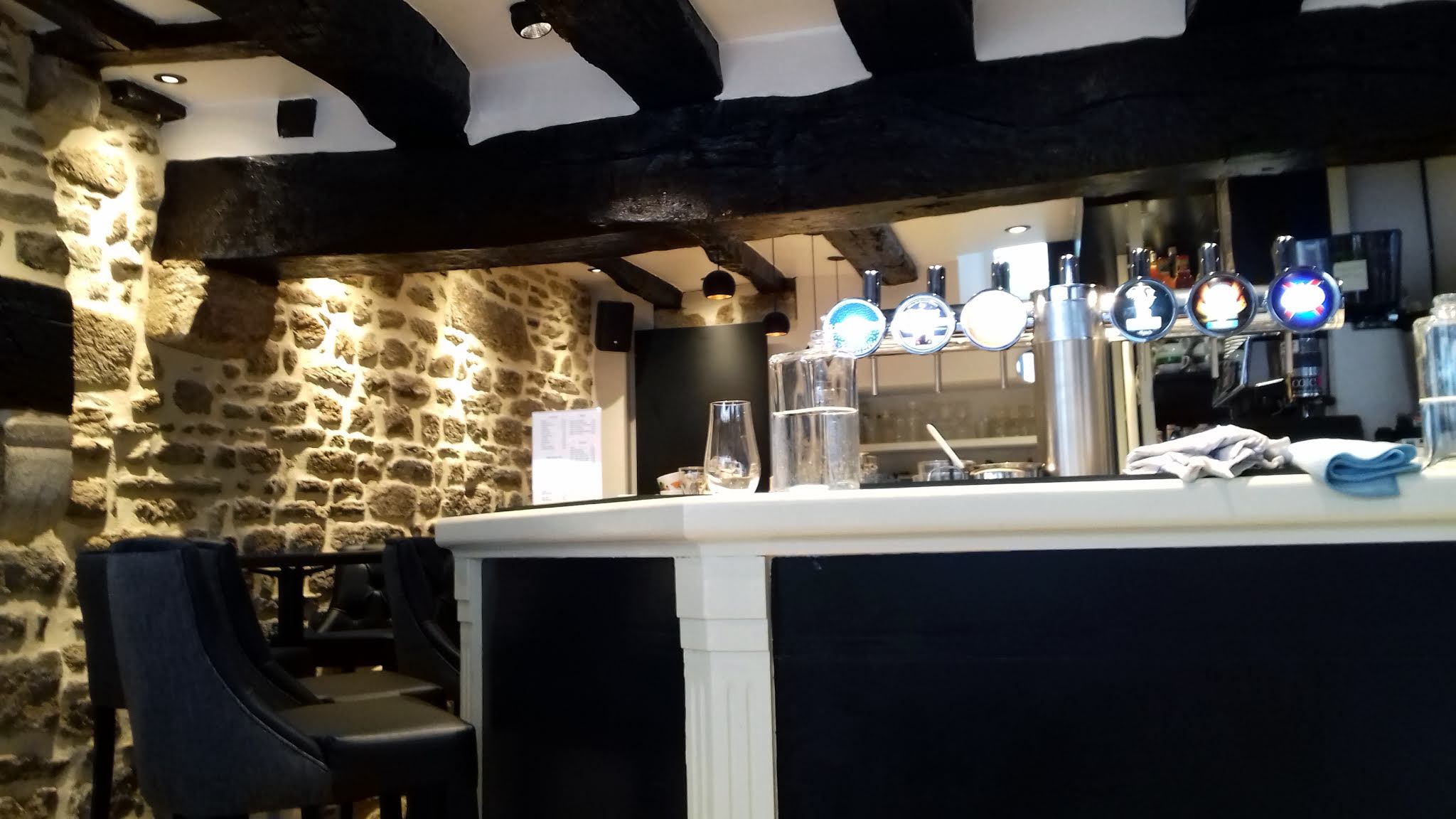 Bel endroit historique fraîchement rénové en respectant les vieilles pierres mais avec une touche moderne et lumineuse. Personnel très sympa et accueillant ; plats et boissons de qualité supérieure aux prix très raisonnables.