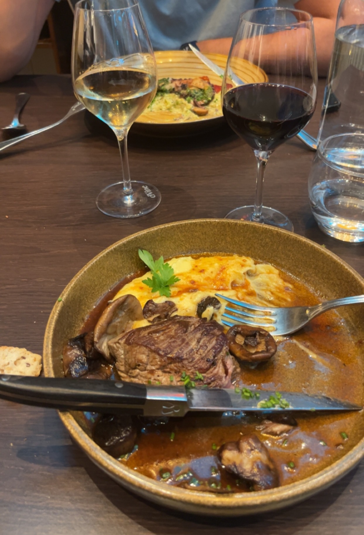 Tout était parfait , cadre , service , cuisine. Large choix de vins , et de plats je ne peux que recommander !