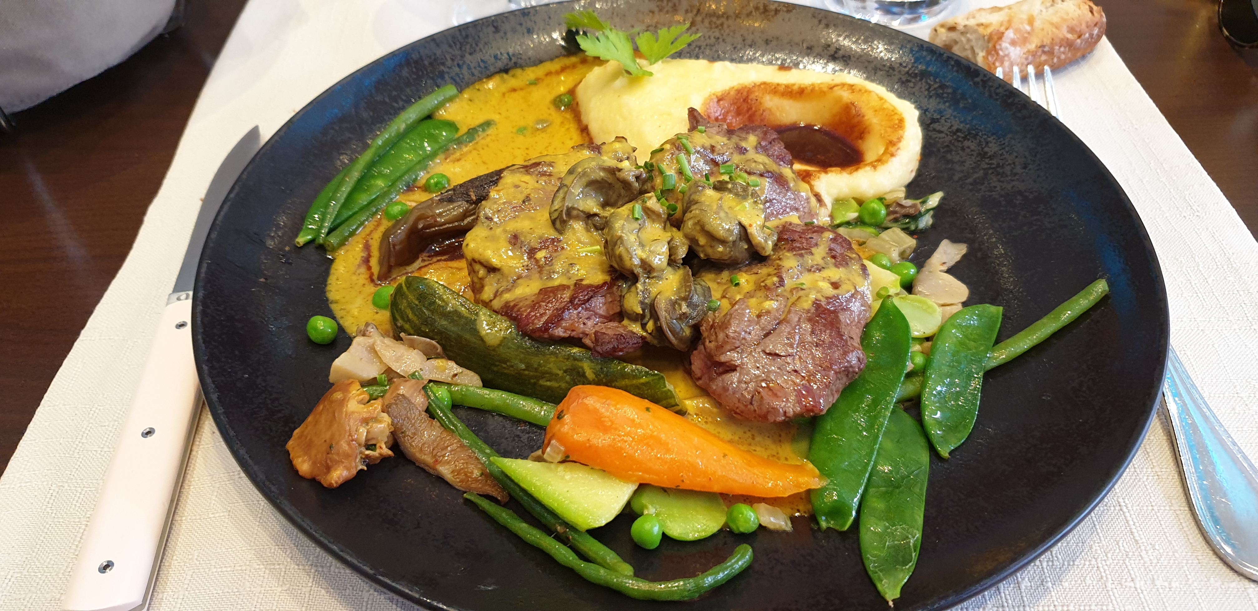 Plats excellents. A midi le menu offre de la grande cuisine alliant terroire et haute cuisine à prix accessible. Nous y reviendrons (Encore ! )