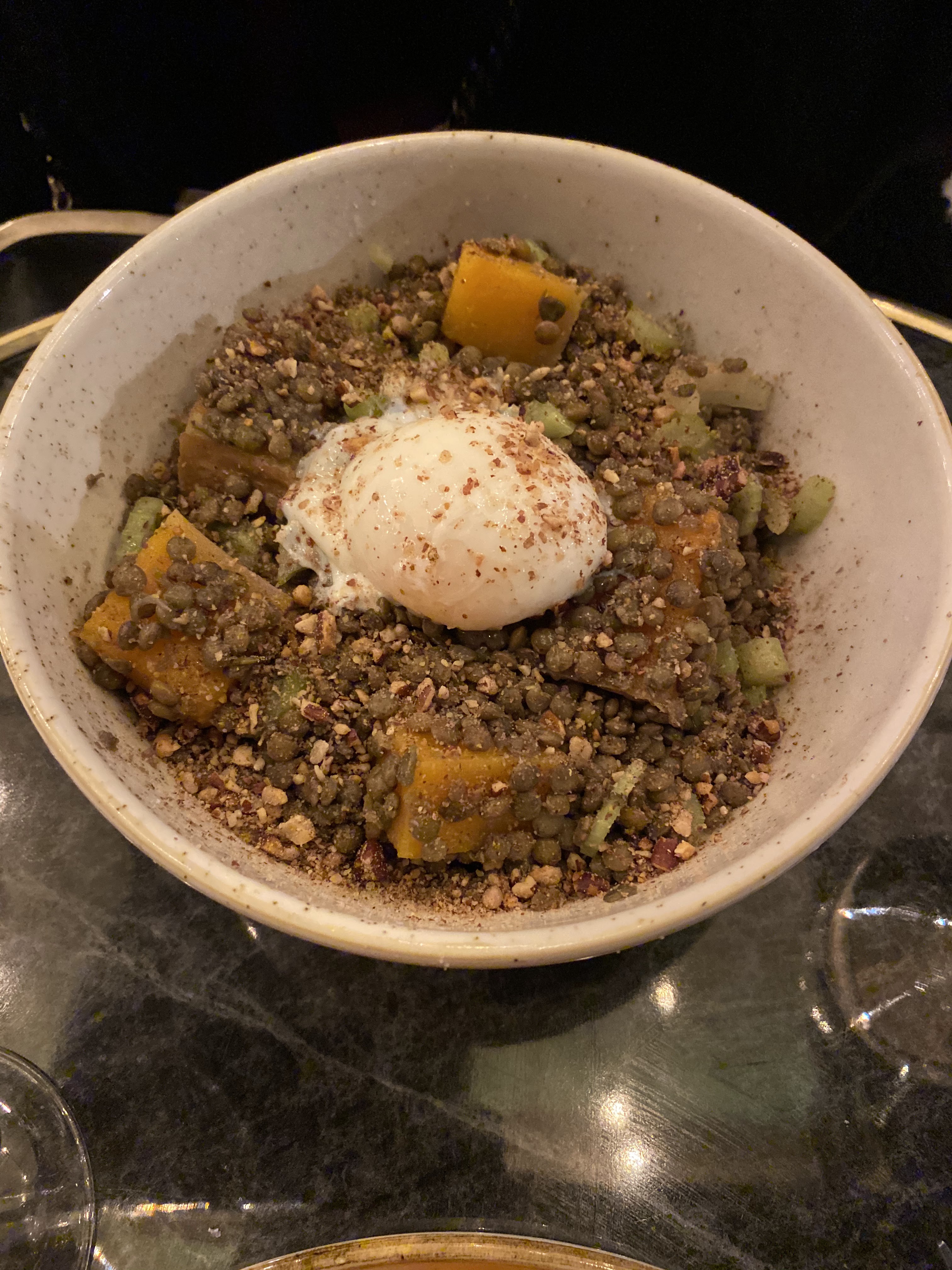 Tres belle salle qui leur vaut 2 points et 1 pour l accueil sympa . Côté assiette oubliez la salade de lentilles, 400 g trop farineuses avec quelques céleris branches et artichaut qui alourdissent ce plat qui manque de fraîcheur. Et pour 17 euros !! Le pris de 10 paquets de lentille ..On se moque du monde .