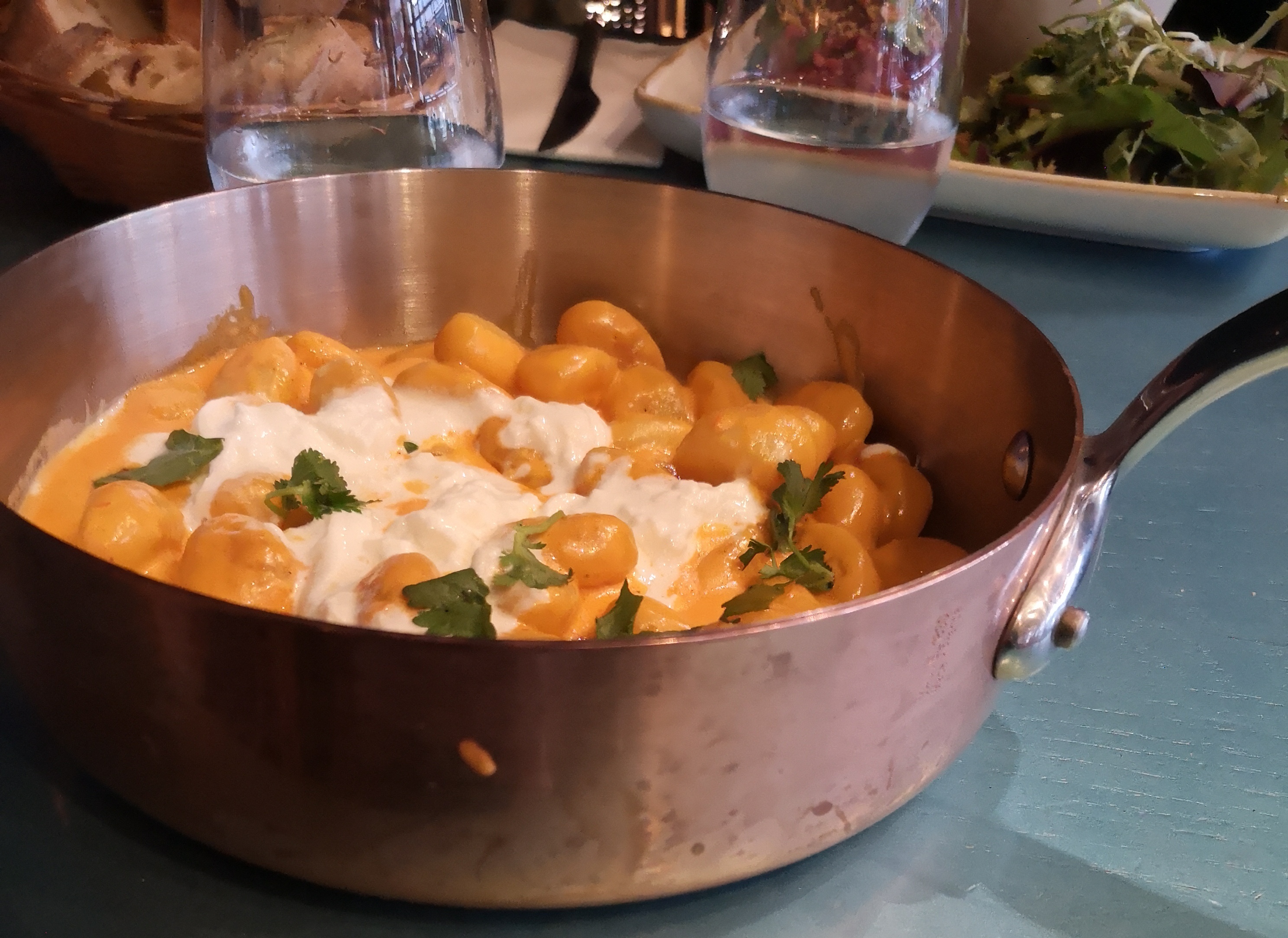 C'est un bel endroit, vitré et chic. Les prix suivent également, le plat du jour commence à 15,50 euros et le reste est plus cher. J'ai pris un plat de gnocchis mais je ne l'ai pas aimé. Très bourratif et pas bon