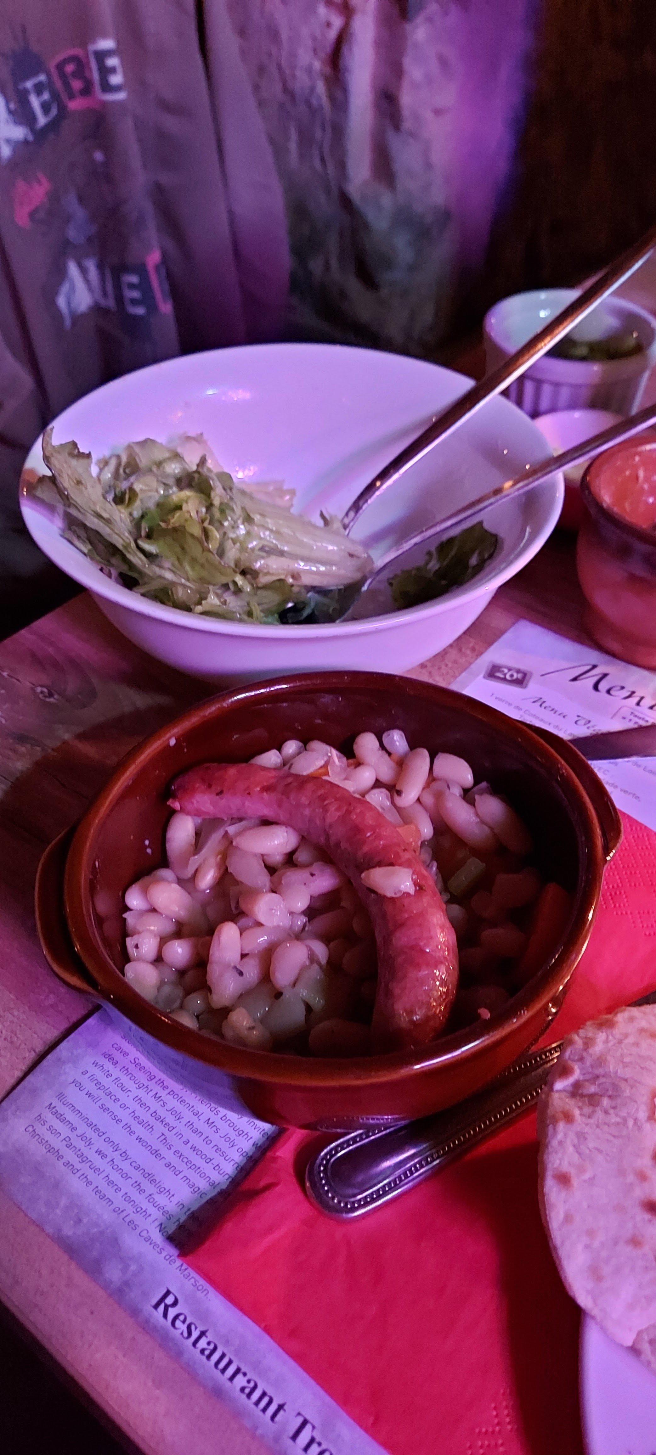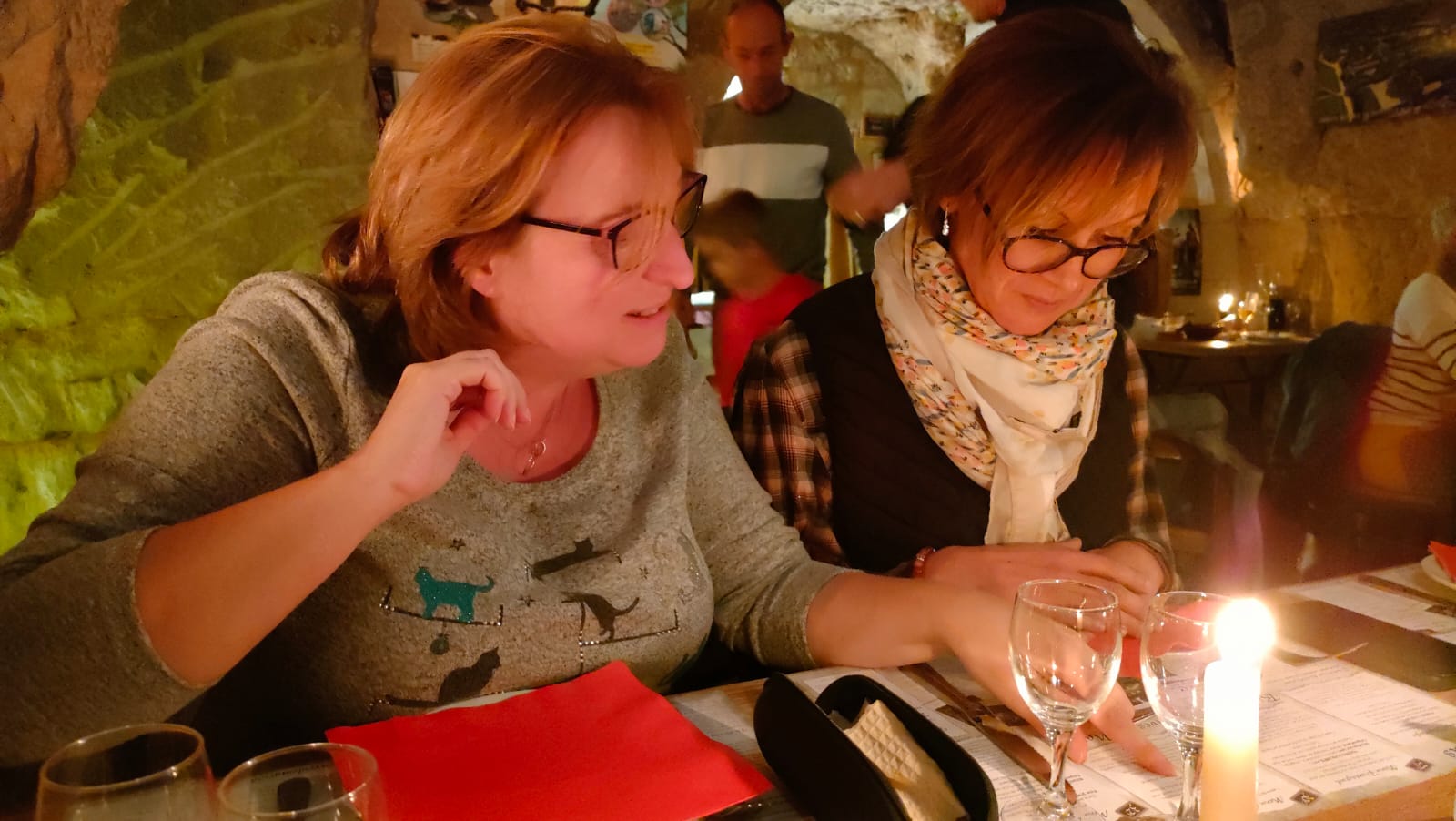 Cuisine familiale, locale et délicieuse servie avec bonne humeur dans une cave troglodyte éclairée à la bougie. C'était super, merci beaucoup !