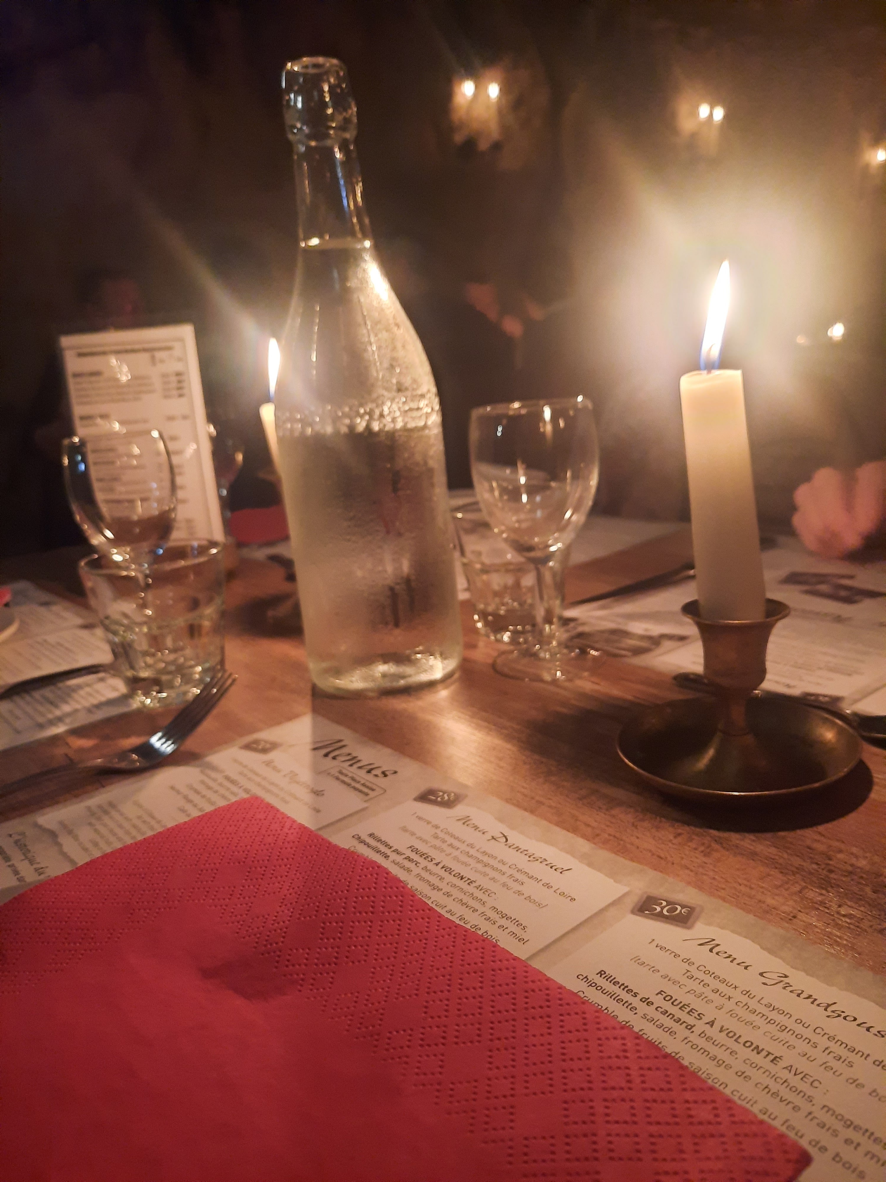 Cadre exceptionnelle, hors du temps, éclairé à la bougie pour manger de délicieuses fouées ! Il y en a même pour les végétariens (une délicieuse ratatouille). A recommander!