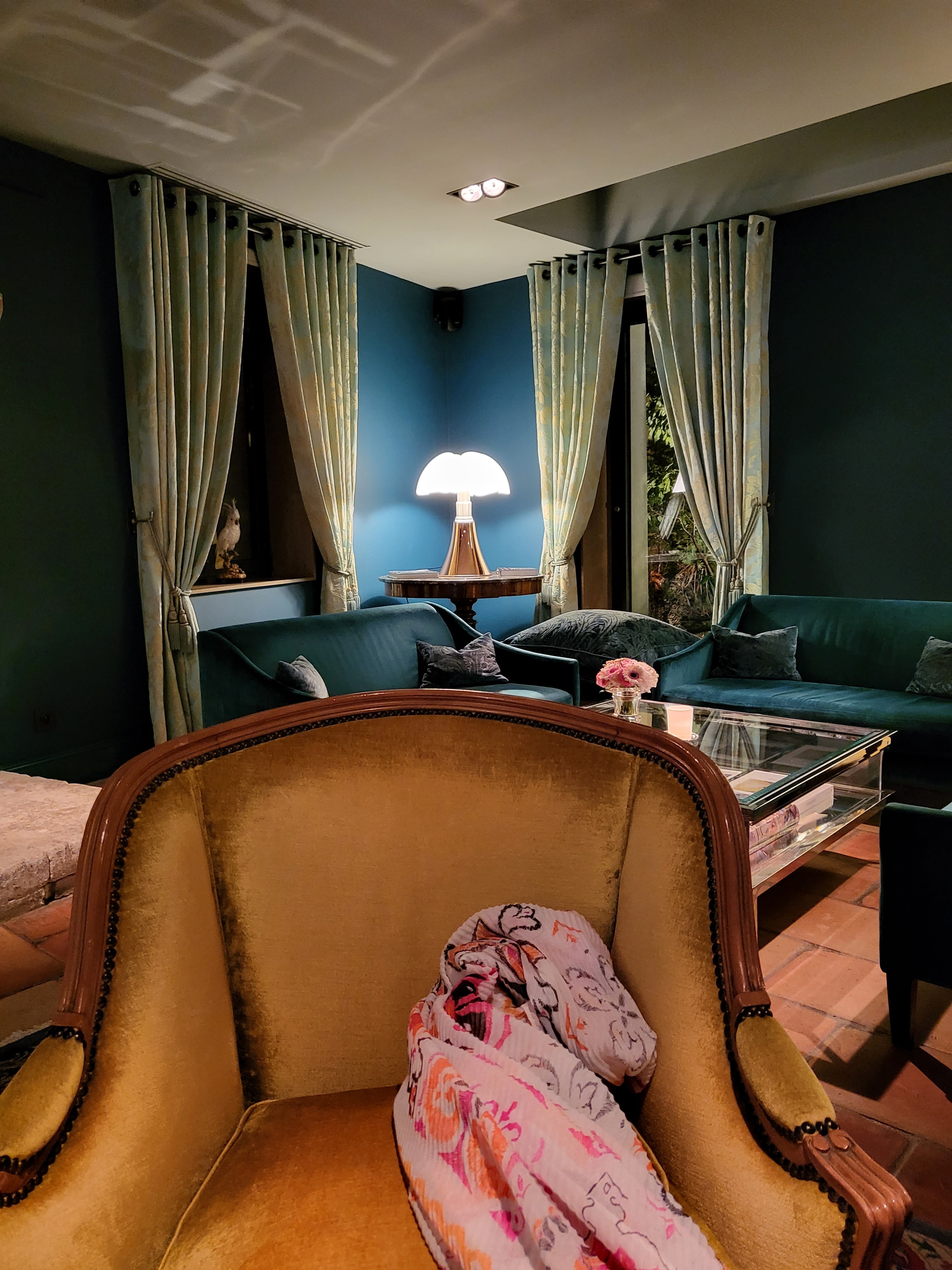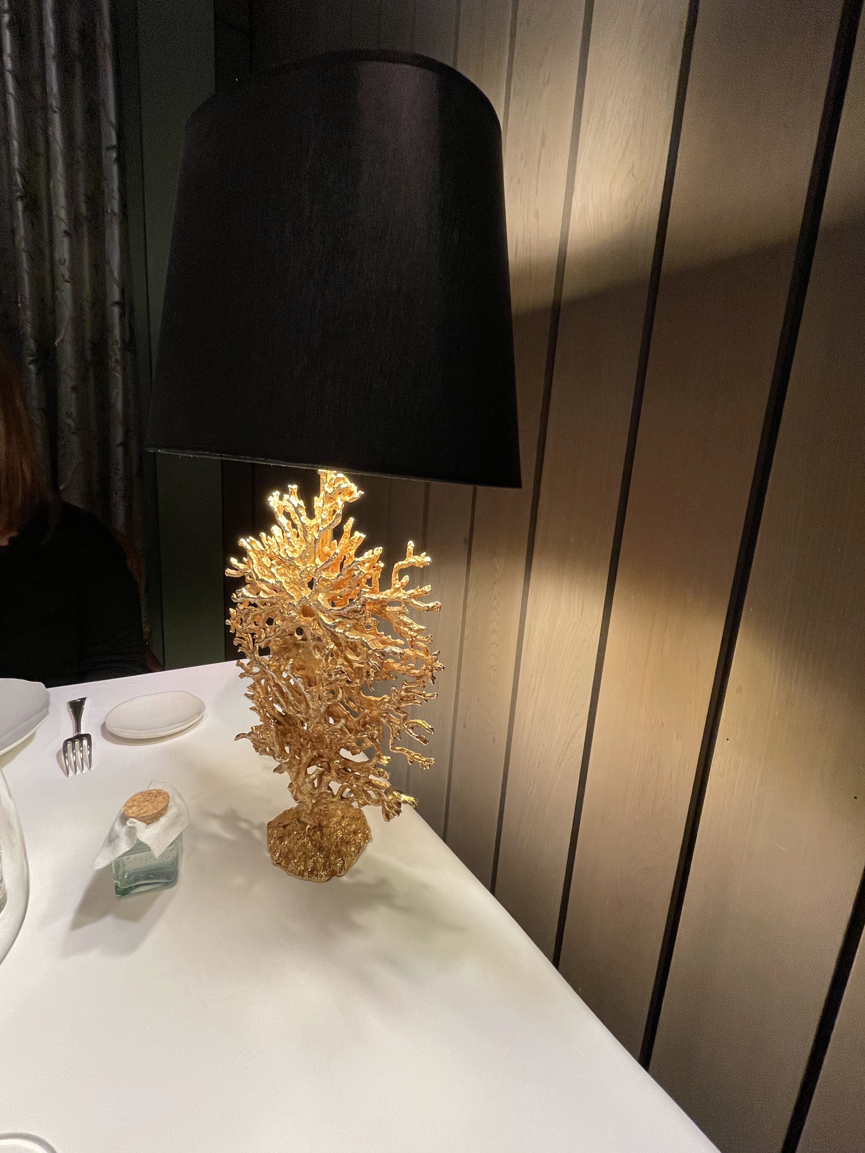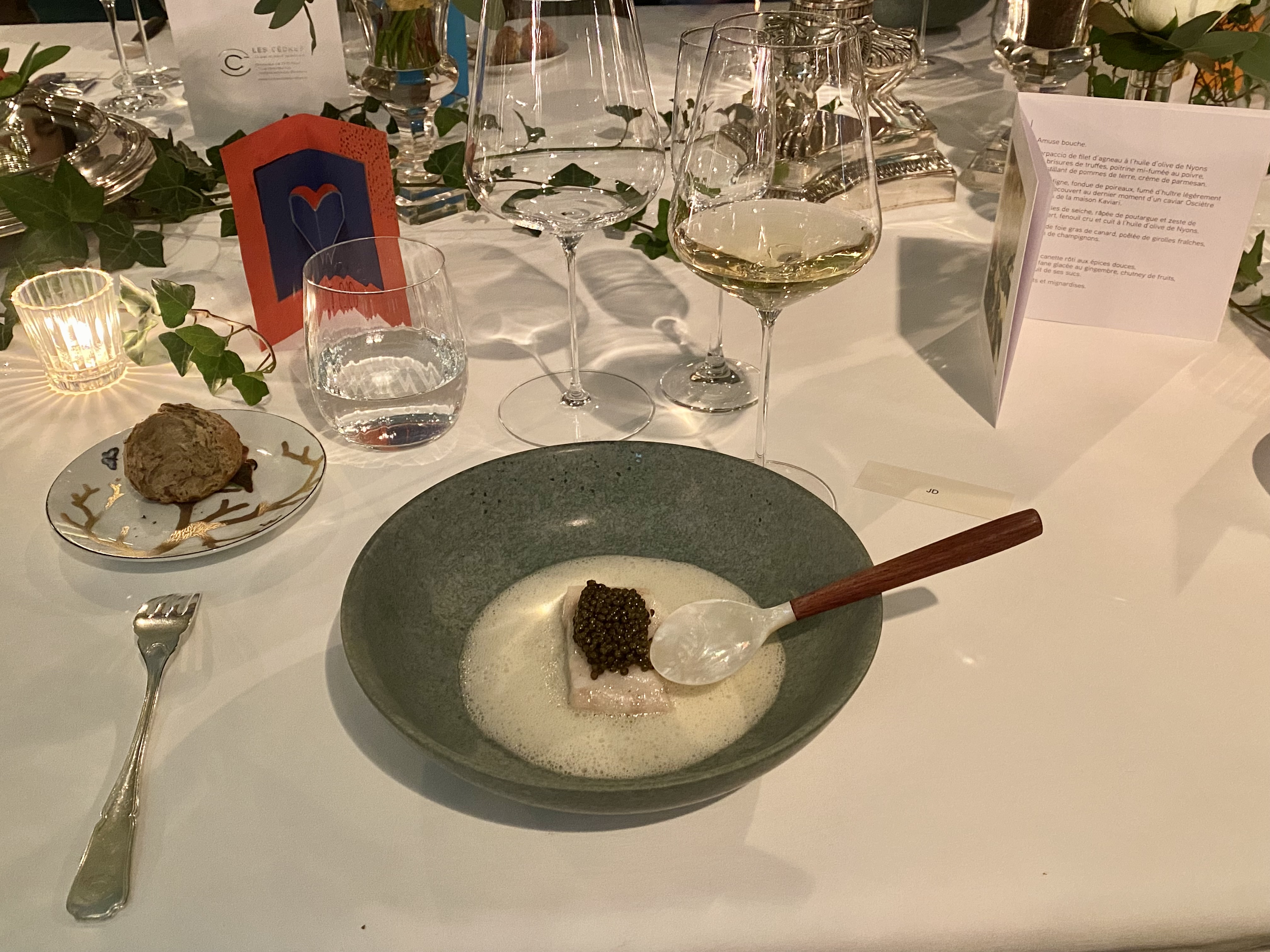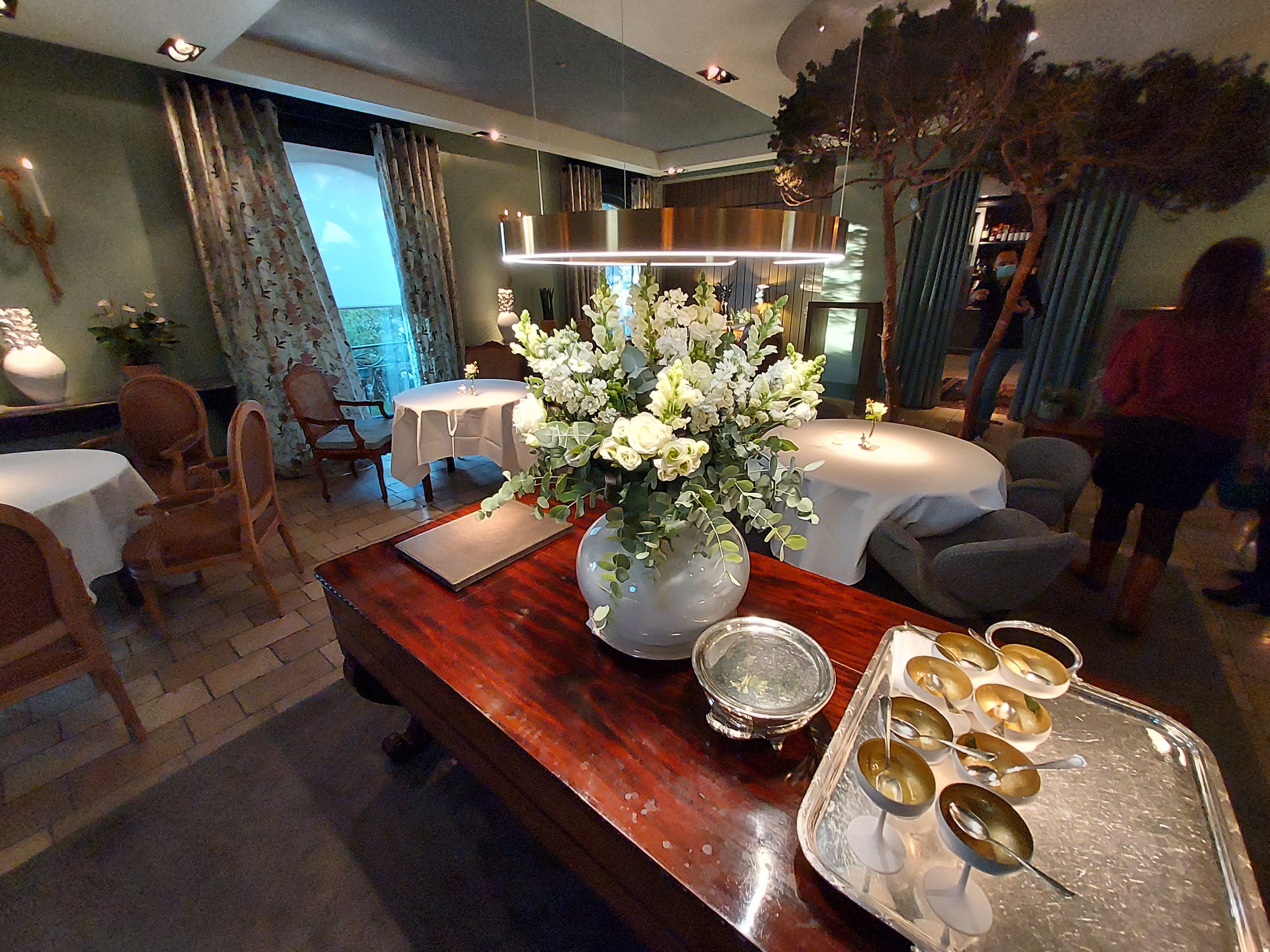 Déjeuner familial inoubliable dans un salon privatisé, l’orangerie… Véritable écrin de verdure à l’extérieur, décoration chaleureuse et feutrée à l’intérieur, table magnifiquement dressée, vaisselle en porcelaine superbe, cuisine recherchée, raffinée et savoureuse, le tout orchestré par un personnel au top 👌 Voir absolument les bougies bleues dans la cheminée, une sculpture en live !