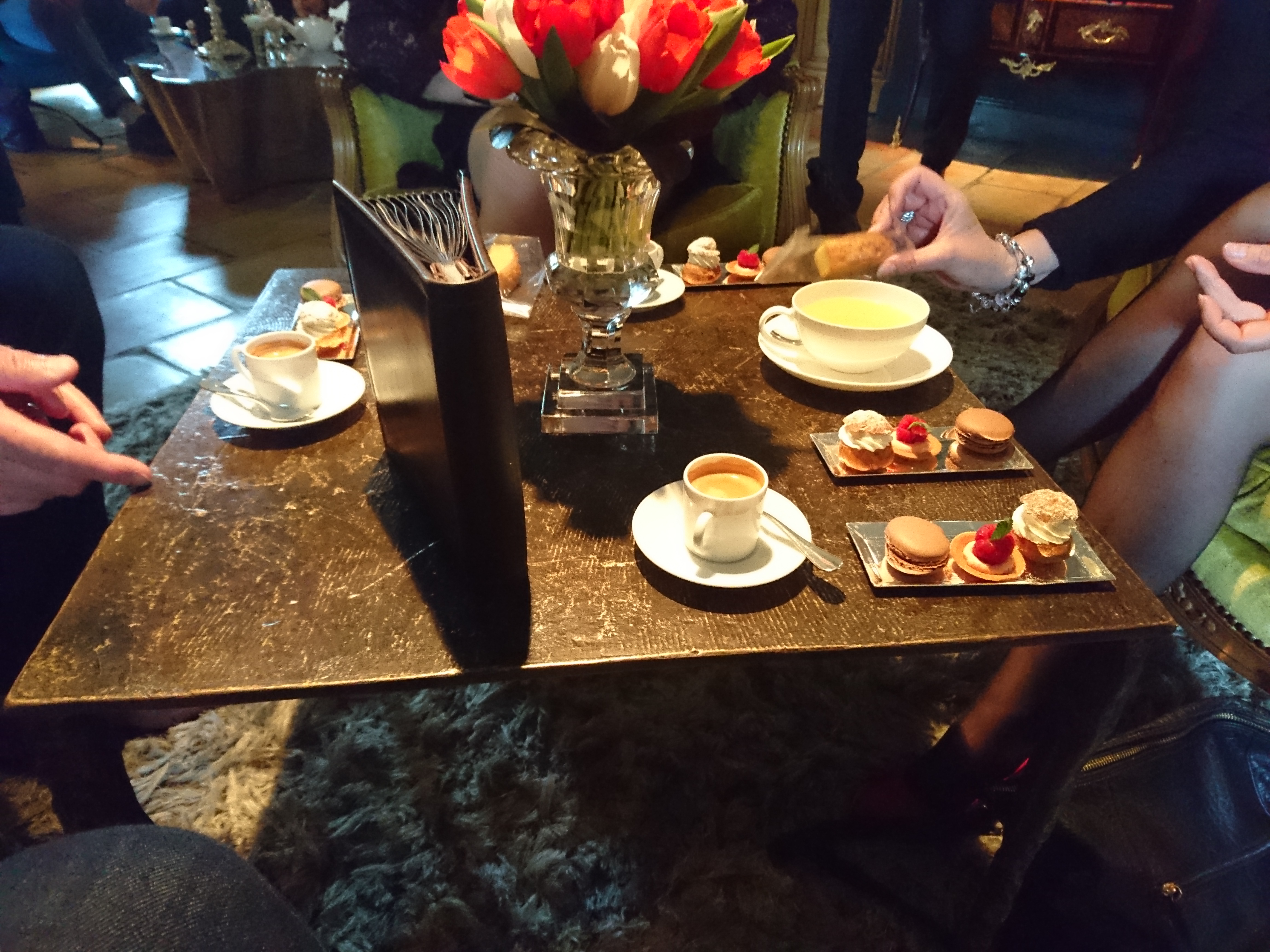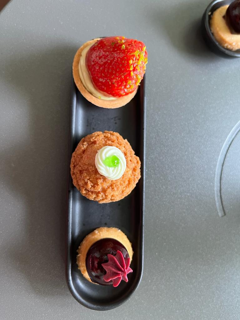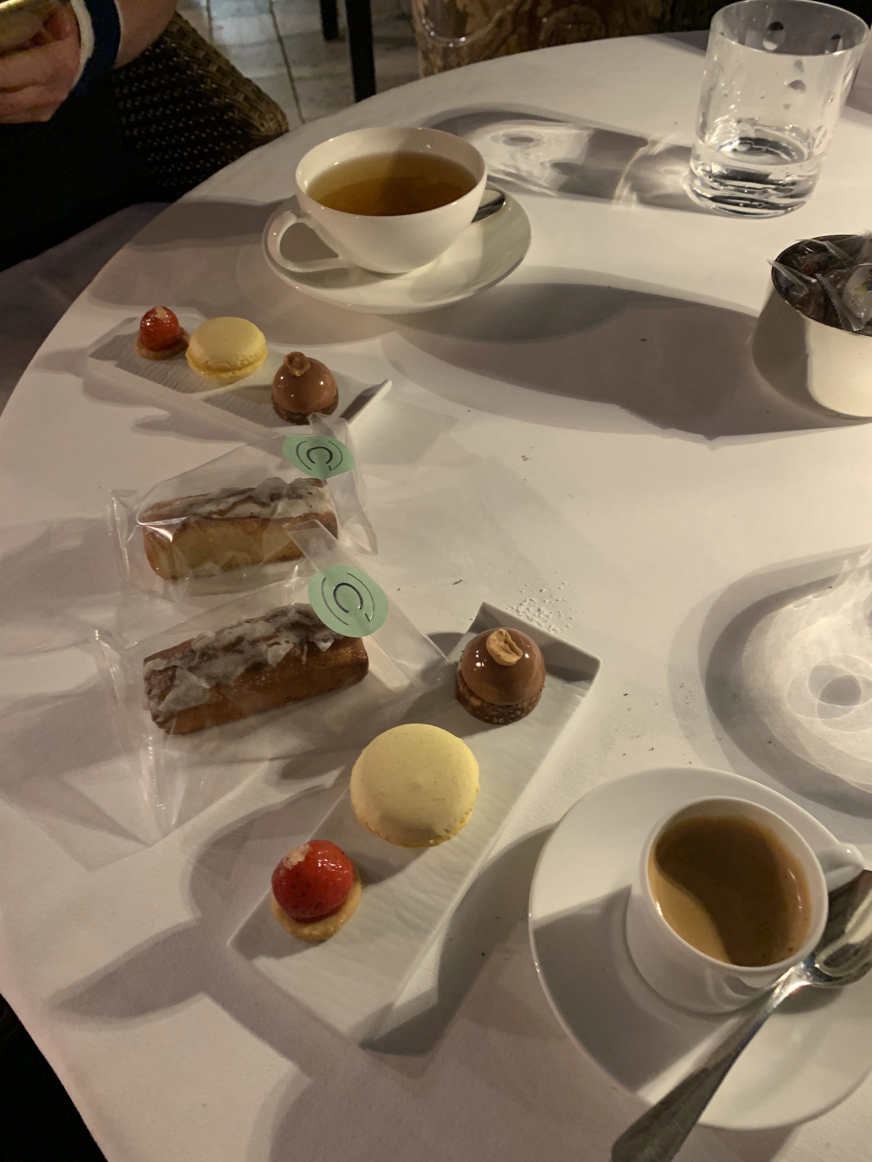 Dans lieu élégant et feutré, nous sommes accueillis et accompagnés. Le service est discret et attentionné Nous sommes tout à fait enchantés de ce voyage gastronomique jusqu’à l’arrivée des desserts. Il y a peu de finesse dans ces mignardises trop sucrées à notre goût et trop de sel dans la coupe de mousse. Dommage