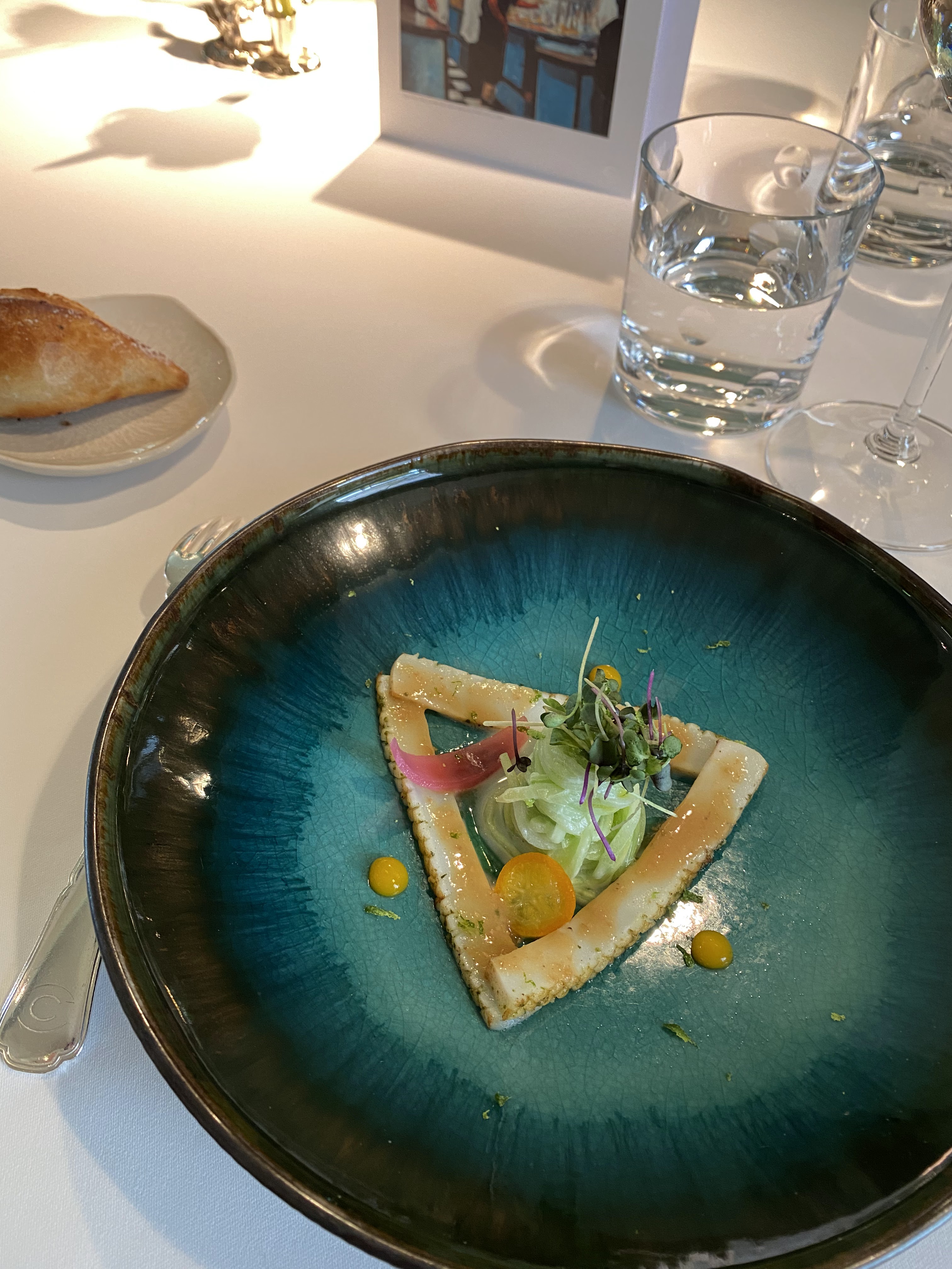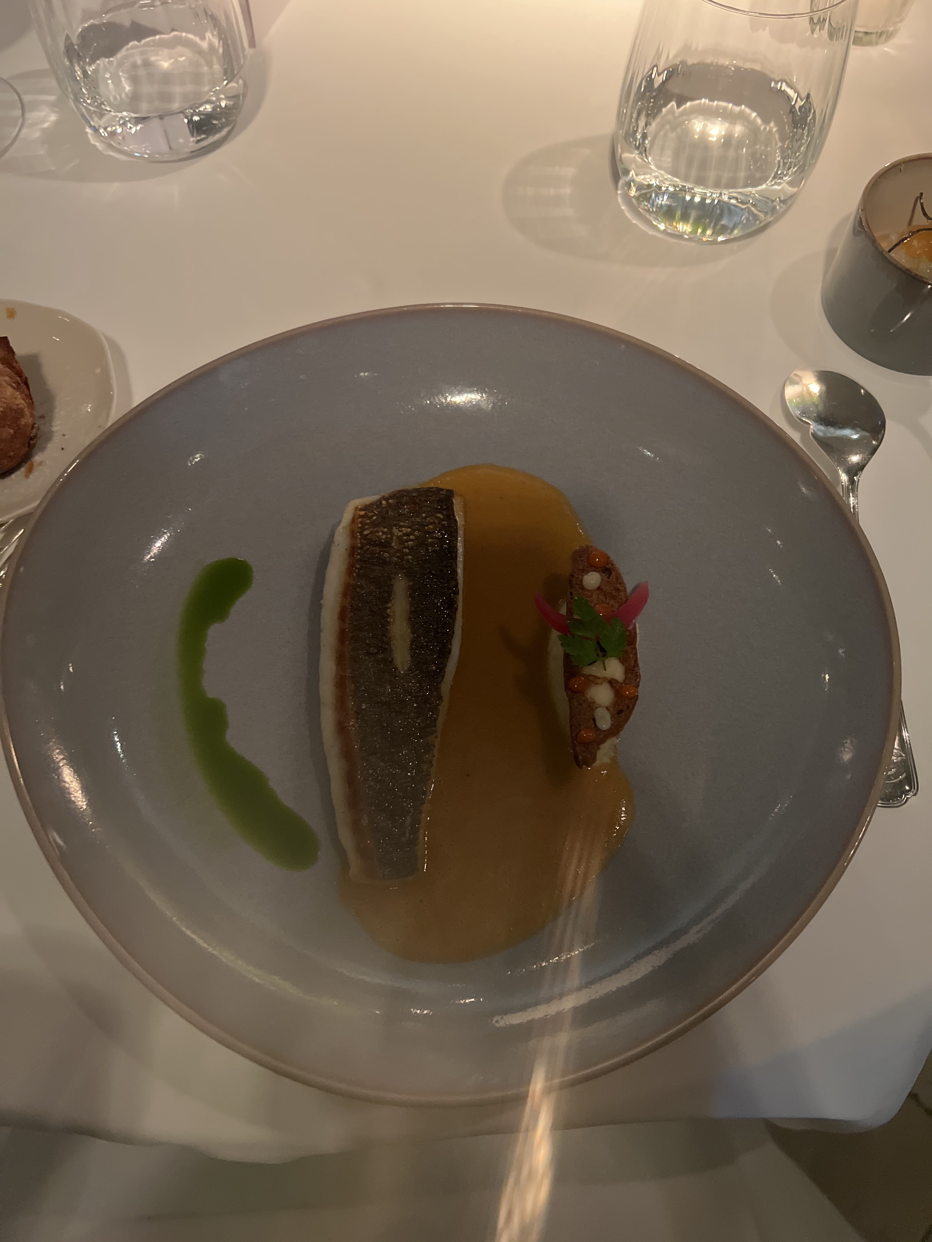 Tout est parfait.du début à la fin.une renommée non usurpée. Jamais déçus.que ce soit le choix des plats.des vins..On aime y revenir.la cuisson des poissons est parfaite.les 3 mini amuse bouche étaient de belles découvertes et le petit sorbet à la sarriette désaltérant et inattendu..oublié de le prendre en photo ainsi que les 3 amies bouche..de la recherche de la diversité.on peut y aller les yeux fermés en toute confiance