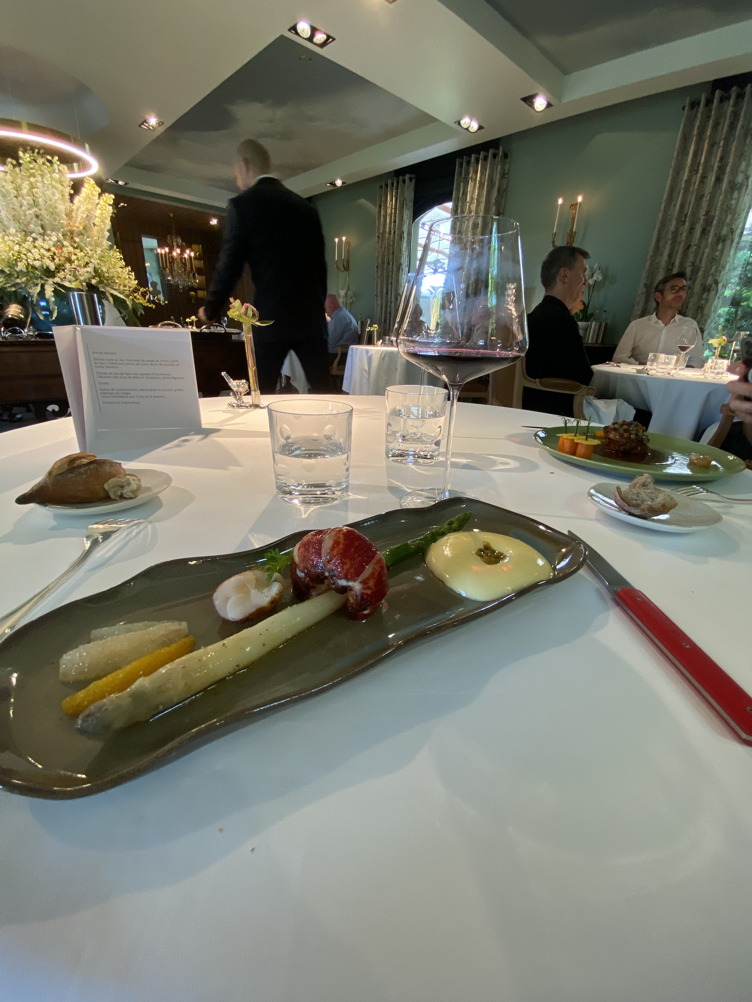 Lieu magique .. cuisine exceptionnelle. .se sentir poser sur un nuage et se laisser mener au fil des plats tous au tant succulents Un maître d'hôtel ..un sommelier ...des serveurs qui vous font saliver juste à l'intitulé des plats ou des vins Lieu que tout le monde ne peut s'offrir certes...mais quand on a la chance de vivre une telle expérience. .il faut la savourer à chaque minute passée dans ce lieu superbe