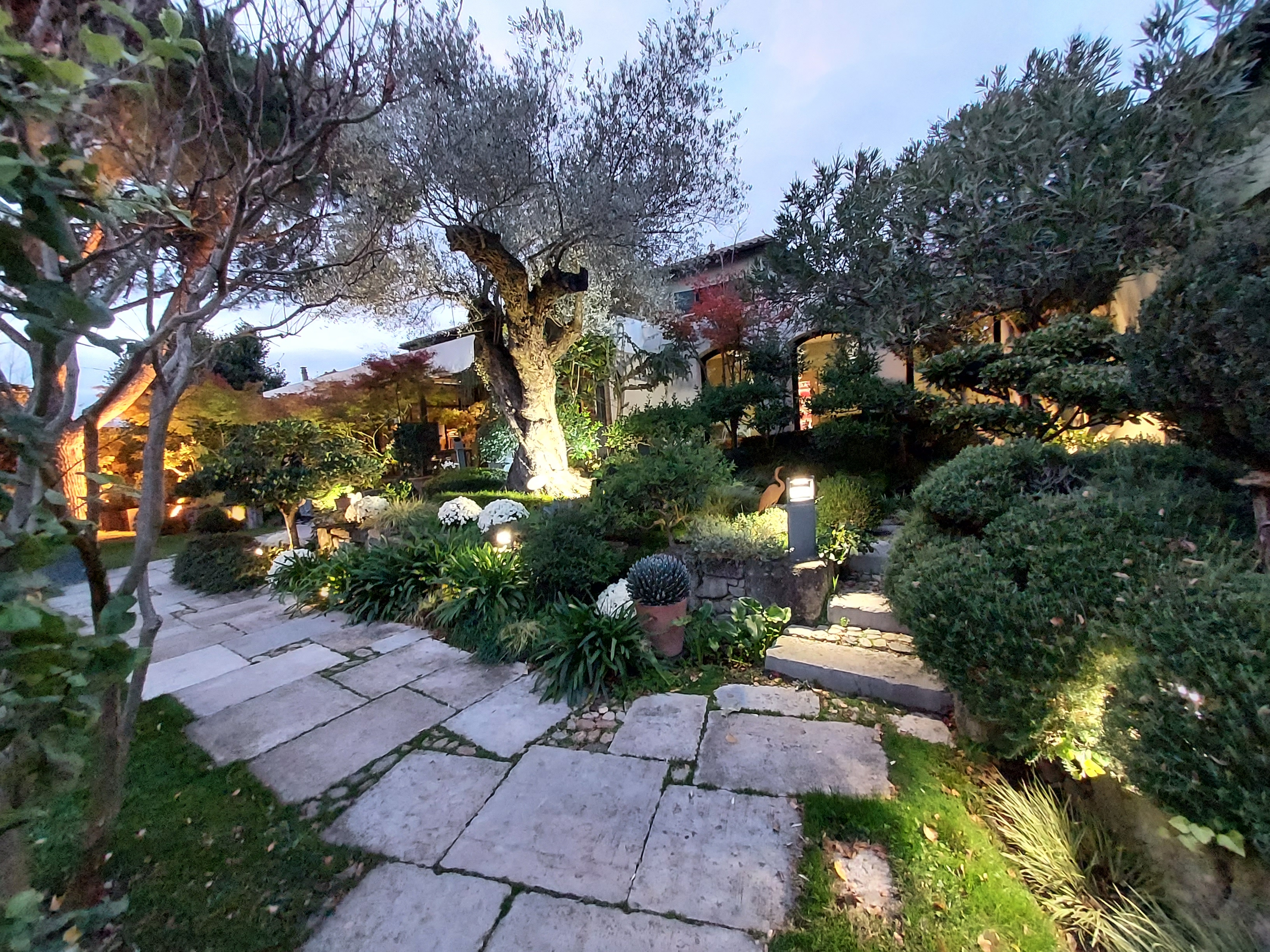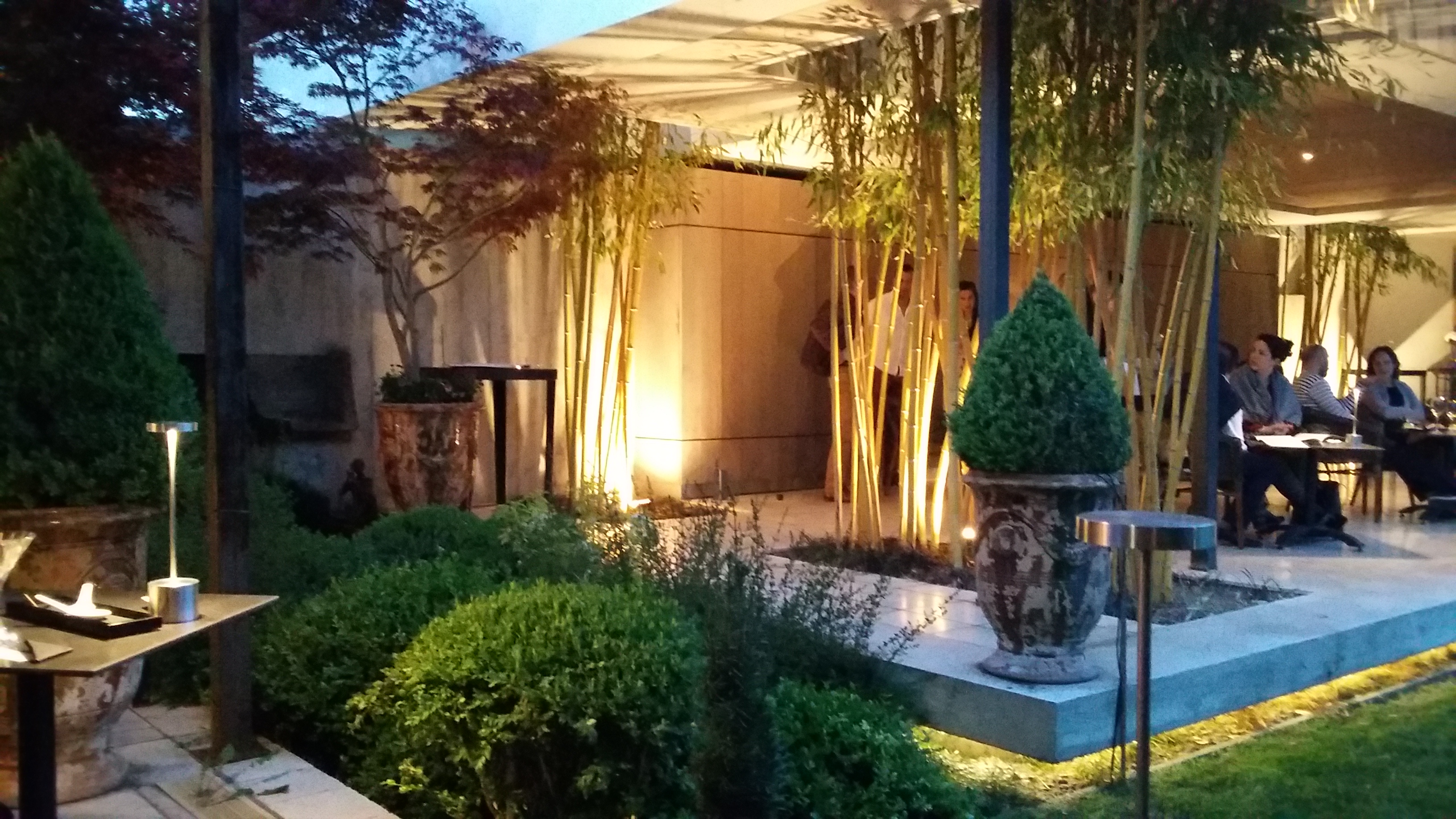 Jardin magnifique, plats délicieux ponctués d'entremets raffinés La cuisine proposée est nuancée de saveurs asiatiques, et ça marche !