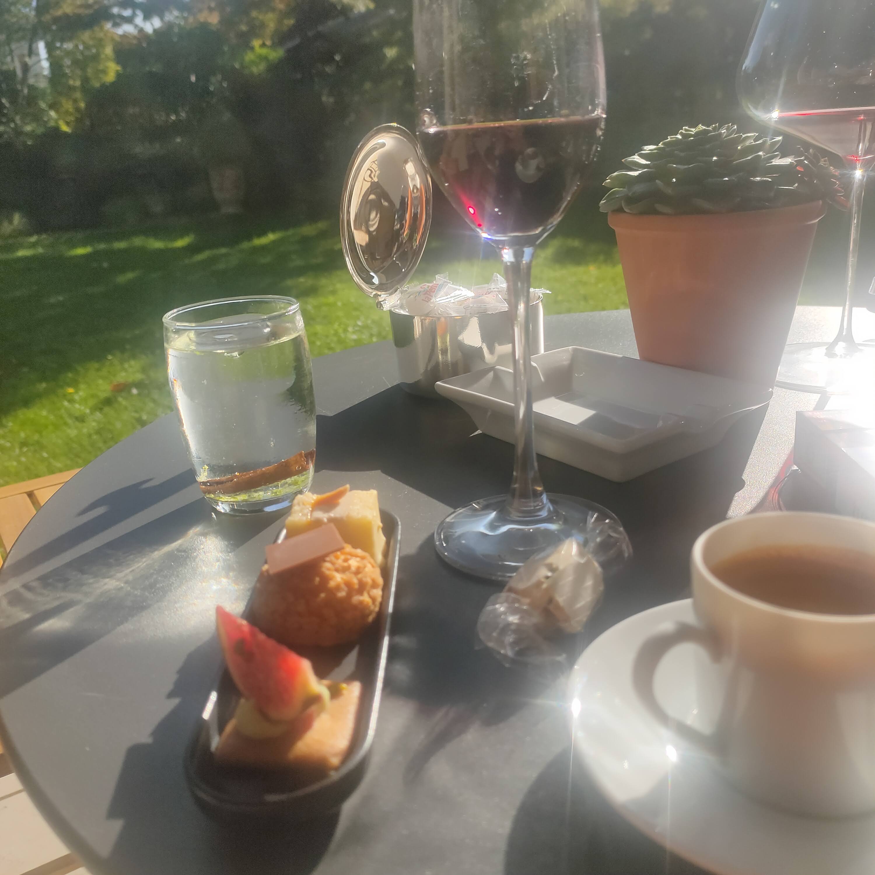 Un moment extraordinaire et inoubliable du début à la fin! Un cadre magnifique, une cuisine délicieuse et un service très attentionné ! Menu découverte en amoureux. L apothéose du repas: déguster des miniardises dans le jardin en écoutant une musique parfaite dans une chaise longue, avec un plaid déposé avec soin sur mes épaules pour que je n attrape pas froid. Un très grand Merci! Au total: un rêve éveillé !! À faire au moins une fois dans sa vie !
