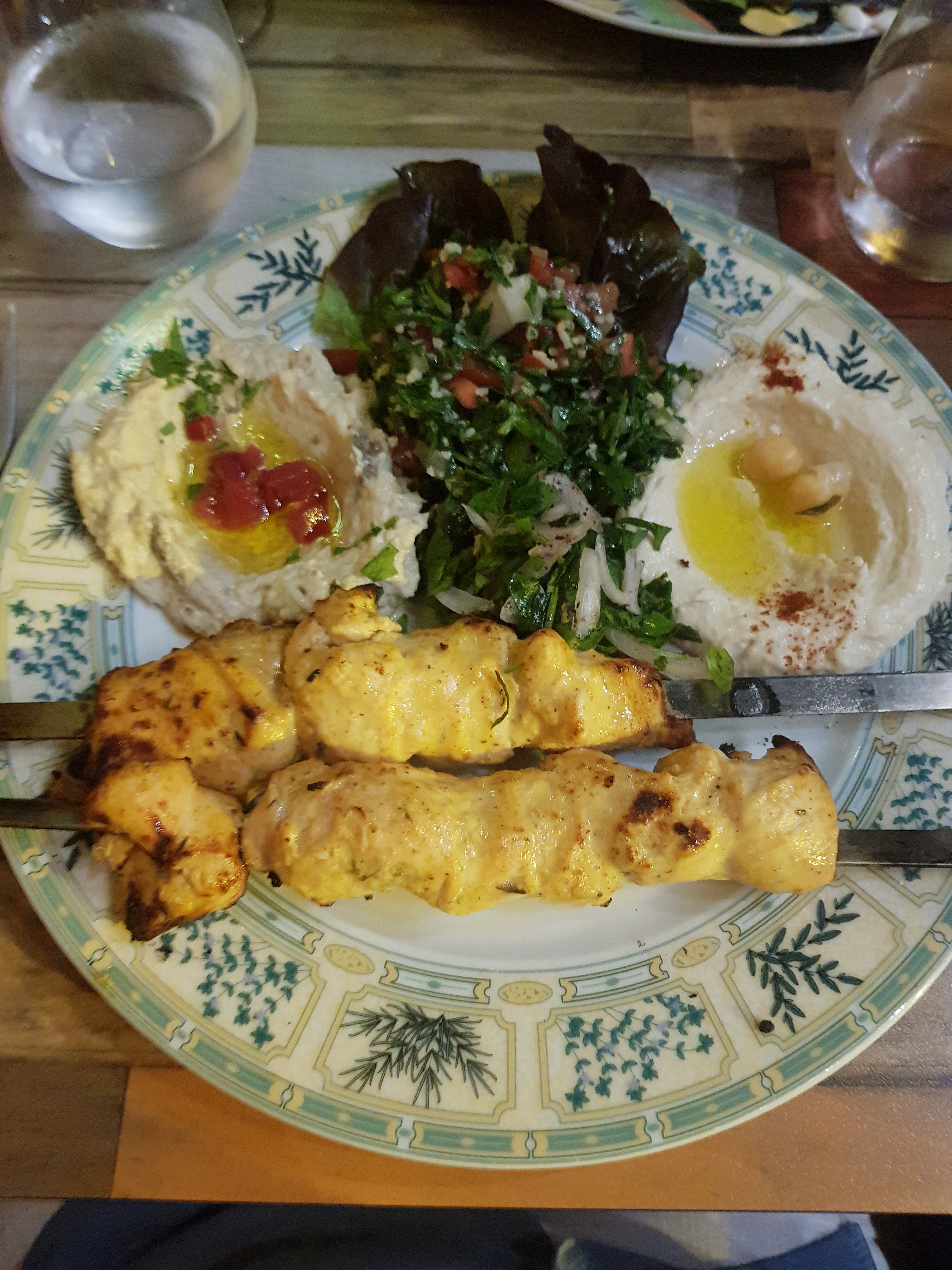 Le gérant qui m'a servi avait de l'humour. J'ai choisi un menu végétarien avec trois entrées et trois mezzés. Le taboulé avait trop d'huile. L'houmous était très bon et le moutabal aussi. Les mezzés au fromage m'ont plu. Ceux à la feuille de vigne aussi. Les falafels étaient un peu trop épicés.