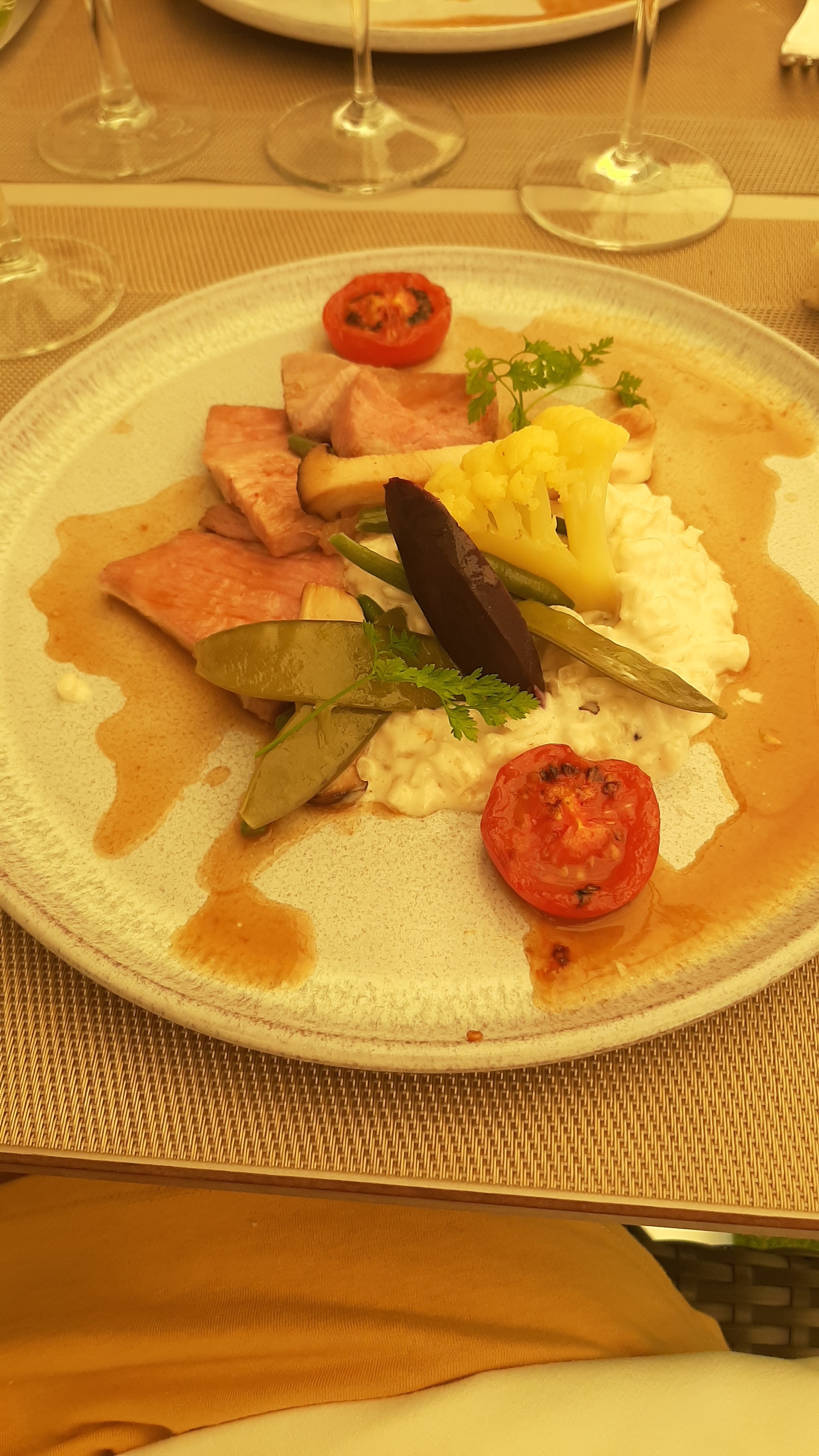 Plat chaud tiède parce que servi trop tôt avant d'être decloché... De notre faute évidemment ! Service toujours aussi froid, ton sec et sans amabilité comme par le passé. Je ne recommande plus ce restaurant. Dommage