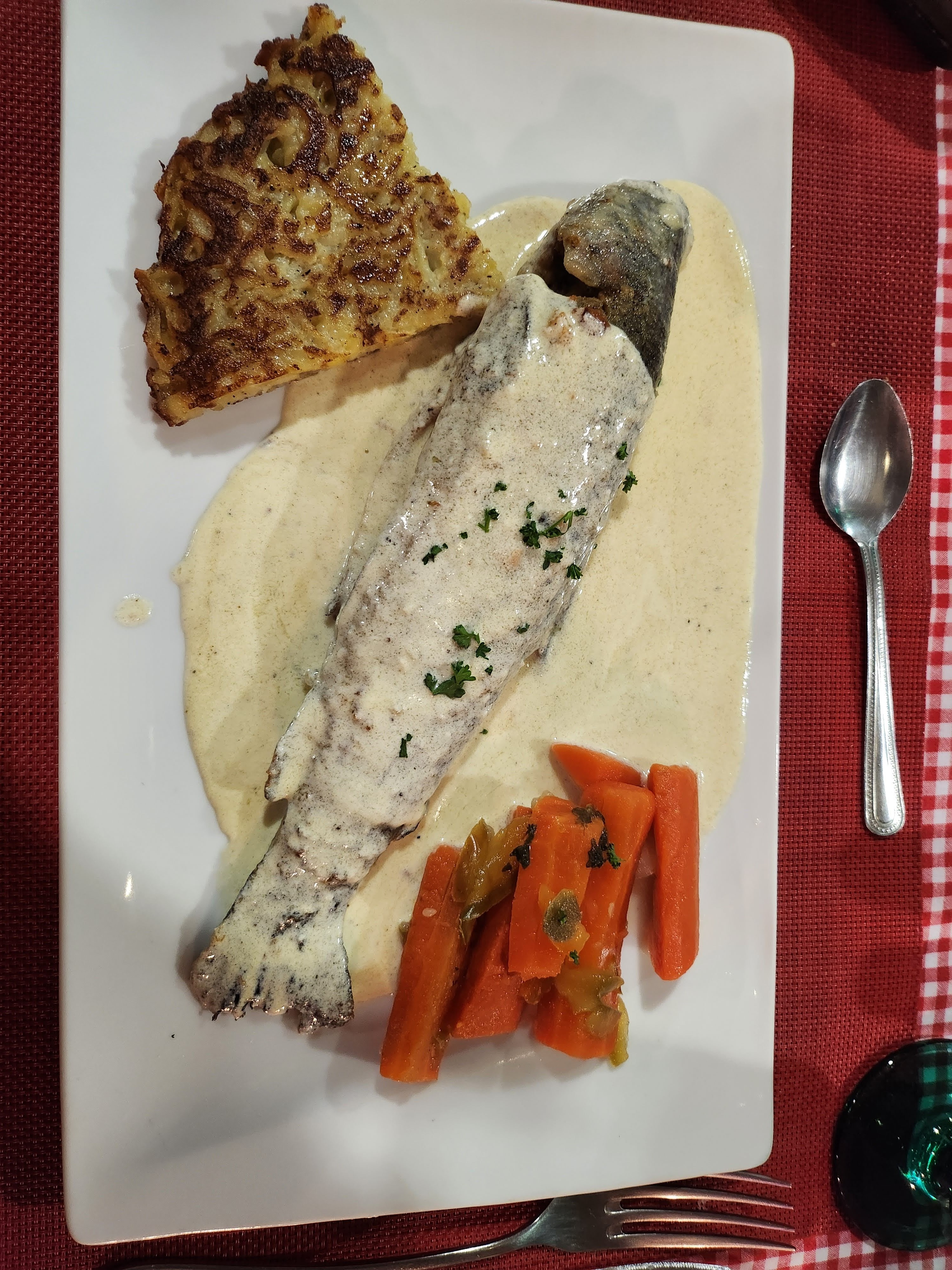 Repas très copieux, service agréable, la qualité ainsi que la quantité sont raisonnable pars rapport au prix. Je pense que des produits locaux sont utilisés et ça se sent. Plus petite balade de digestion après ce dîner, au top !