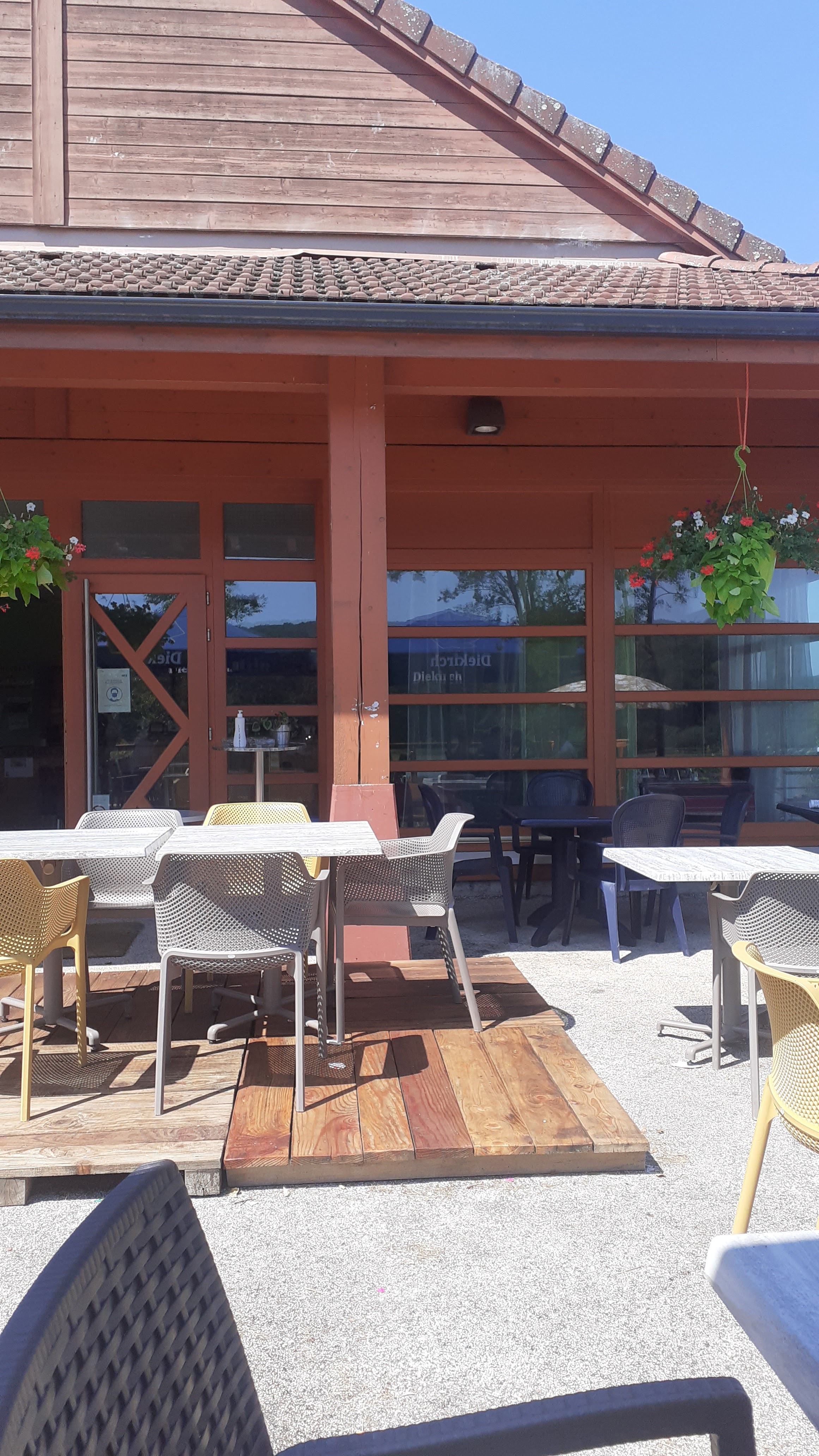 Très beau restaurant placé en bord de lac, calme et beau paysage. Patronne et serveuse très sympathique. Table de pique-nique à proximité et 2 jeux pour les enfants. Vraiment agréable