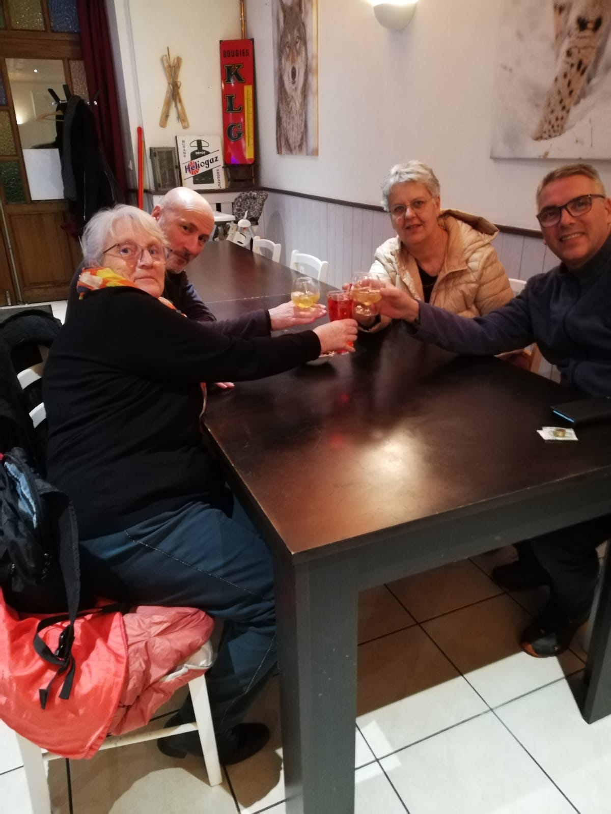 Gérants très sympathiques et souriants. Les pizzas emportées sont excellentes L'apéro prit sur place était top, avec UE ambiance sous le regard de superbe photo des animaux de la région (loup, lynx,...)