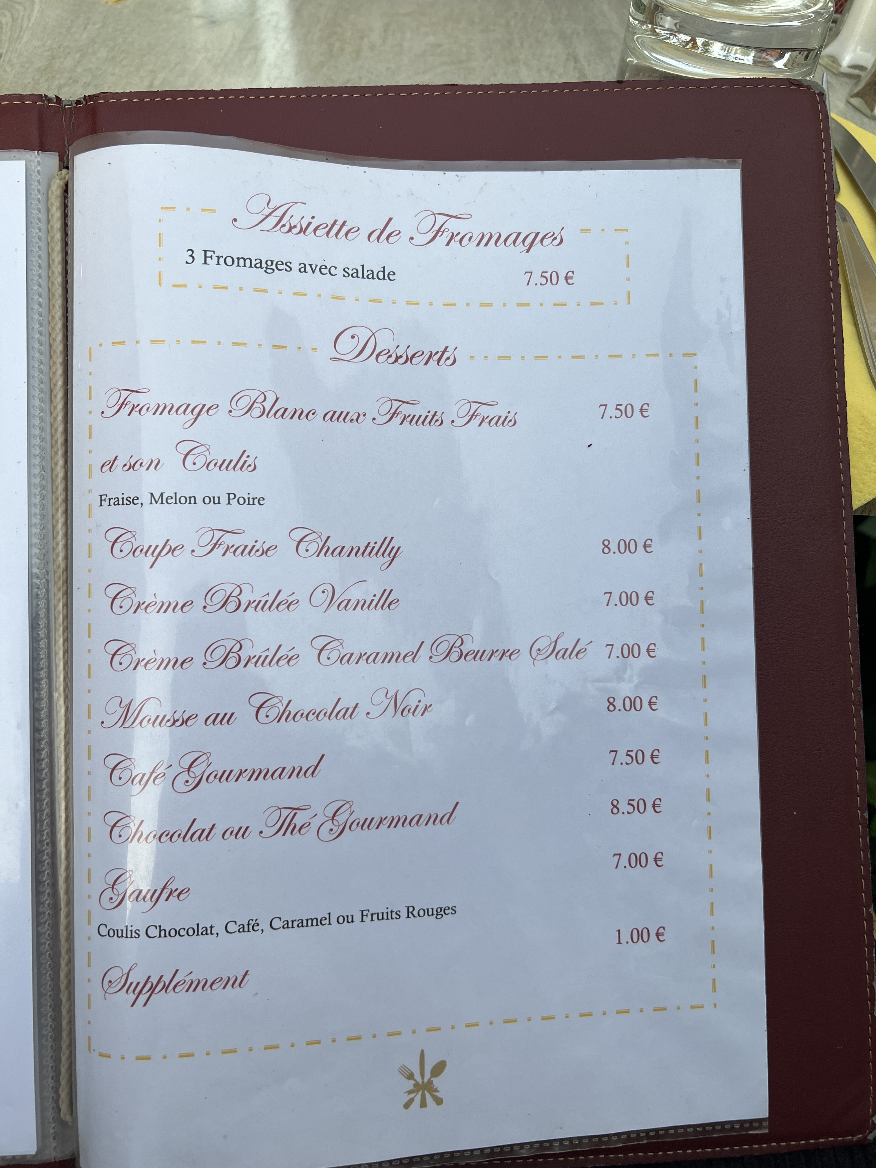 Poulet pas mauvais mais frites molles, sauce salade et caramel industriels. Carte des plats (pas nette) jamais renouvelée, comme dans une (mauvaise) brasserie de gare. Rapport qualité prix médiocre. OK pour une boule de glace en terrasse.