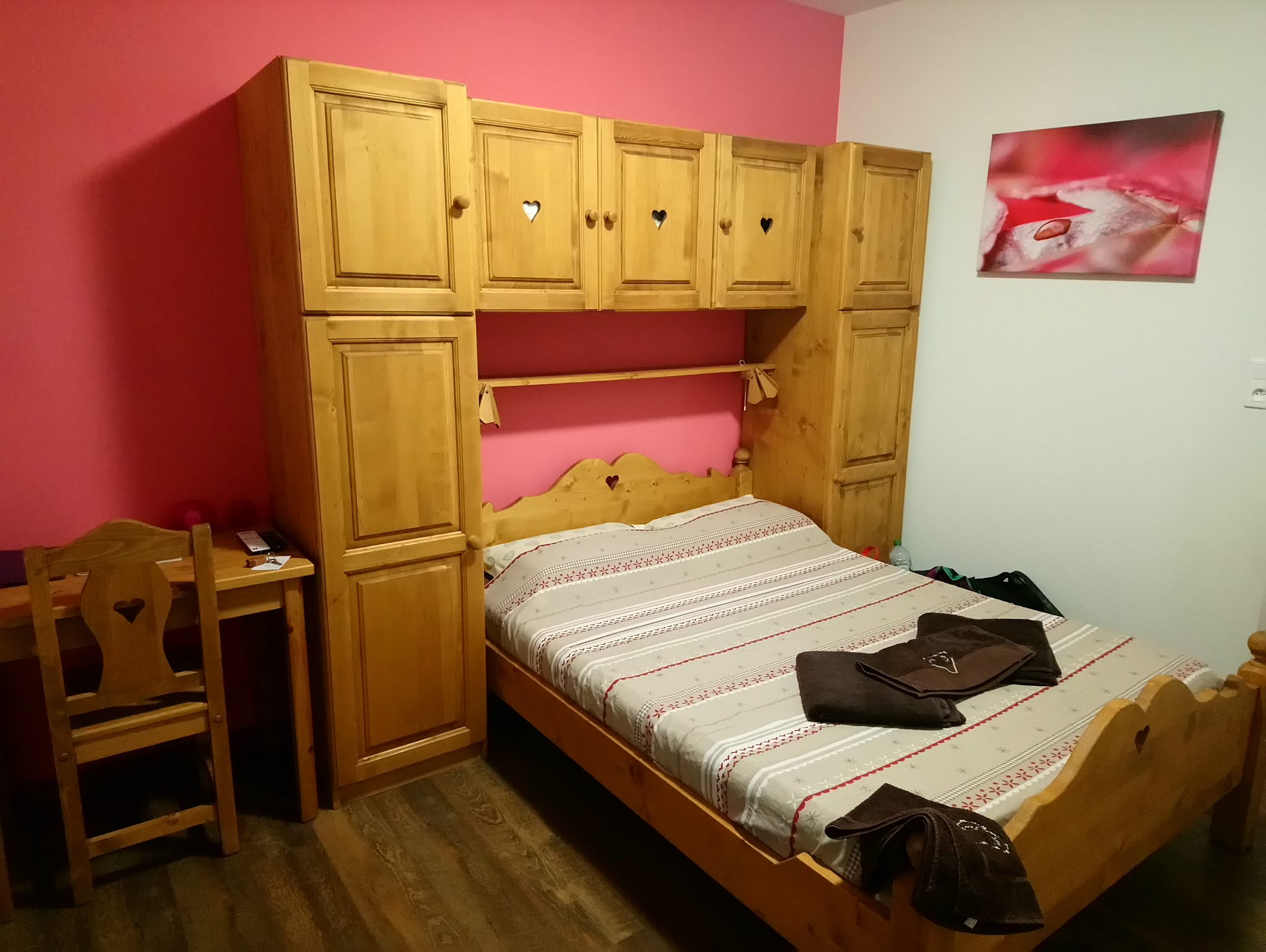 L'accueil a été très sympathique, les propriétaires m'ont même aidé à parler ma langue, étant donné que mon français n'est pas très bon. La chambre que nous avions avait été récemment rénovée, très propre et assez grande pour deux personnes. Le mobilier simple et très fonctionnel semble même avoir été fabriqué à la main par un artisan local, l'ambiance était très agréable, la vue était évidemment imprenable. Nous avons également dîné au restaurant de l'hôtel avec un plat unique réalisé avec une recette typique. Le dîner était très agréable, la salle meublée de manière typiquement alpine. Je recommande vivement cet hôtel si vous souhaitez savourer l'ambiance alpine. P.S. pendant la nuit nous avons aperçu un cerf près de la petite ville, une rencontre magique.