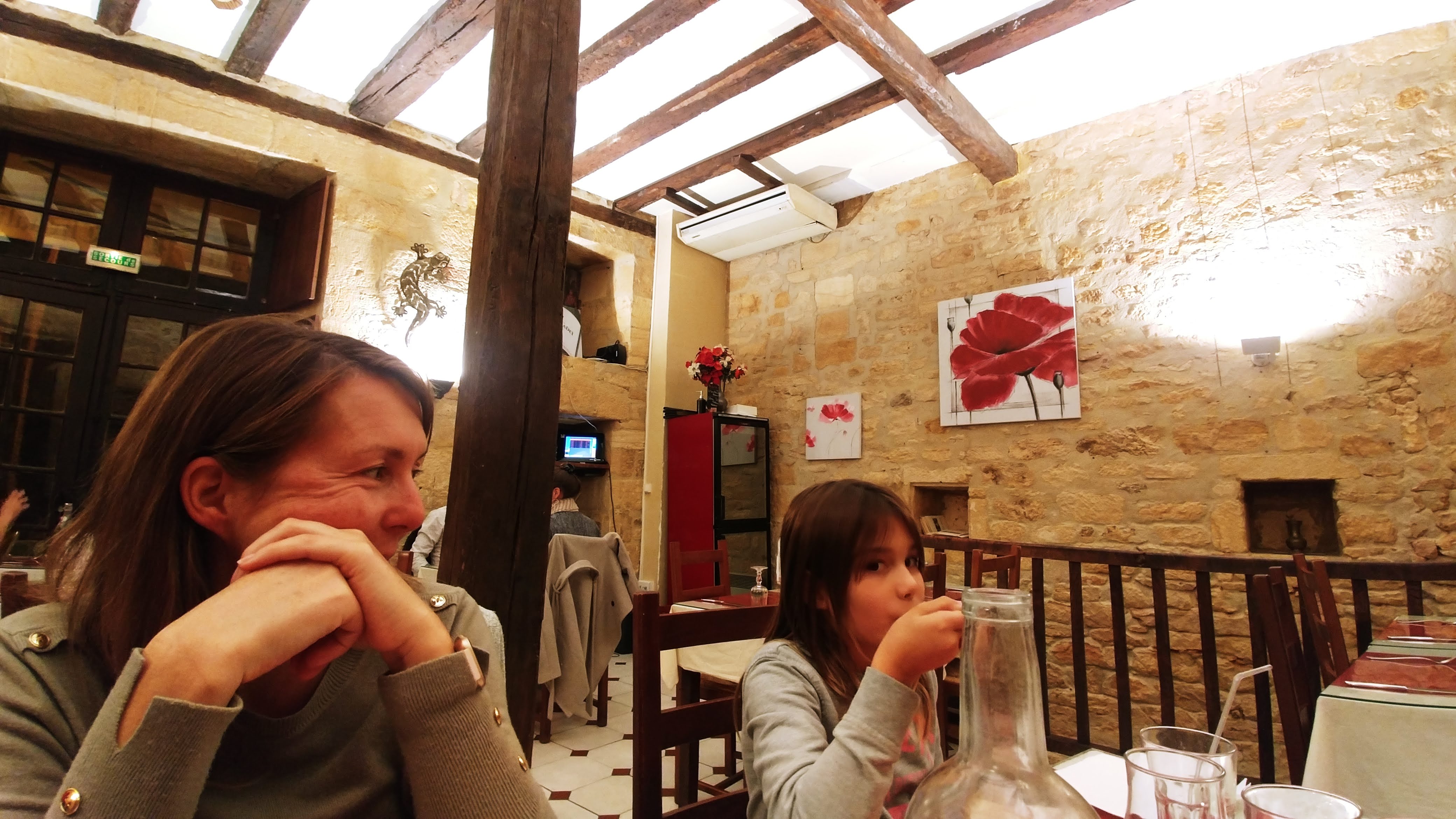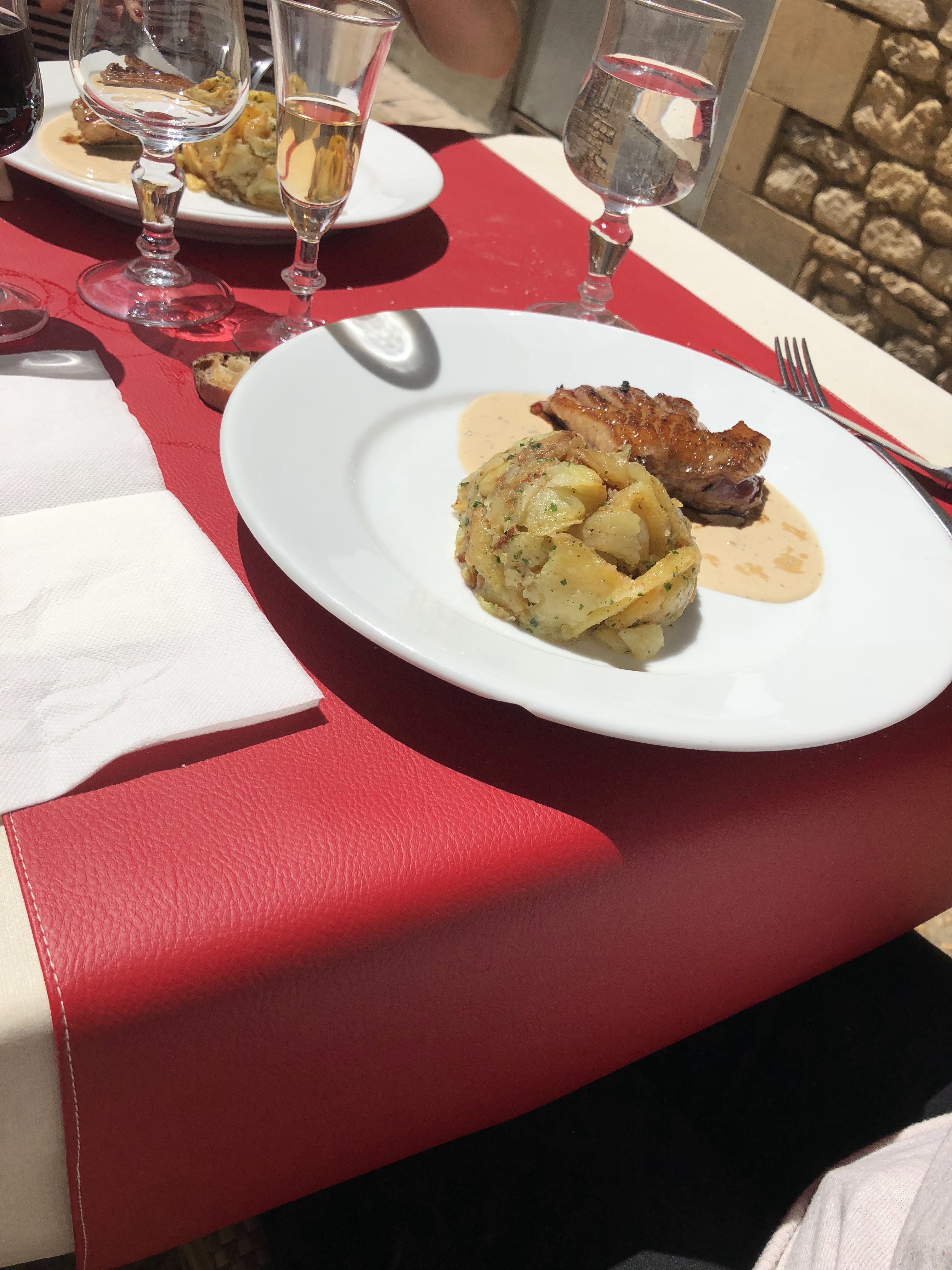 Bon accueil malgré la très forte affluence. Carte locale et touristique, ça se voit que c’est un restaurant touristique, c’est pourquoi j’ai commandé simple, omelette périgourdine, et je n’ai pas été surprise : rien d’extraordinaire mais bon, très bien cuit, servi chaud et copieux ! Parfait pour déjeuner bien et rapidement et reprendre ses visites, avec la sympathie en bonus !